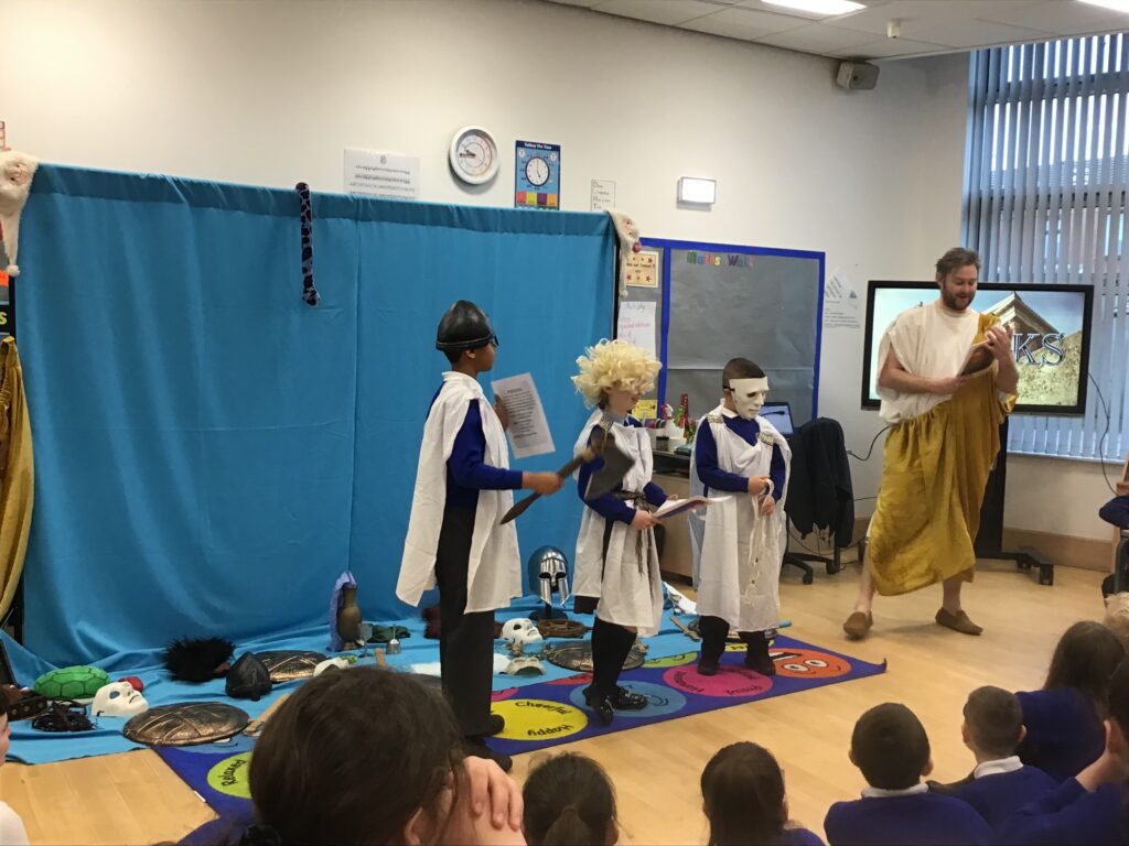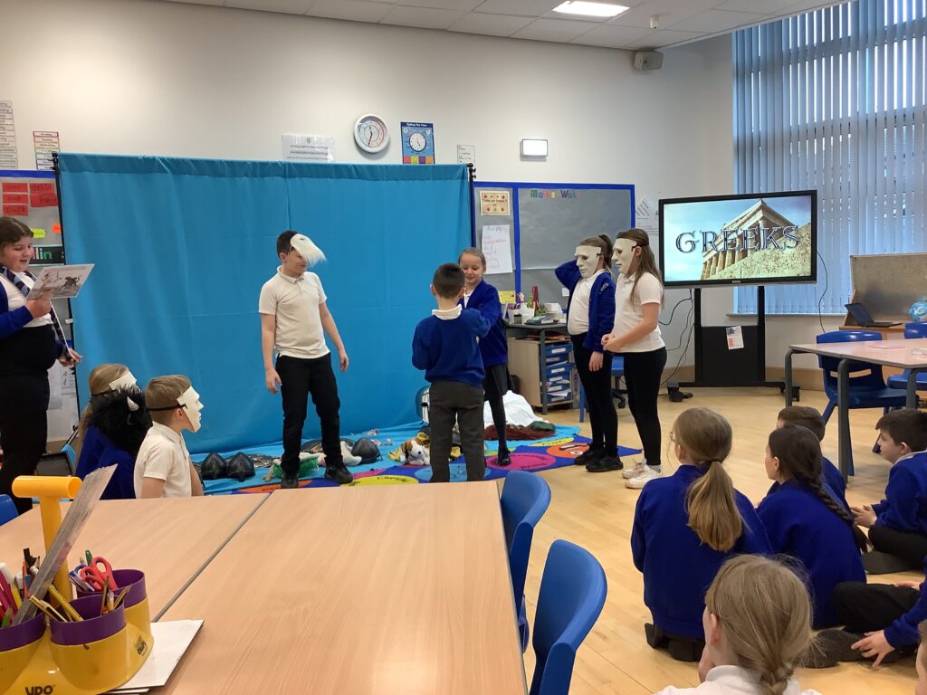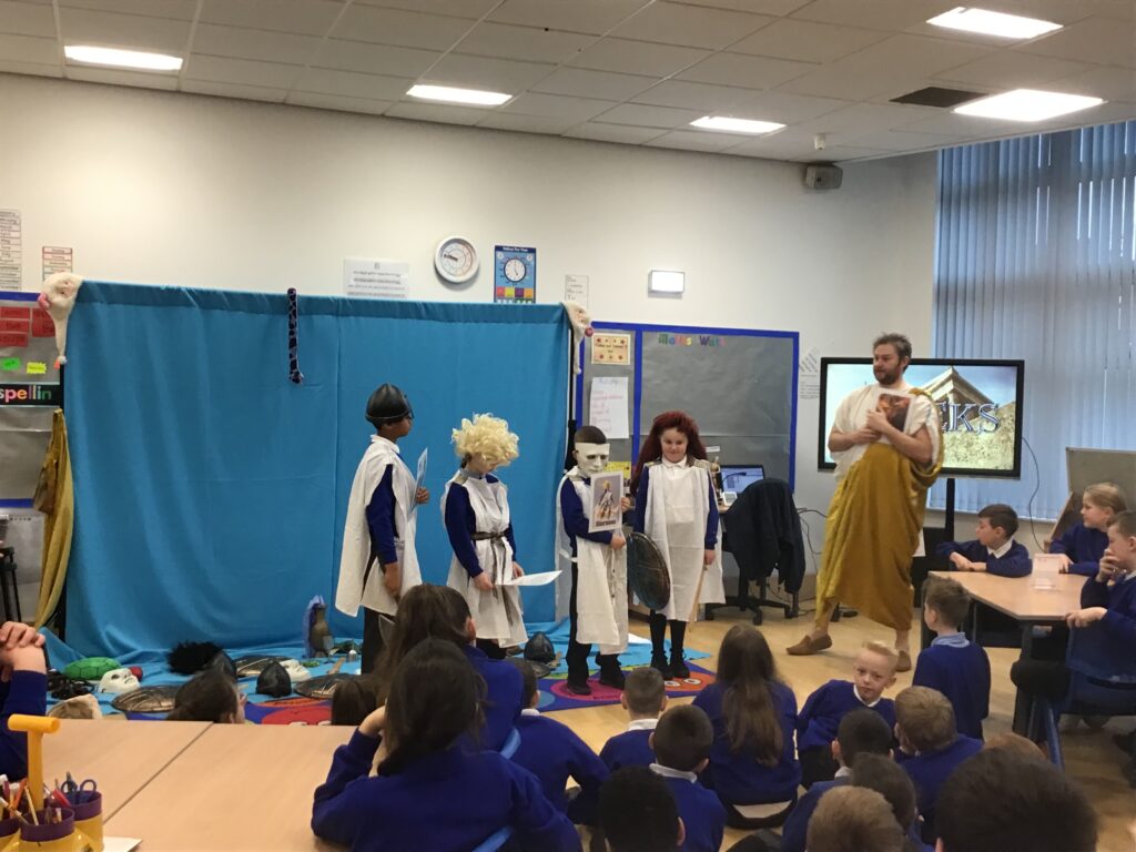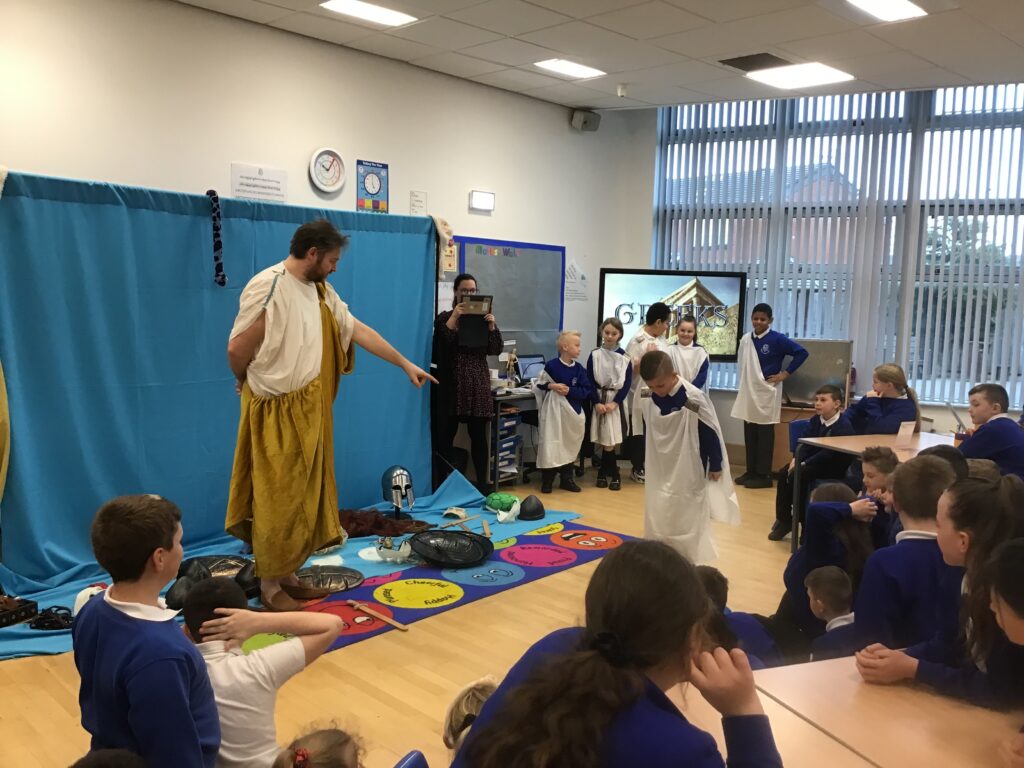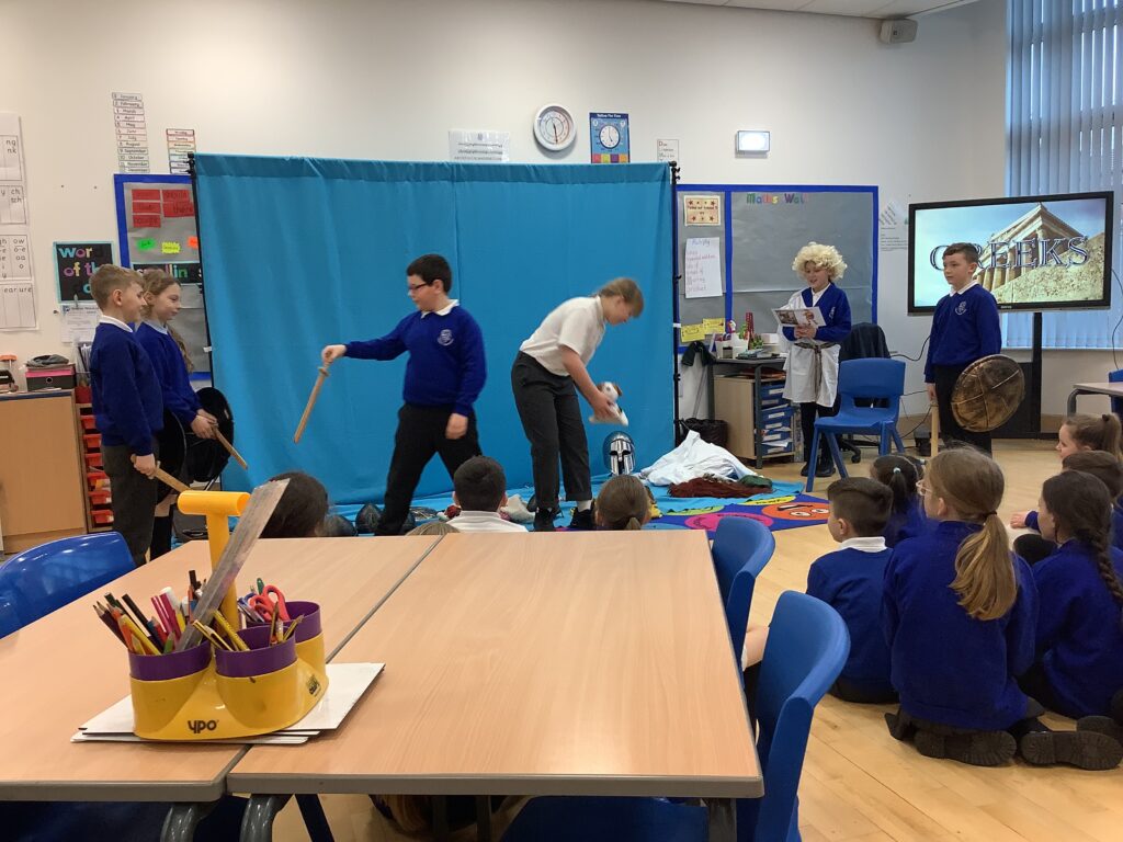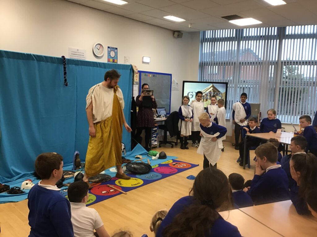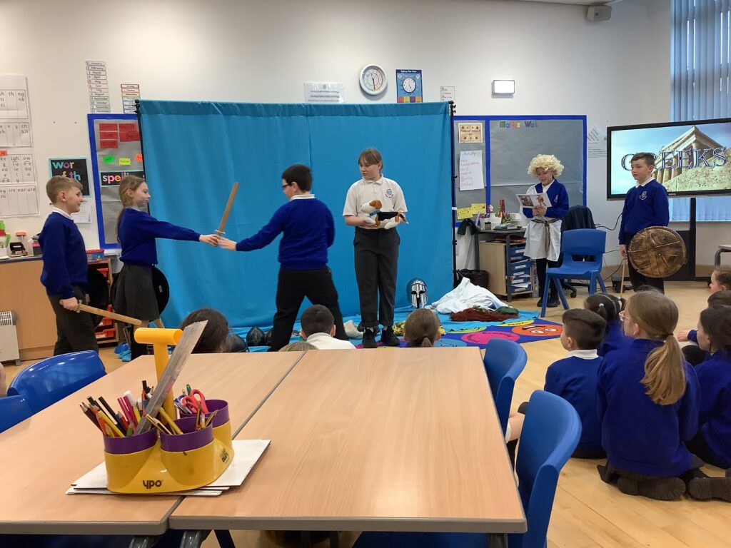 Year 5 thoroughly enjoyed our fun filled Greek day. We had a special visit from Zeus who taught us all about the ways of the ancient Greek people. We learned about Greek Gods, democracy, the Athenian Games (now known as the Olympics), ancient Greek myths and legends and much more!
