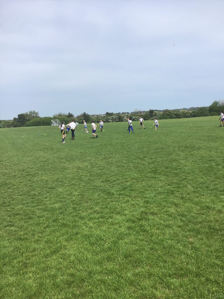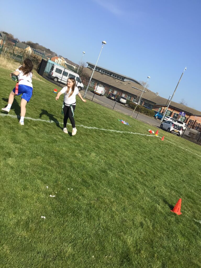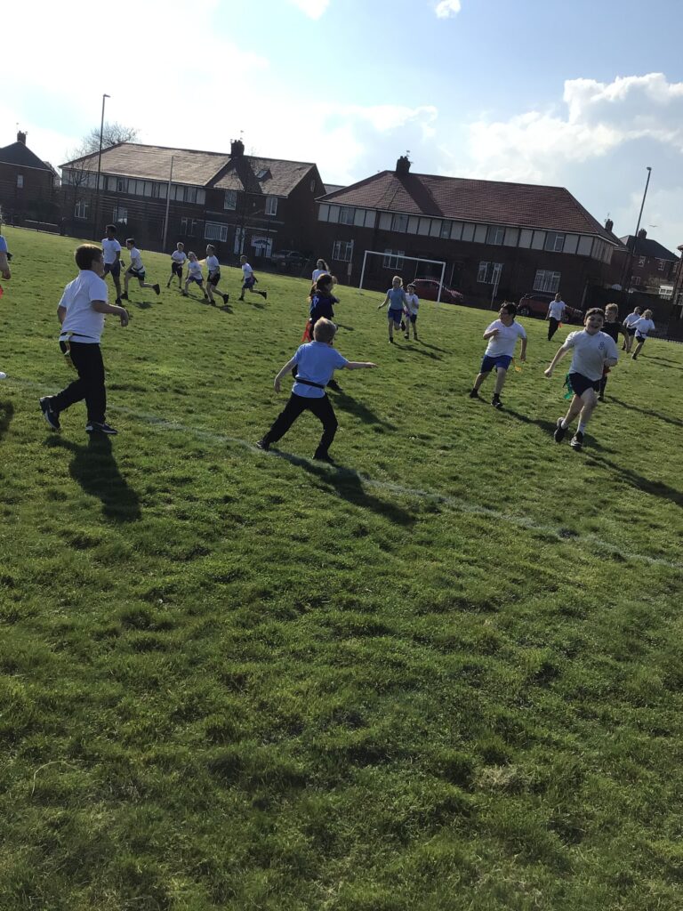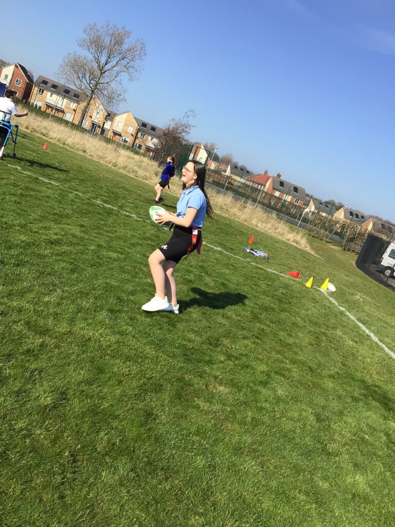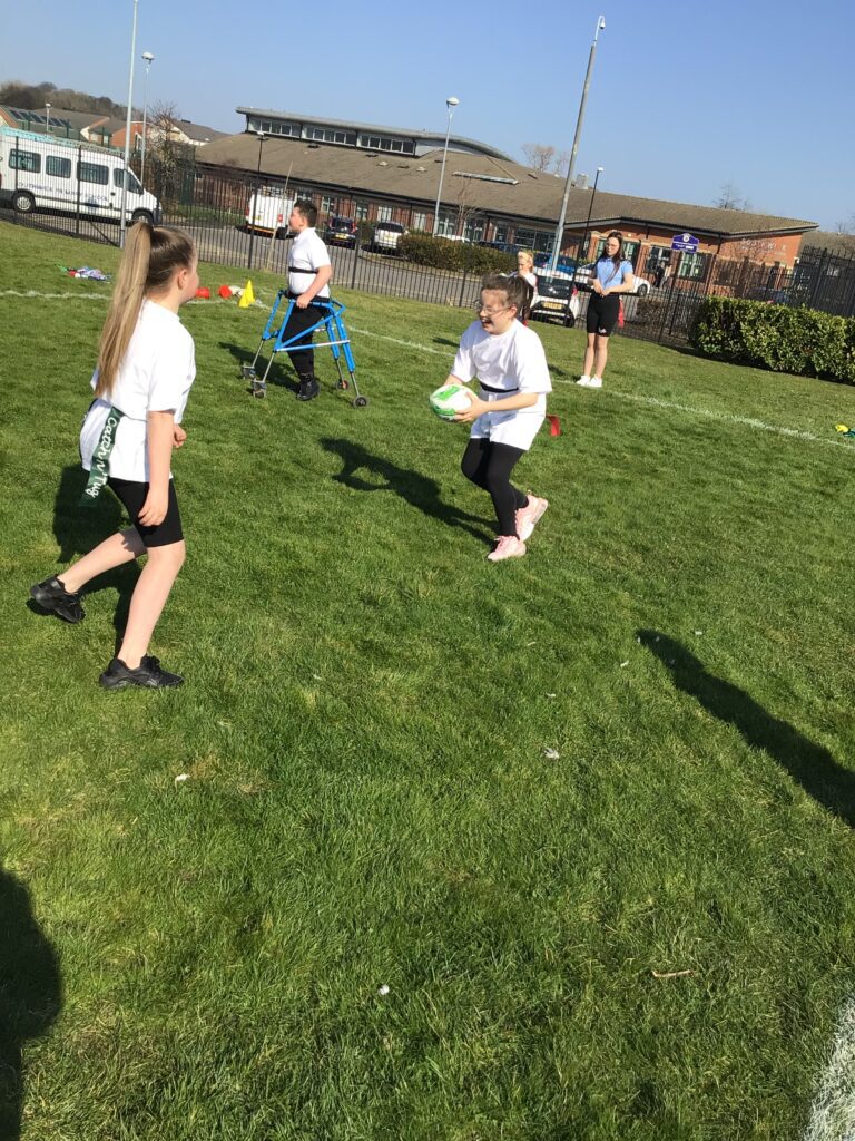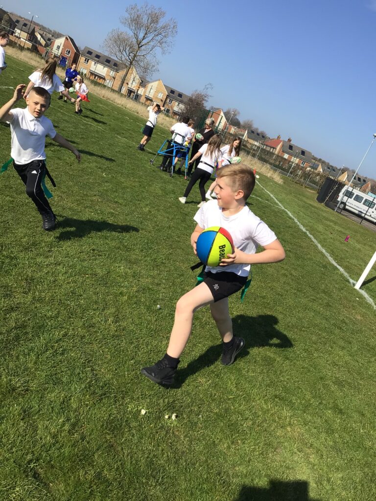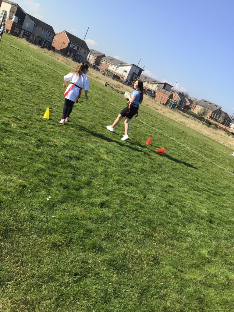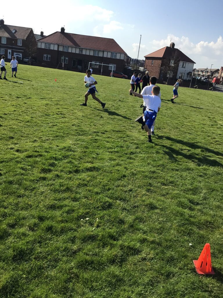 Year 5 have been enjoying working with Mrs Hughes to develop our skills in tag rugby. We were over the moon that the weather has started to brighten up so we could go outside on the field!