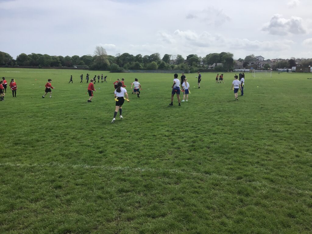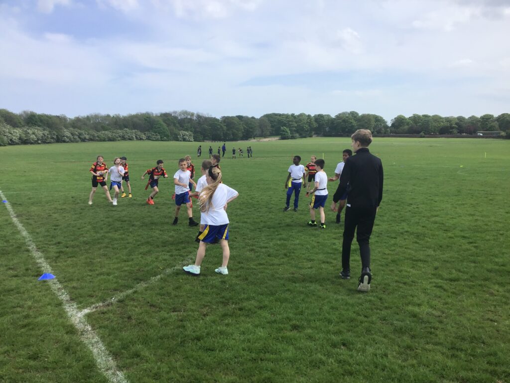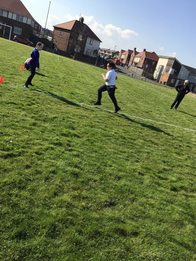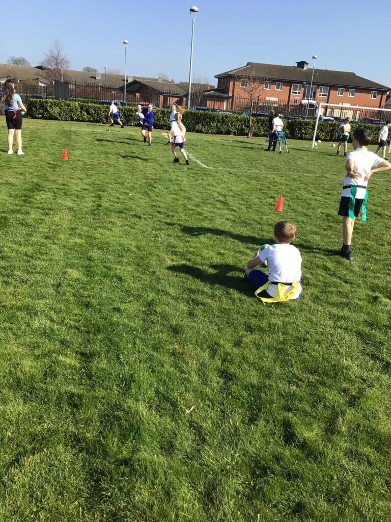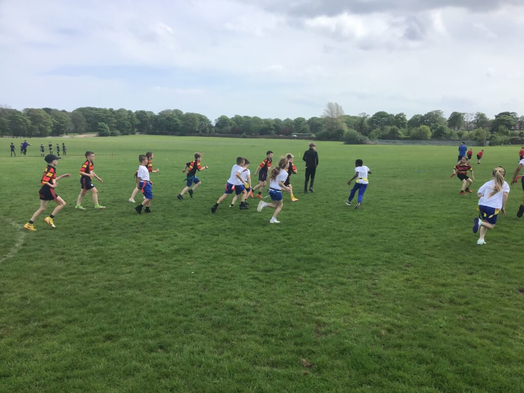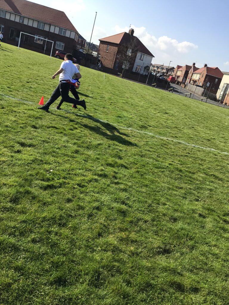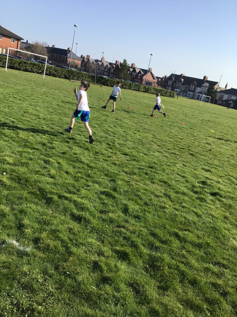 Year 5 have been enjoying working with Mrs Hughes to develop our skills in tag rugby. We were over the moon that the weather has started to brighten up so we could go outside on the field!
