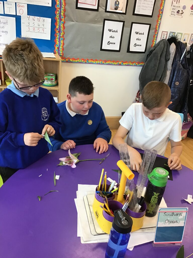 In Science, we began our new topic of Living things and habitats by dissecting a variety of flowering plants. We then labelled and described the functions of the parts of flowering plants, focusing on how they reproduce.