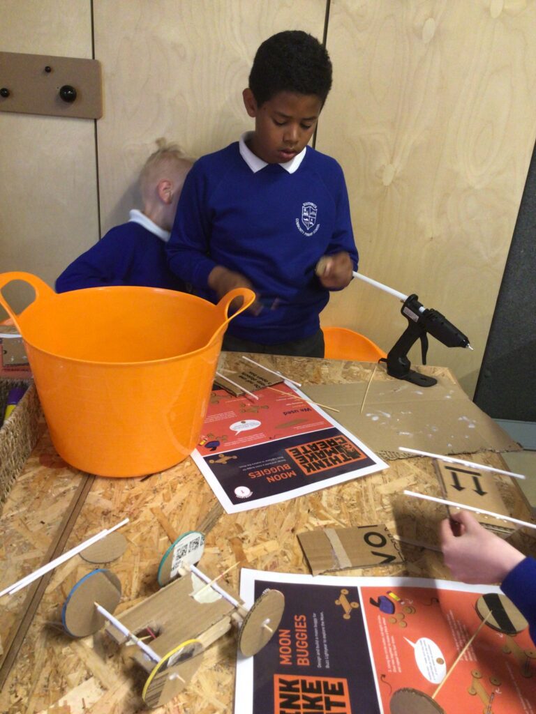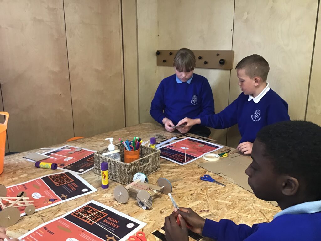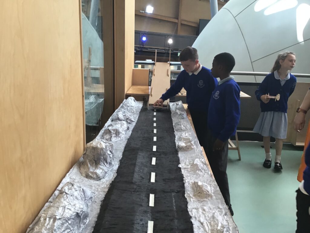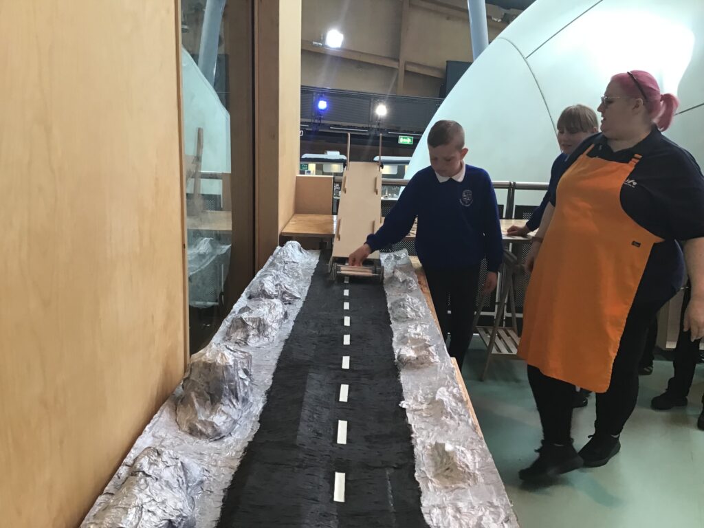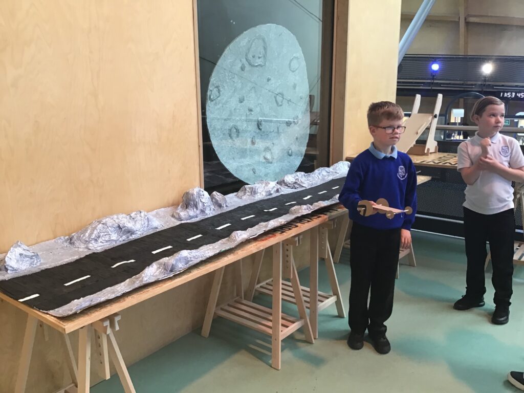 We also built our own moon buggies using a range of materials before taking them for a test drive on a recreation of the moon’s bumpy surface.