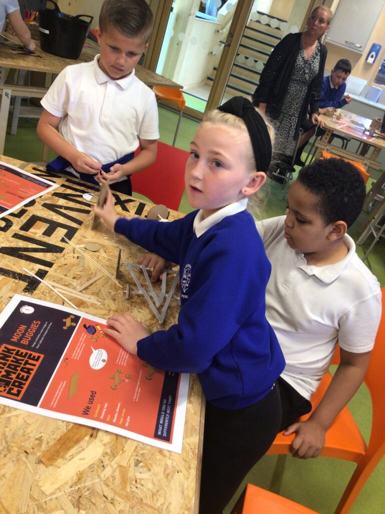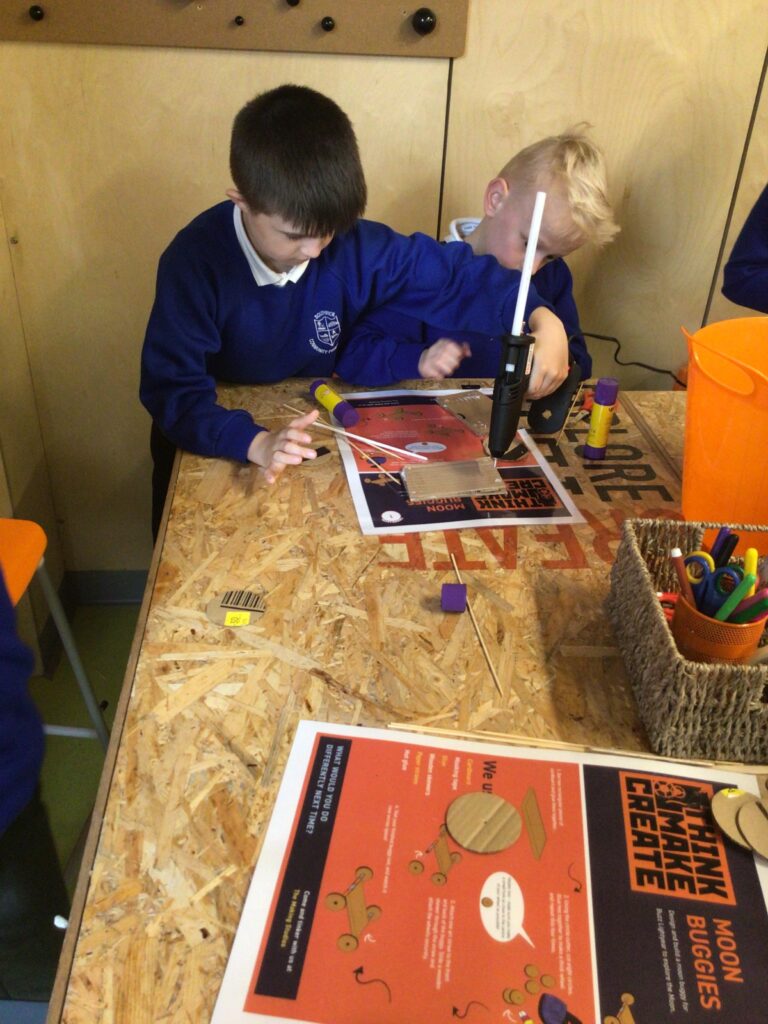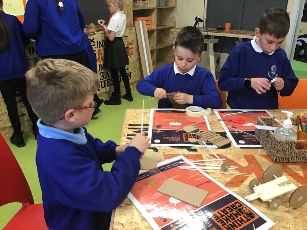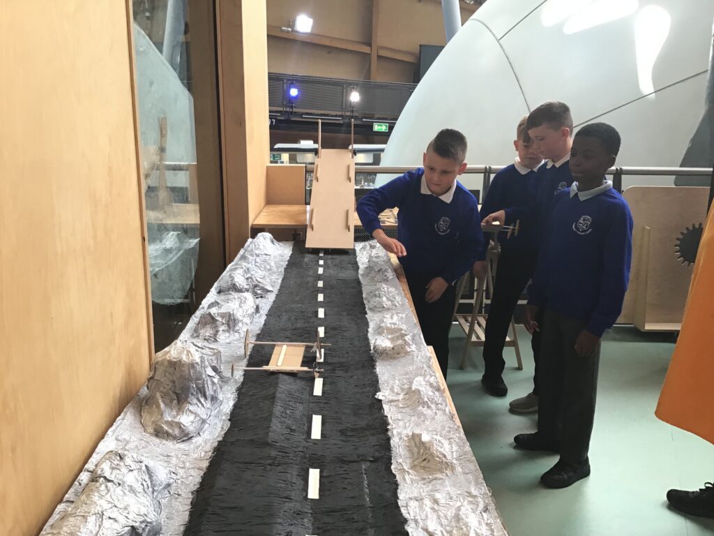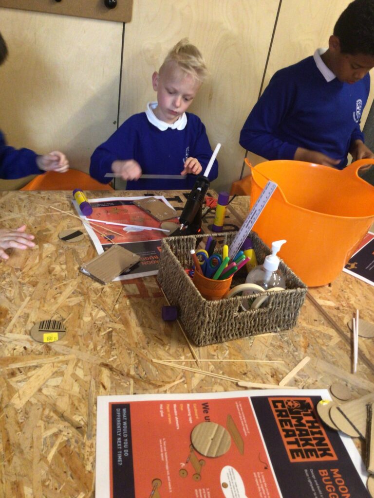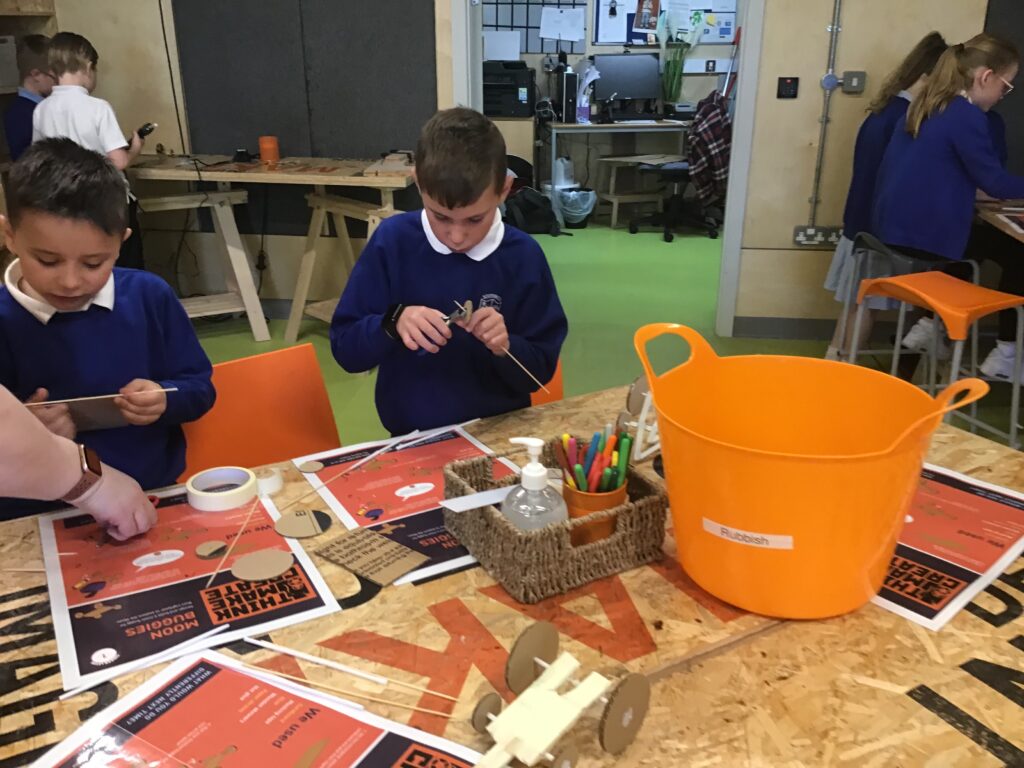 We also built our own moon buggies using a range of materials before taking them for a test drive on a recreation of the moon’s bumpy surface.
