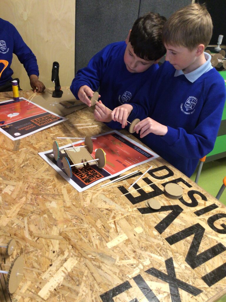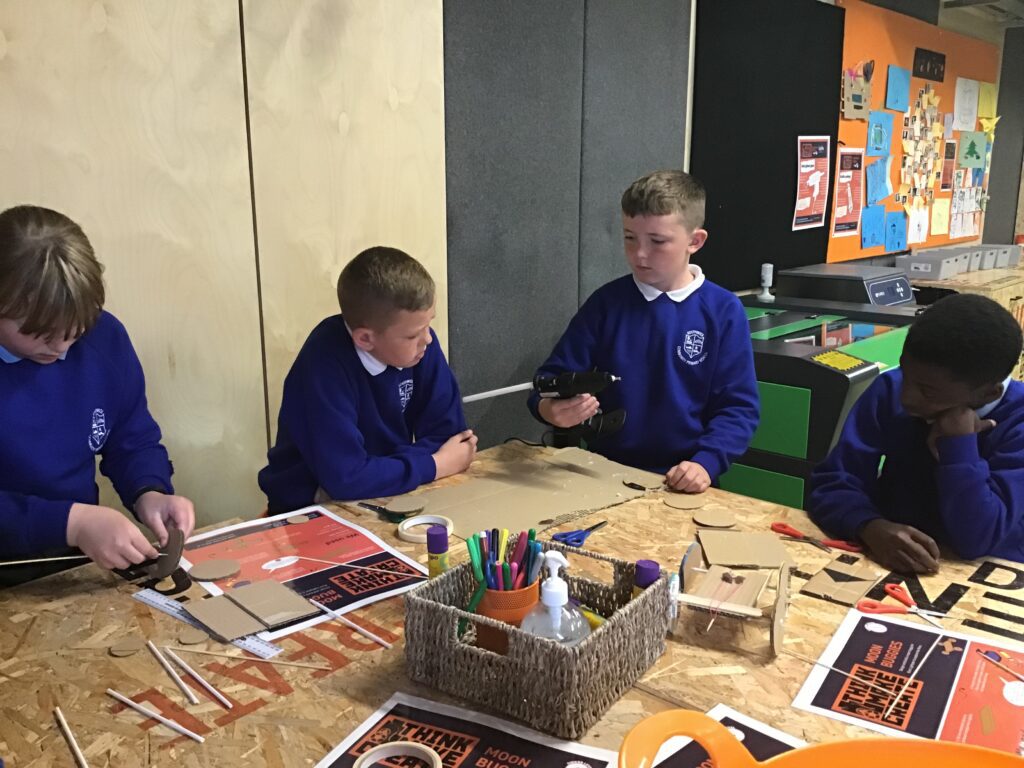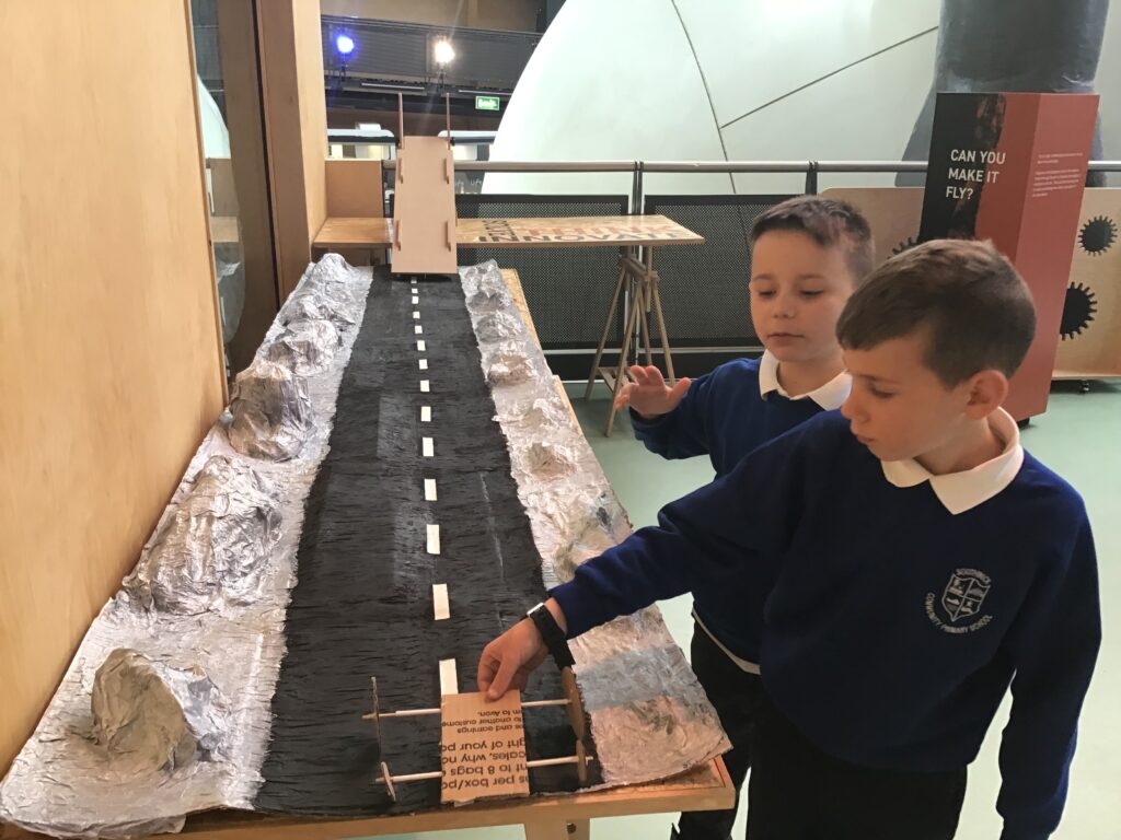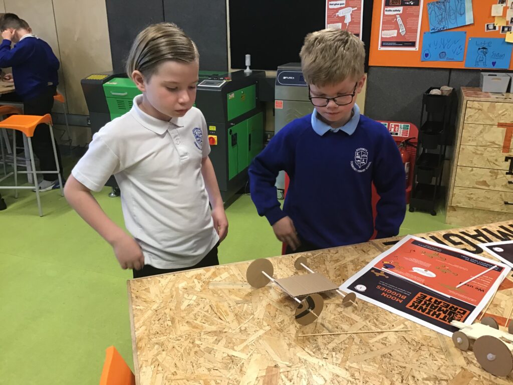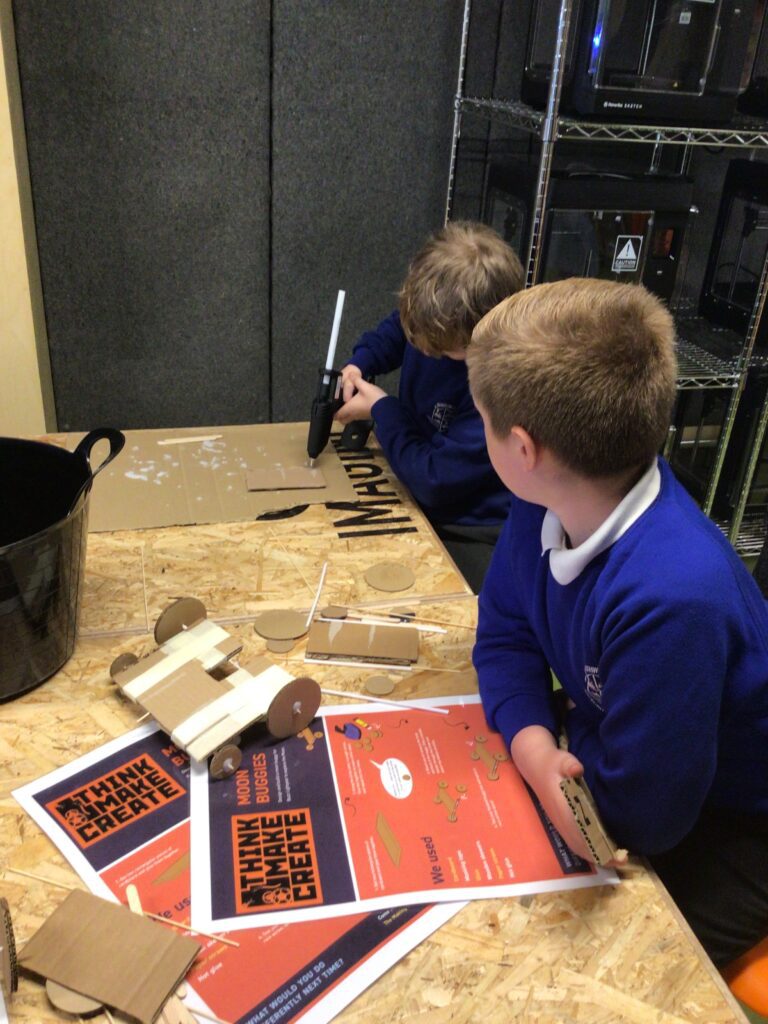 We also built our own moon buggies using a range of materials before taking them for a test drive on a recreation of the moon’s bumpy surface.