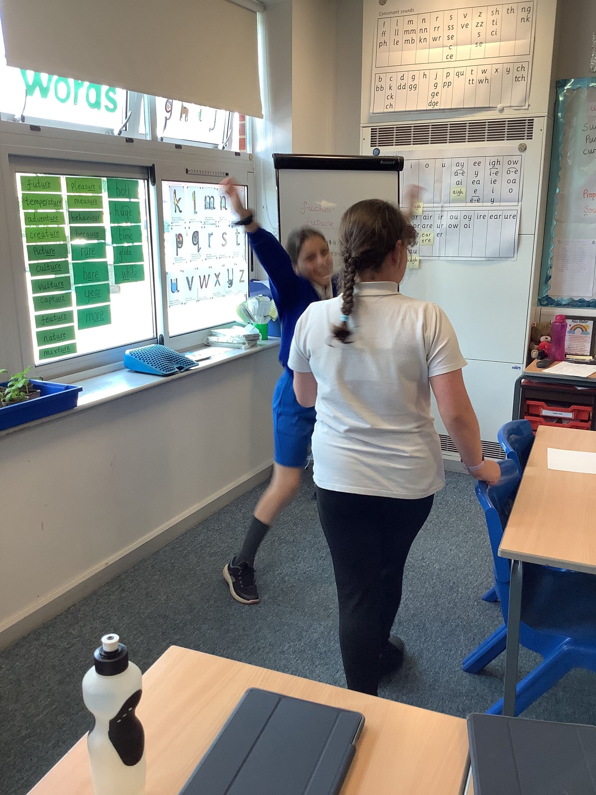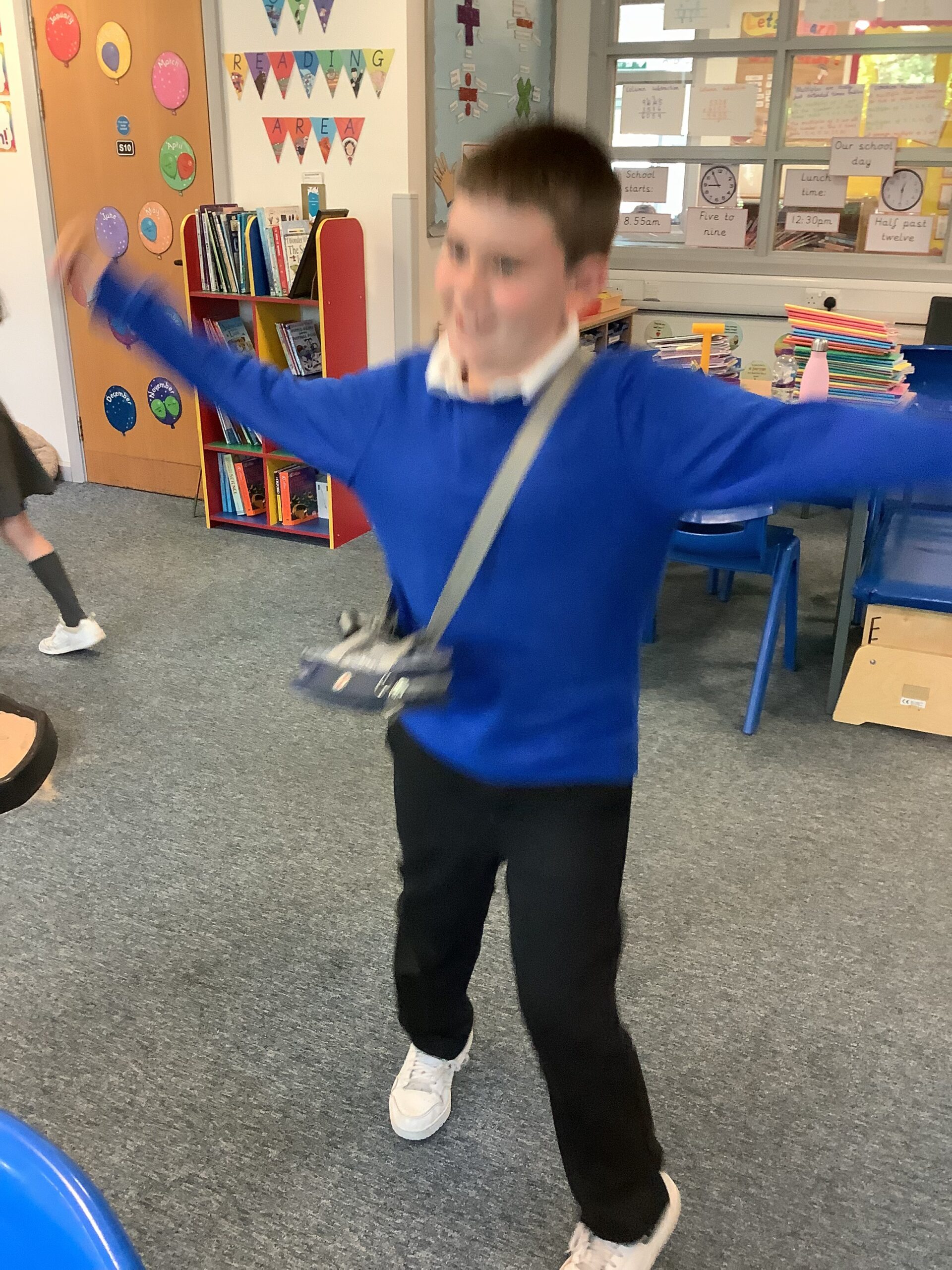 Take a look at us in action during our P.E lesson today. We had a go at lots of different exercises. You could tell how hard we worked when we realised we’d left sweat marks on the floor!