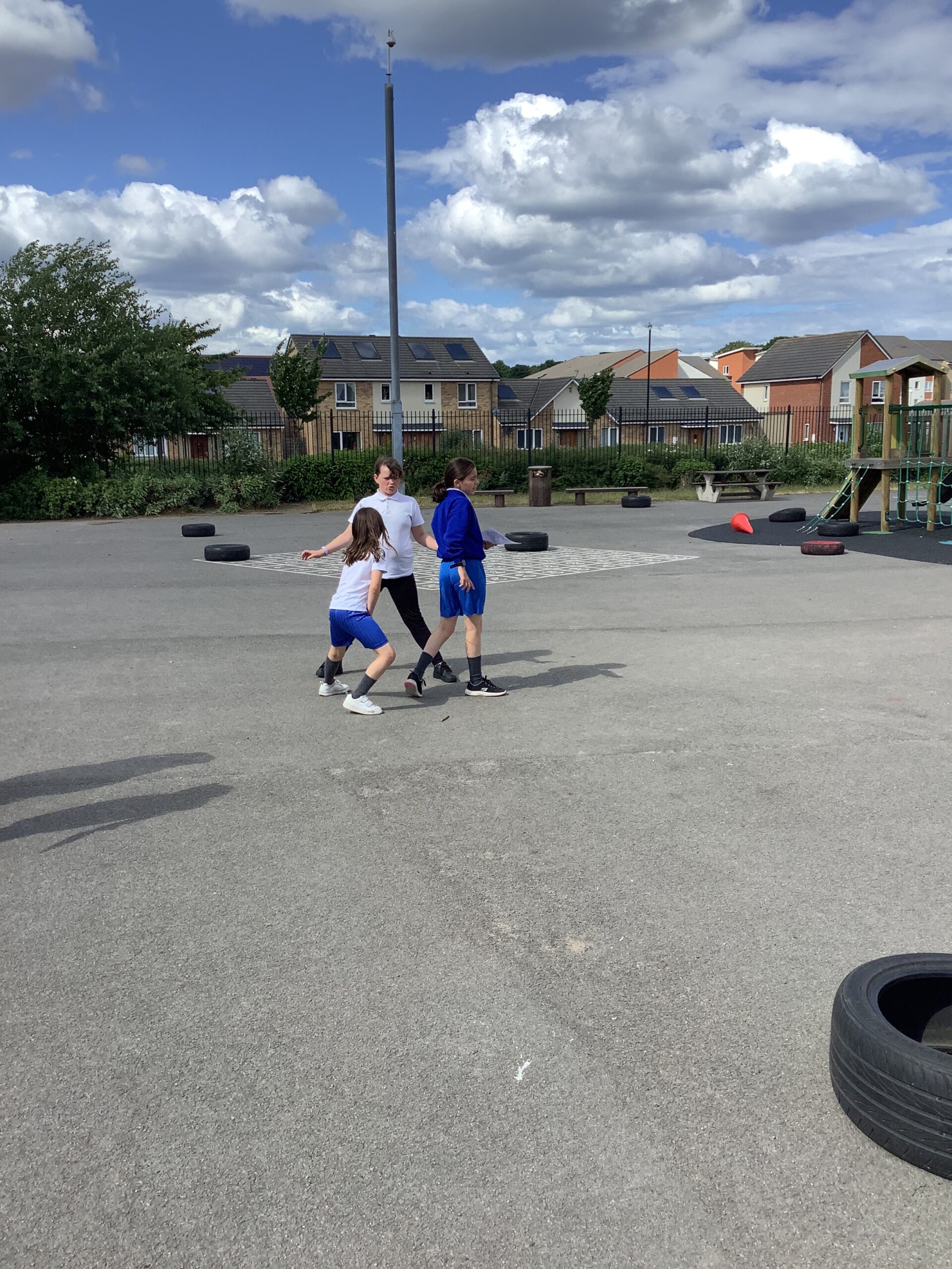 Year 5 have been enjoying working with Mrs Hughes to develop our skills in tag rugby. We were over the moon that the weather has started to brighten up so we could go outside on the field!