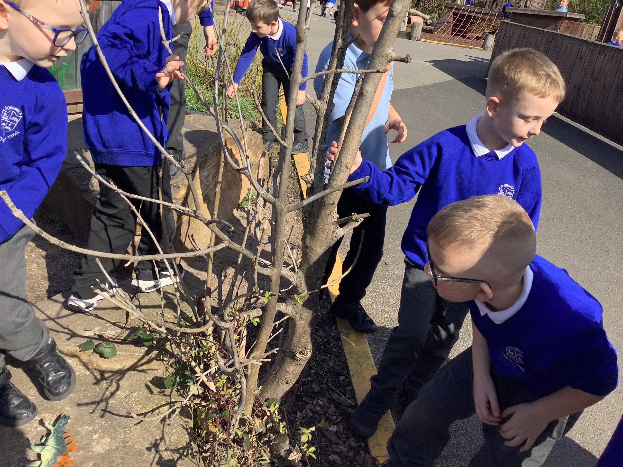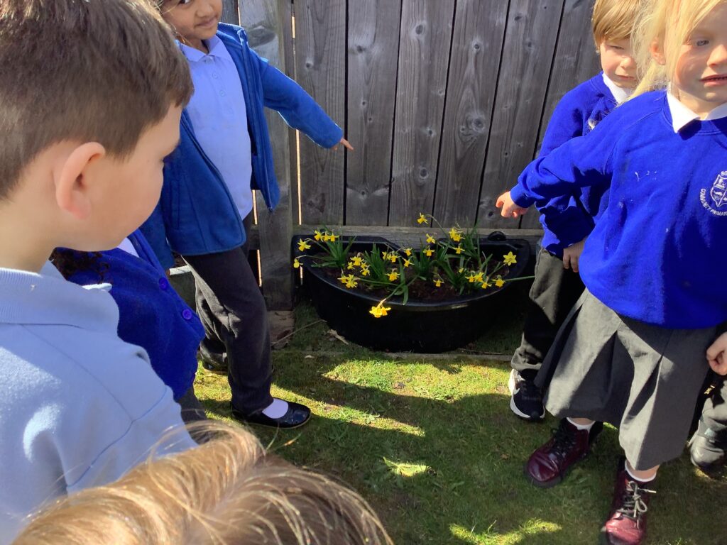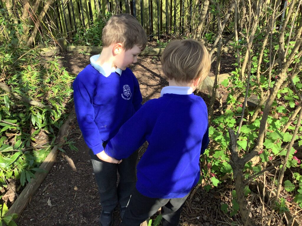Year 1 went on a spring walk to look for signs of spring. The children looked for flowers, buds on trees, and listened for birds.