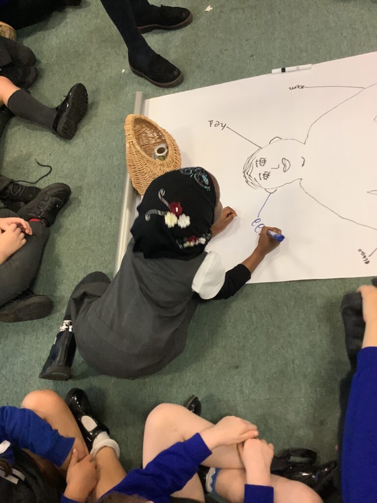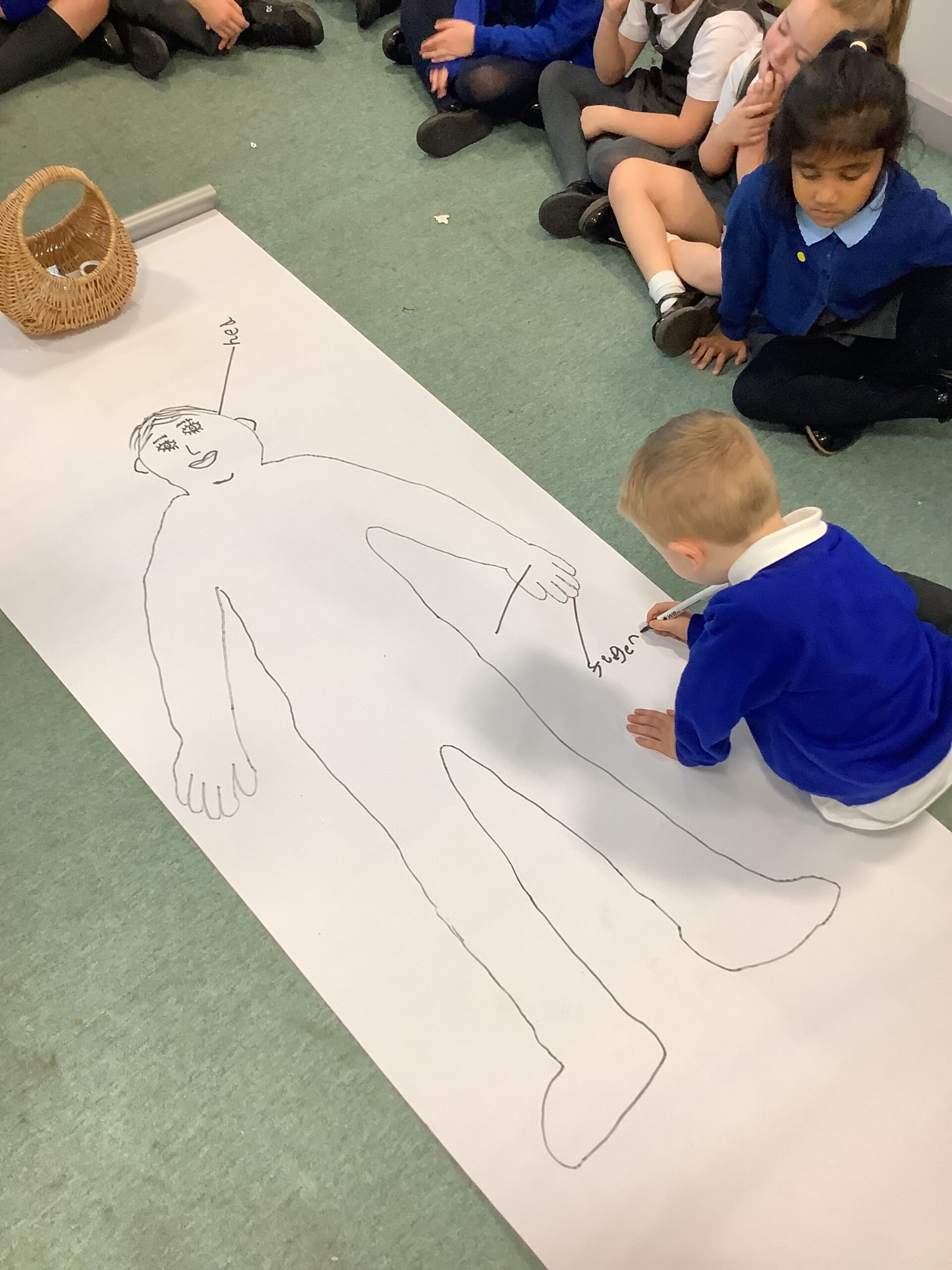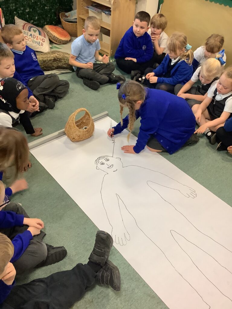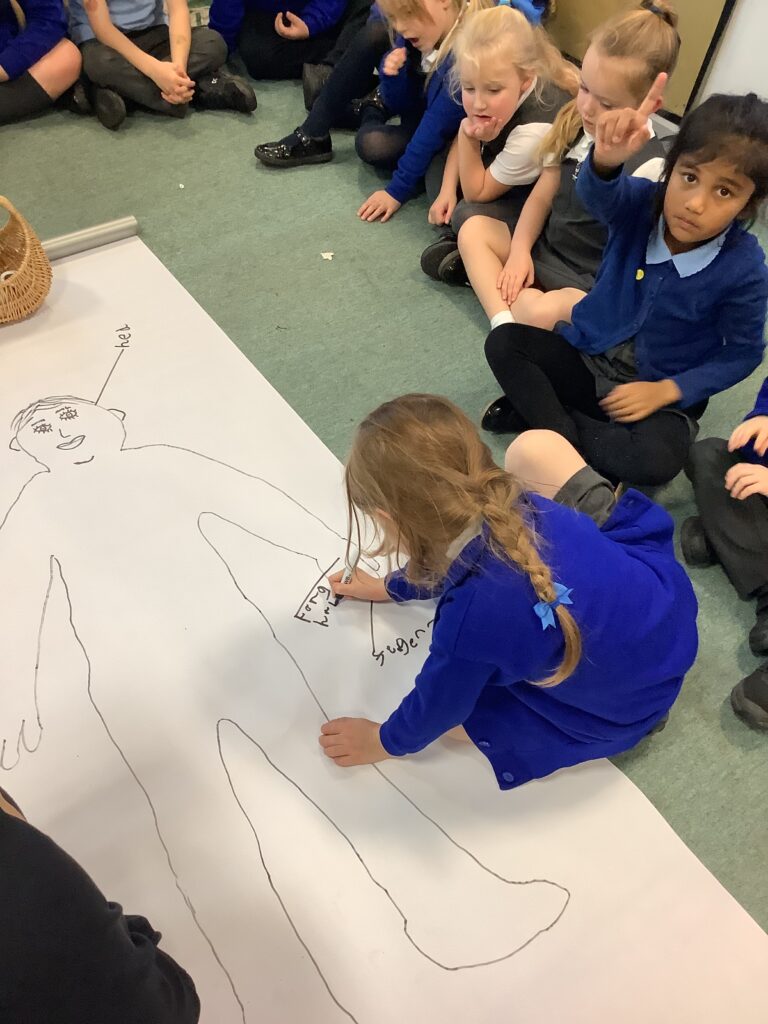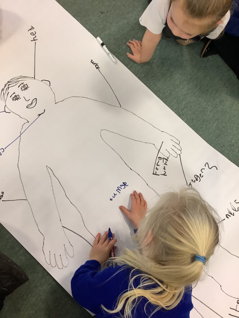 This week in Year 1, we have been learning all about the human body! The children had great fun exploring the different parts of the body and learning their names. We even drew around one of our classmates to create a life-sized outline, then worked together to label all the body parts we could name — from head to toes! The activity helped us understand how our amazing bodies fit and work together, and everyone enjoyed getting hands-on with their learning.