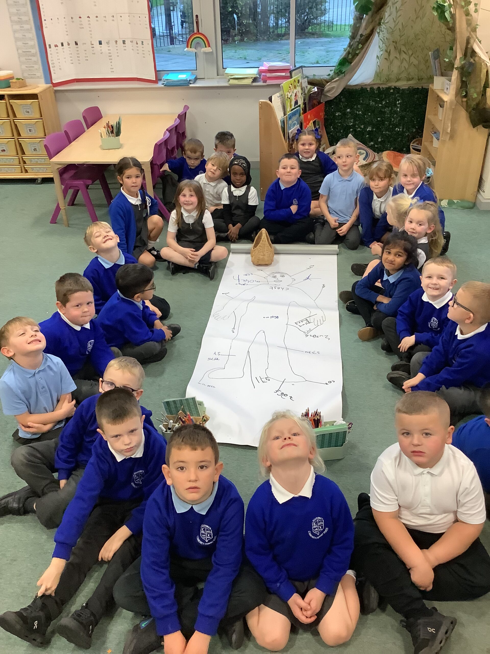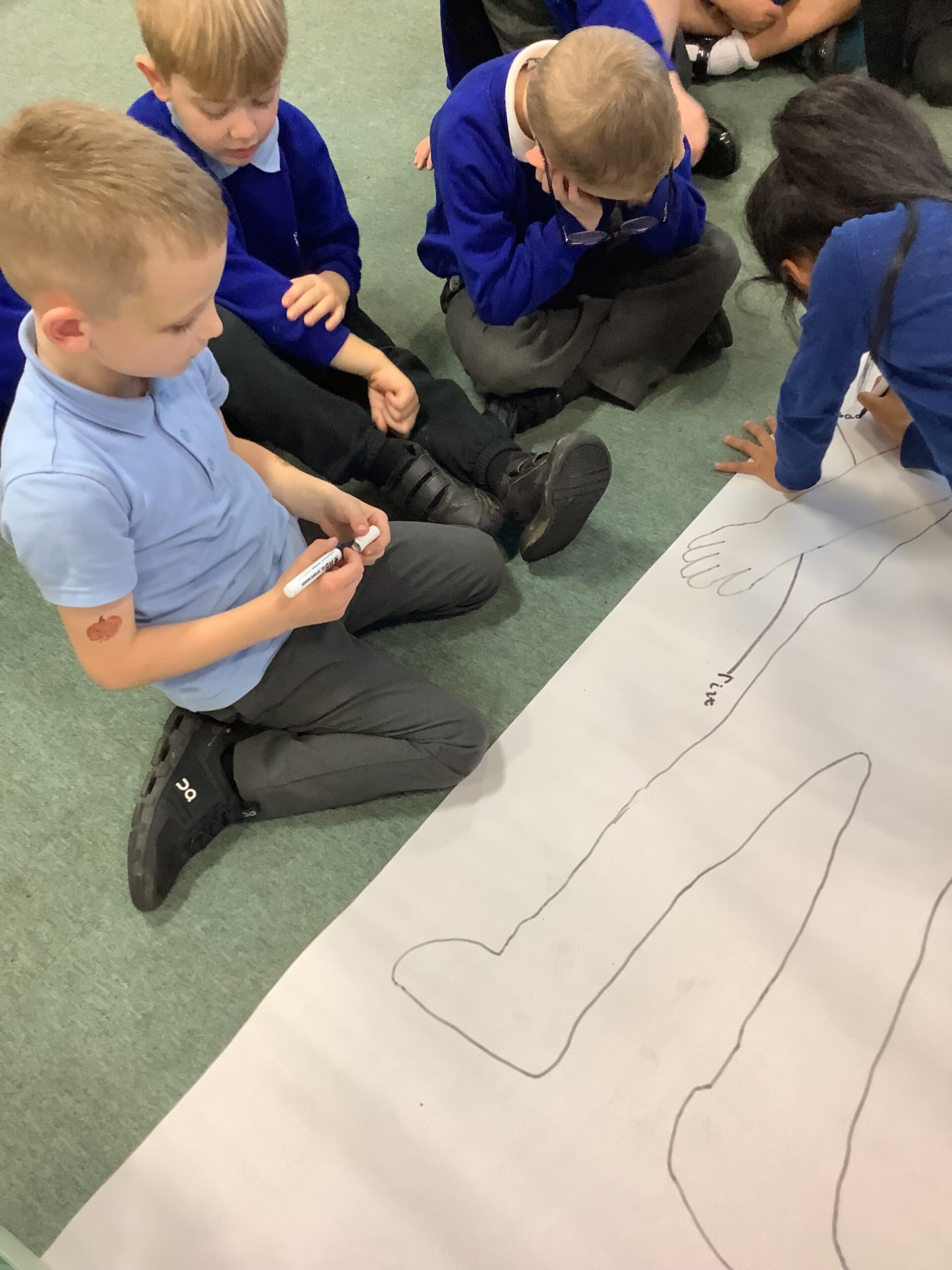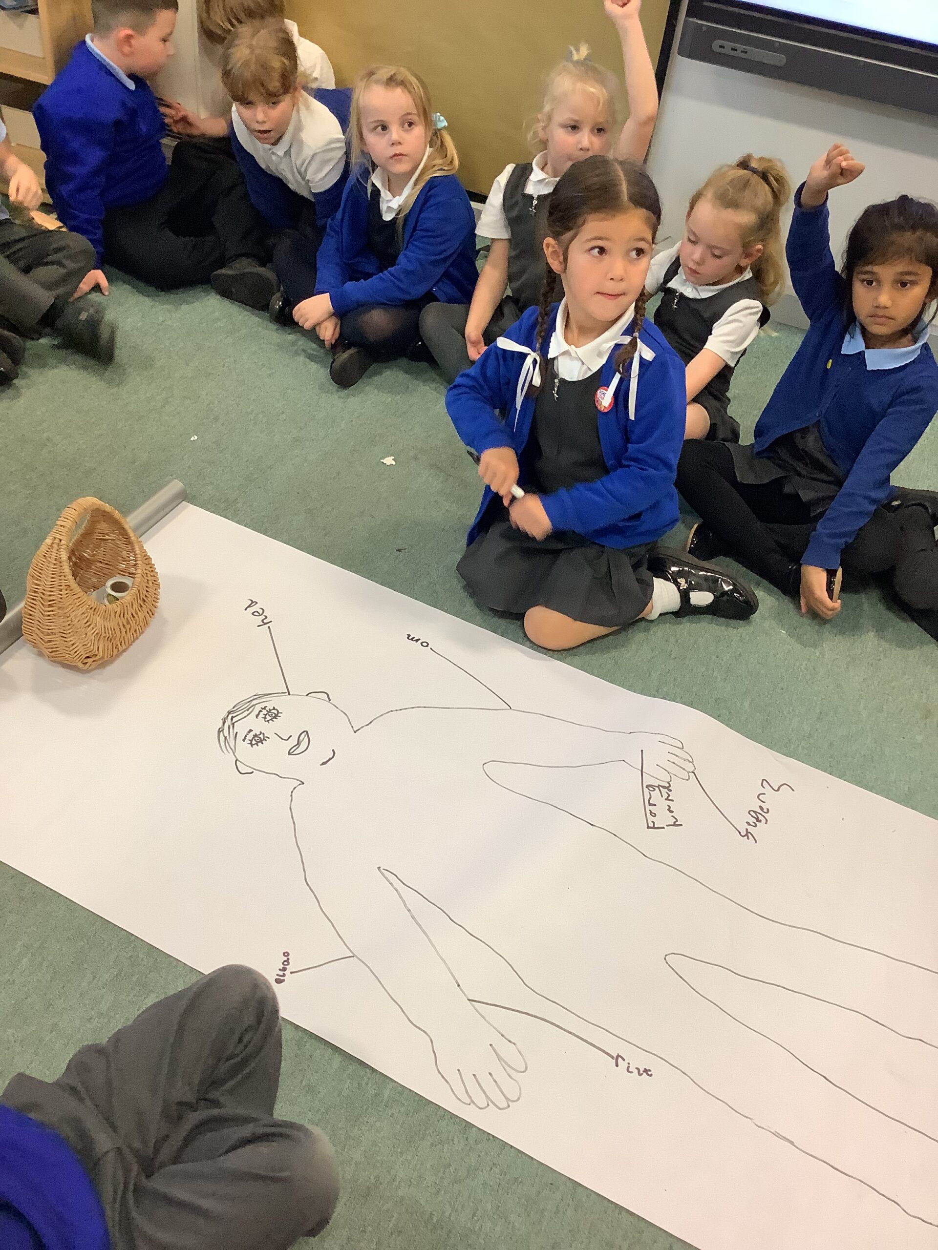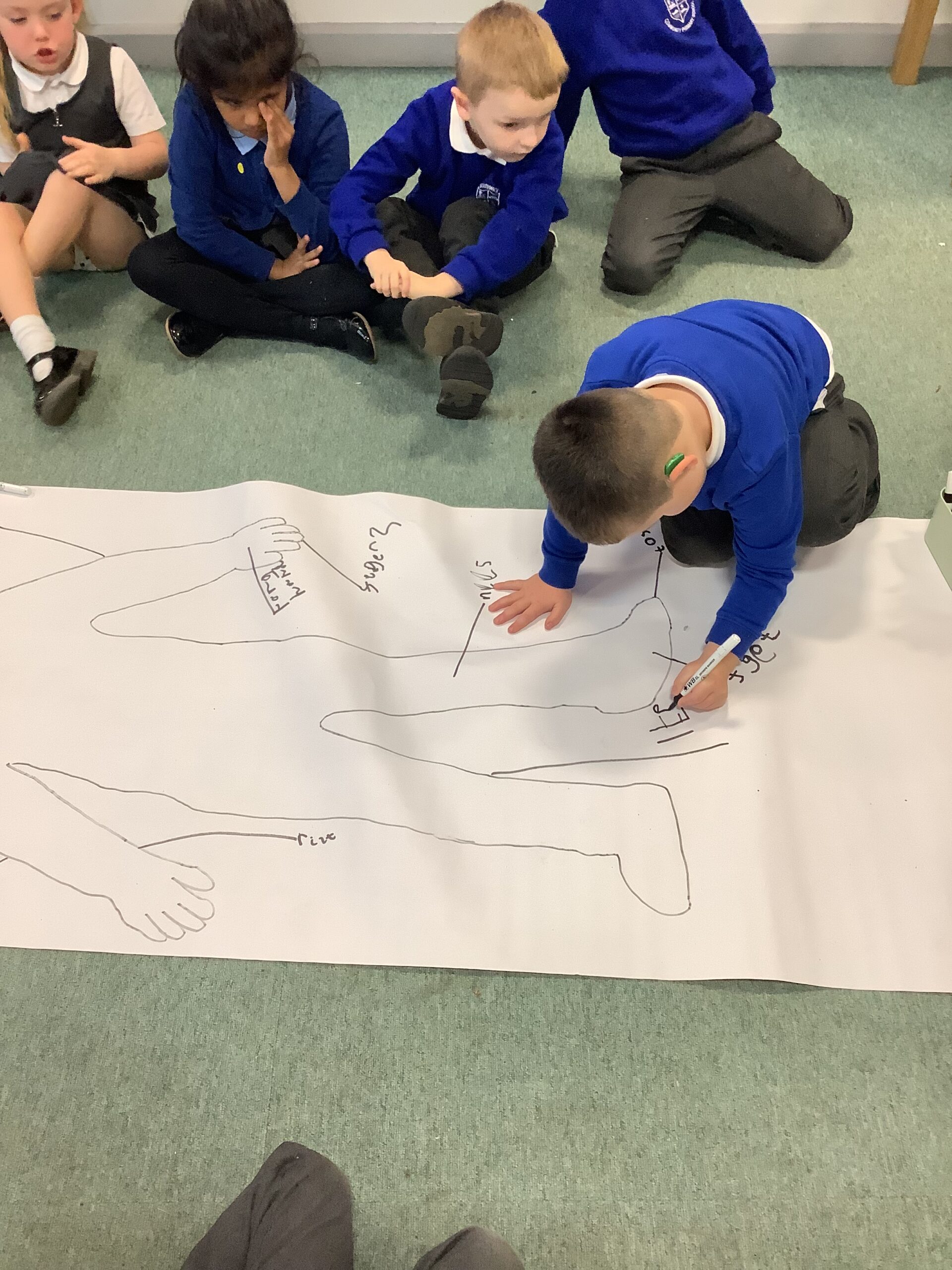 This week in Year 1, we have been learning all about the human body! The children had great fun exploring the different parts of the body and learning their names. We even drew around one of our classmates to create a life-sized outline, then worked together to label all the body parts we could name — from head to toes! The activity helped us understand how our amazing bodies fit and work together, and everyone enjoyed getting hands-on with their learning.