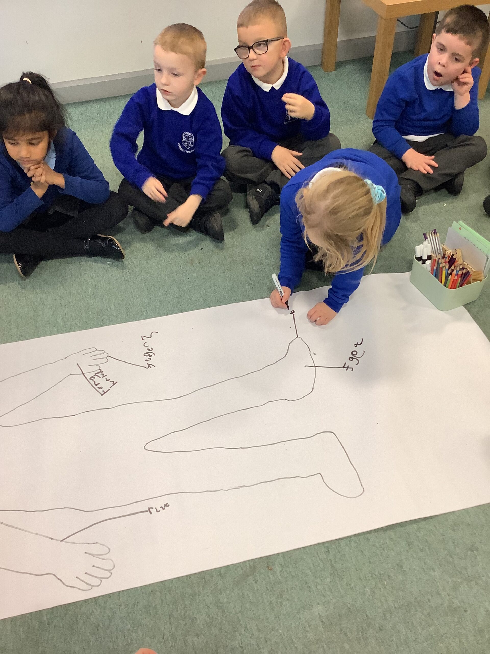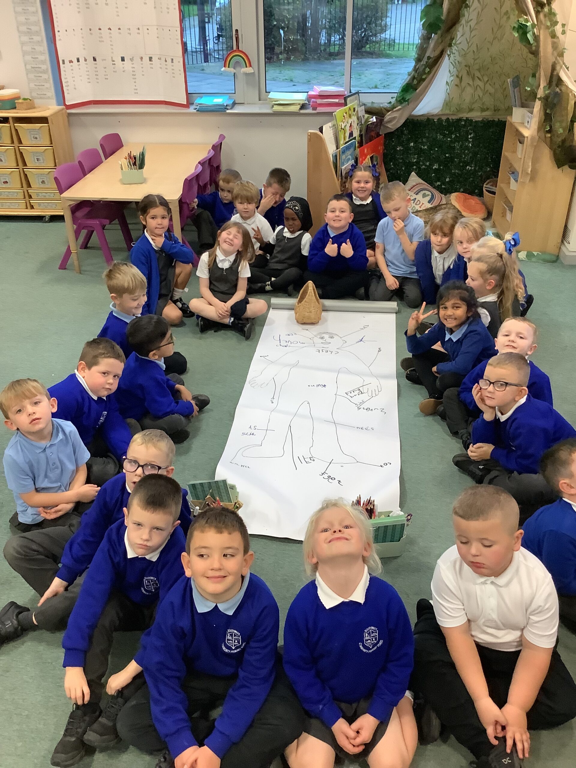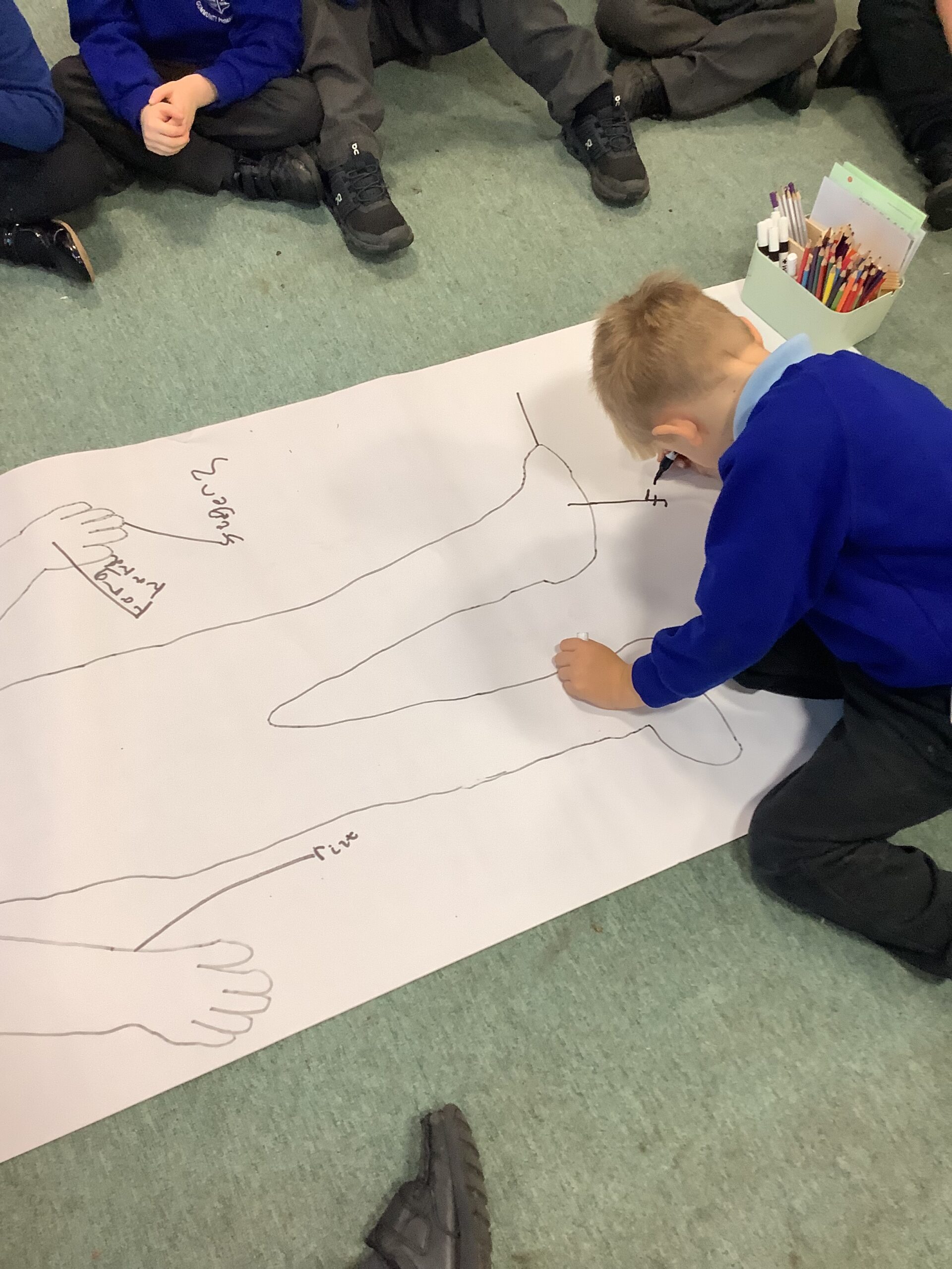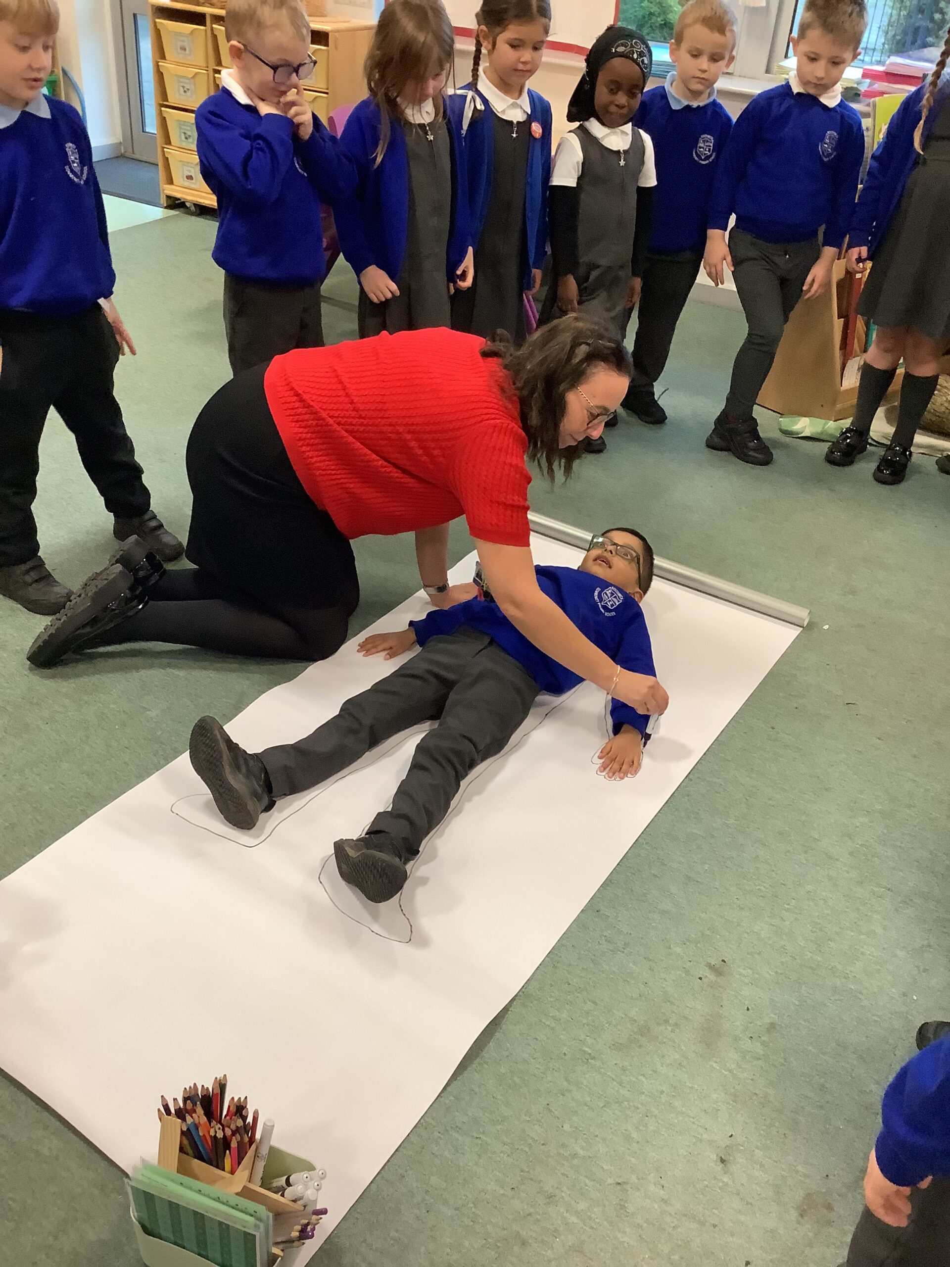 This week in Year 1, we have been learning all about the human body! The children had great fun exploring the different parts of the body and learning their names. We even drew around one of our classmates to create a life-sized outline, then worked together to label all the body parts we could name — from head to toes! The activity helped us understand how our amazing bodies fit and work together, and everyone enjoyed getting hands-on with their learning.