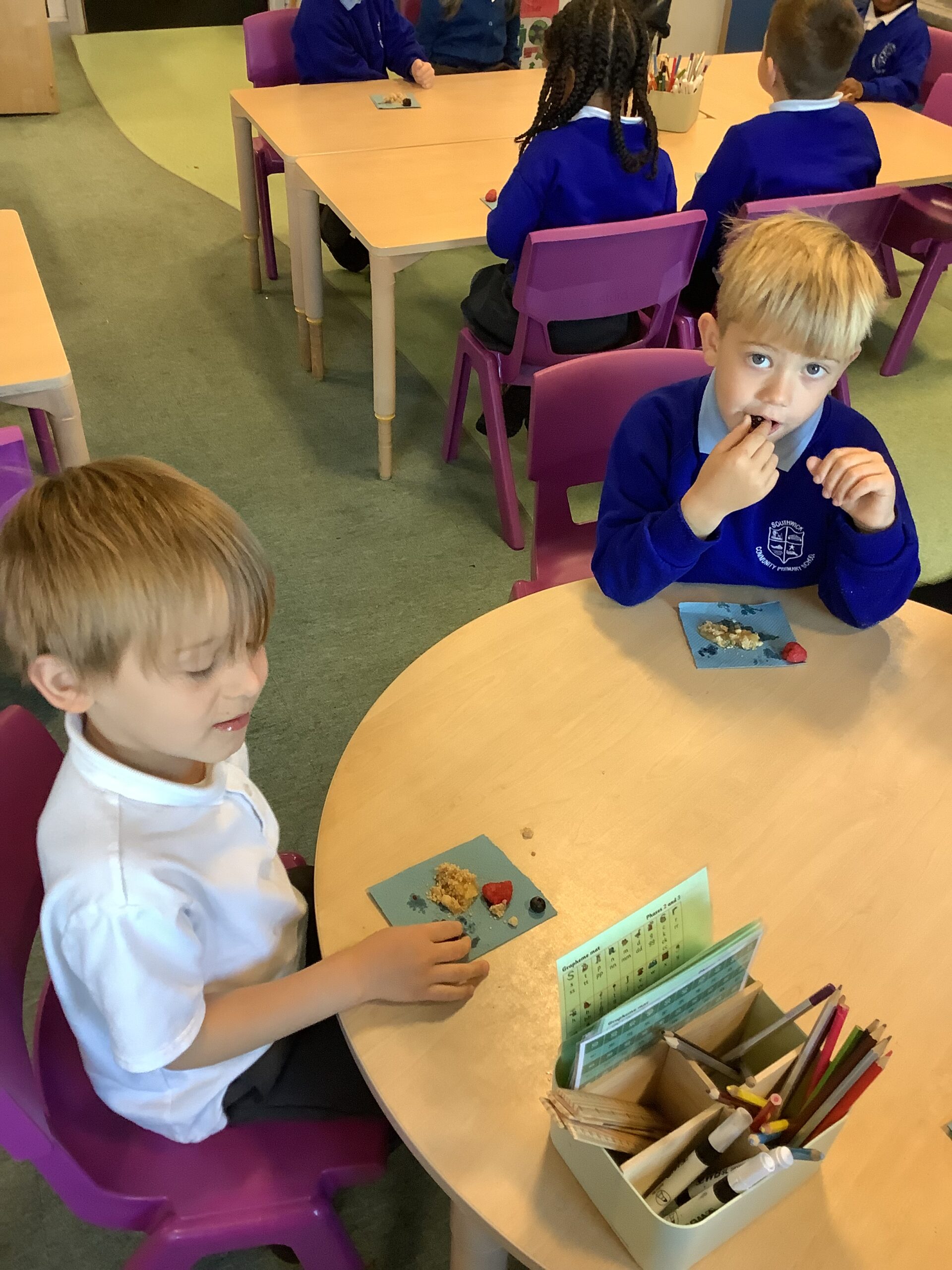 This week we have been very busy in year one. We have been making crumble and tasting fruit; making lists of things we want to put in our very own Gruffalo crumble, going on Autumnal walks to find fruits and berries from our lists. We ended the week by making our very own Gruffalo crumble with Miss Banks and finally writing instructions so we can follow them if we want to make it again.