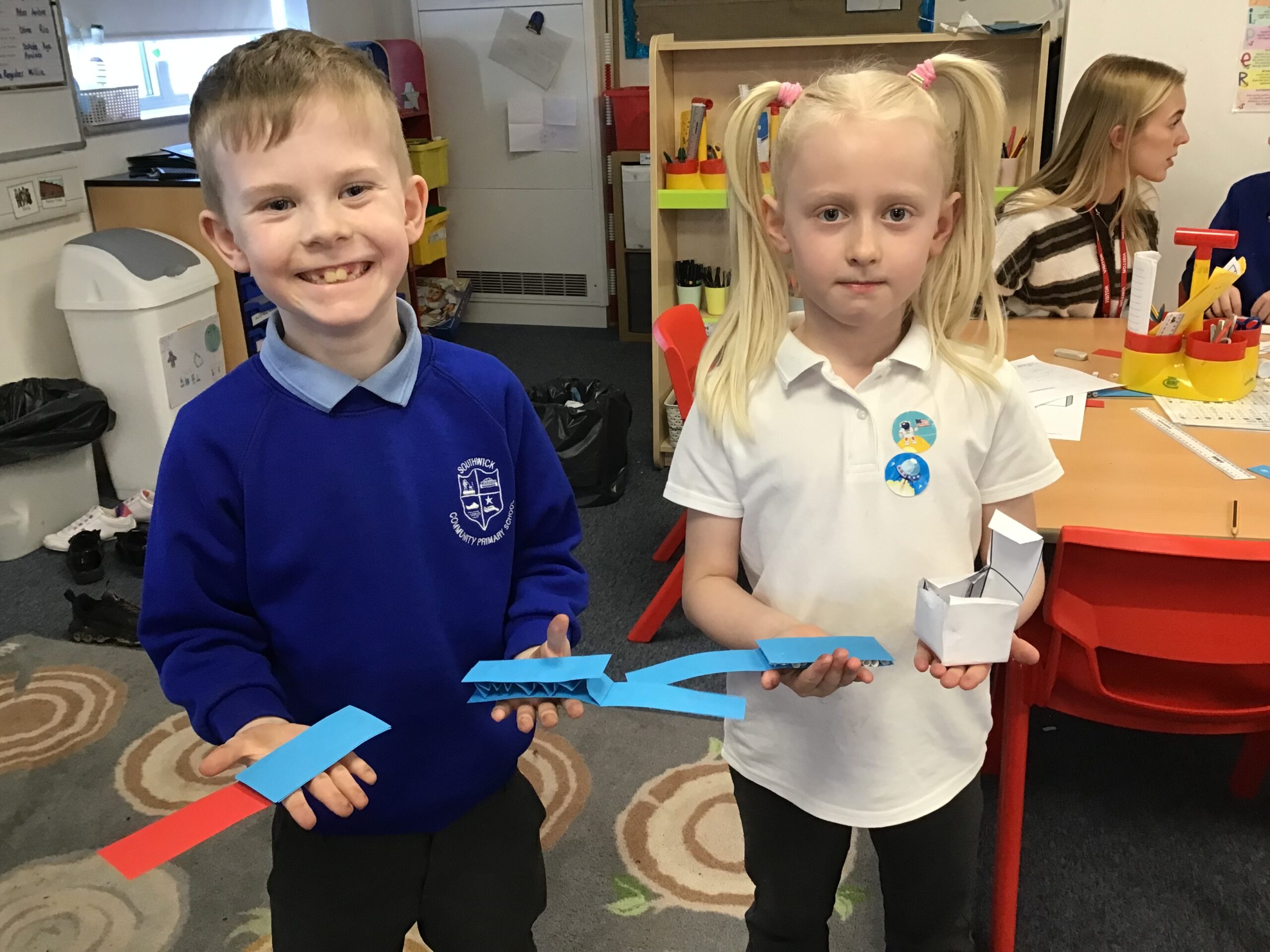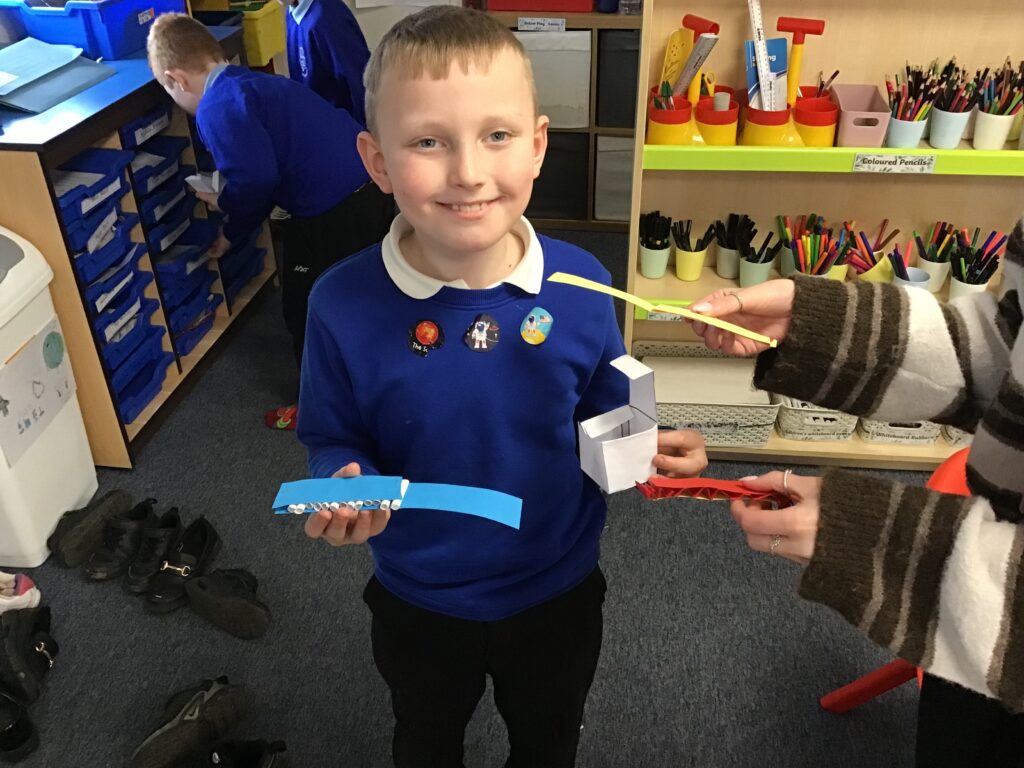 In DT, Year 3 have been looking at ways to make their shell structures stronger. We looked at a variety of ways and then we tried them out with our friends. Once we had tried each way, we made a decision about how we would make our own boxes stronger when we make them. We also thought about what our boxes would look like.