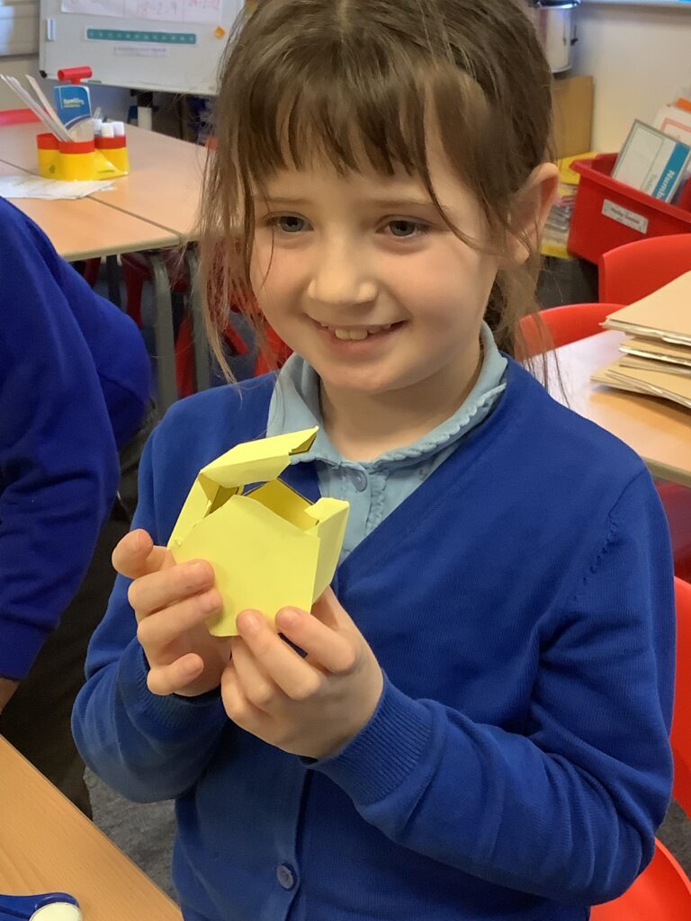 Year 3 began their ‘Shell structures’ DT project. Over the course of the half term, we will be designing and creating our very own packaging to hold an Easter crispie cake. We will also be writing persuasive adverts for our cakes in our English lessons.