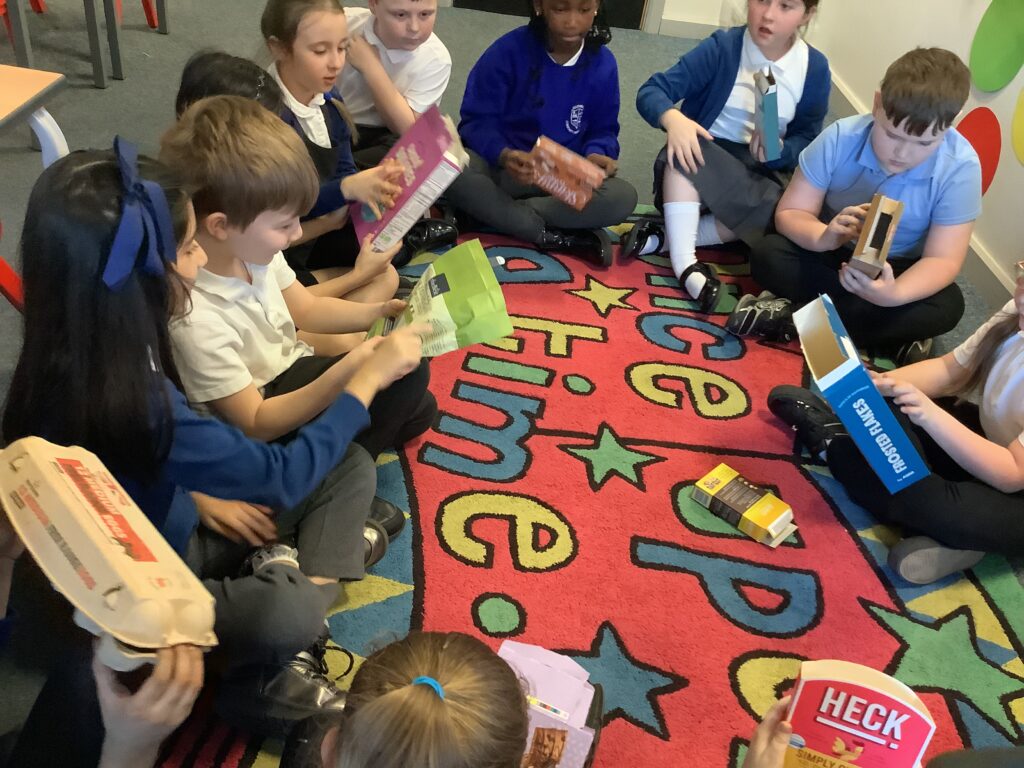 We began by looking at a variety of different packaging and thinking about what information is held on different types of packaging. This will help us to understand what information must be included on our own packaging.