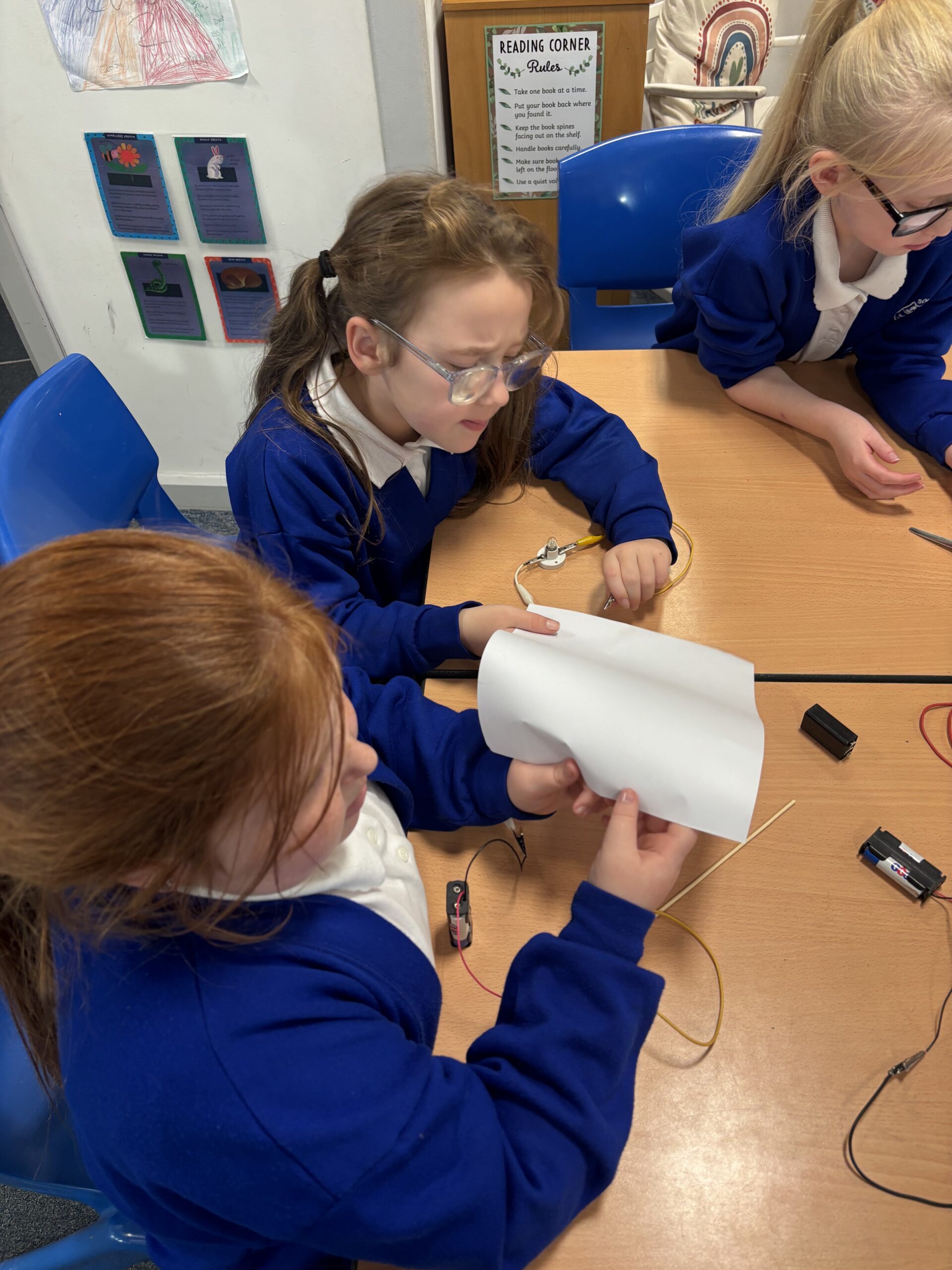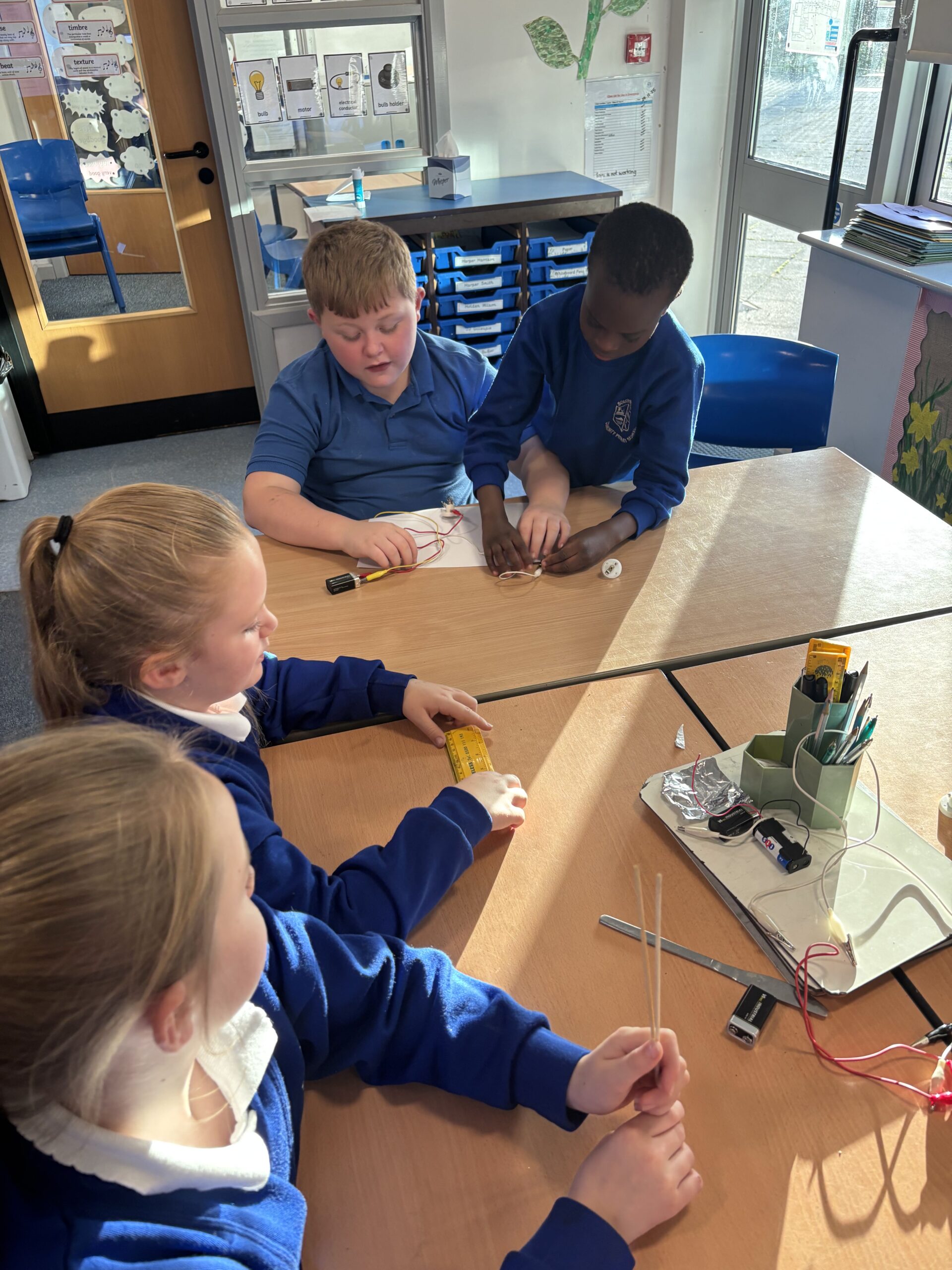 This term we have loved learning about how electricity flows. We have made our own circuits using buzzers and light bulbs. We then tested different materials to see if they are conductors or insulators, and we have even made our own switches using paper clips, cardboard and split pins. We have all really enjoyed Science this term!