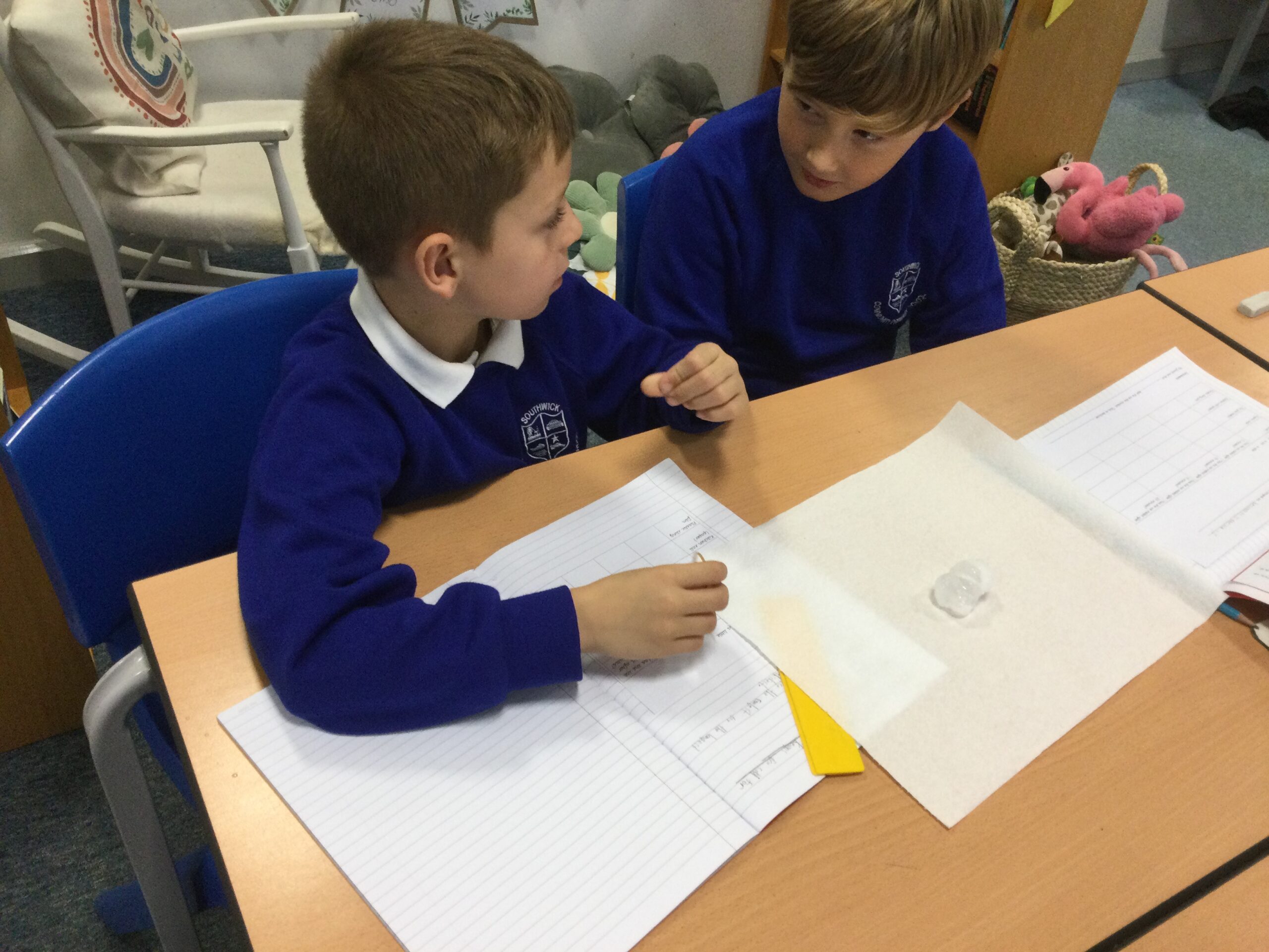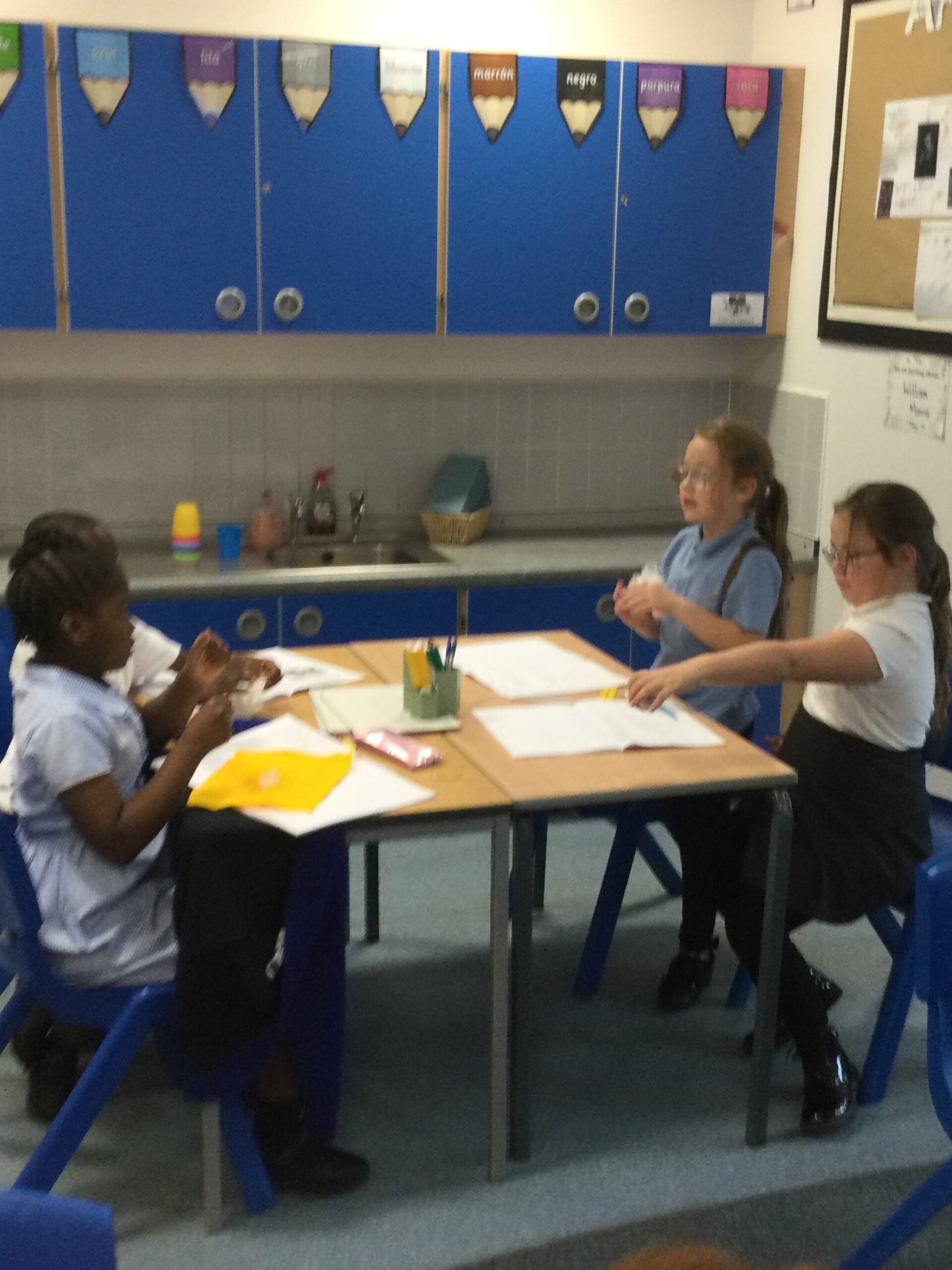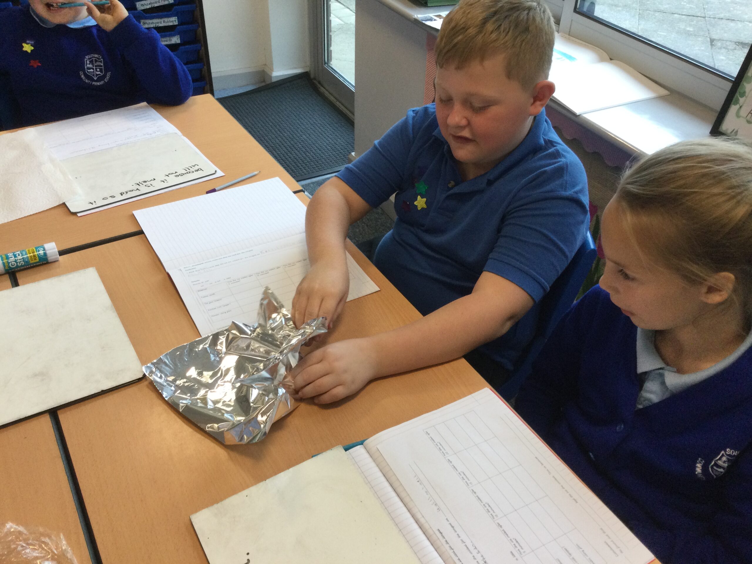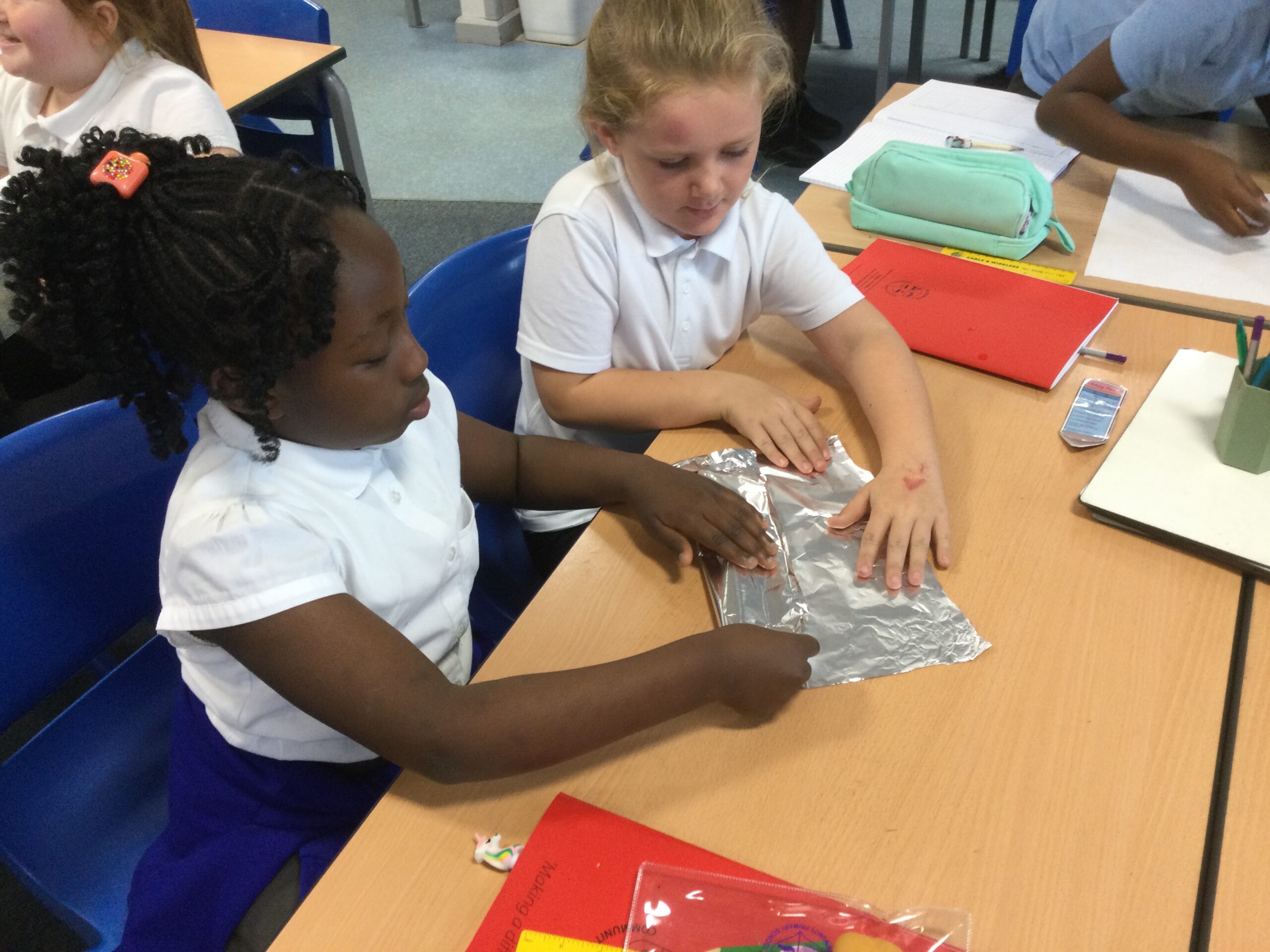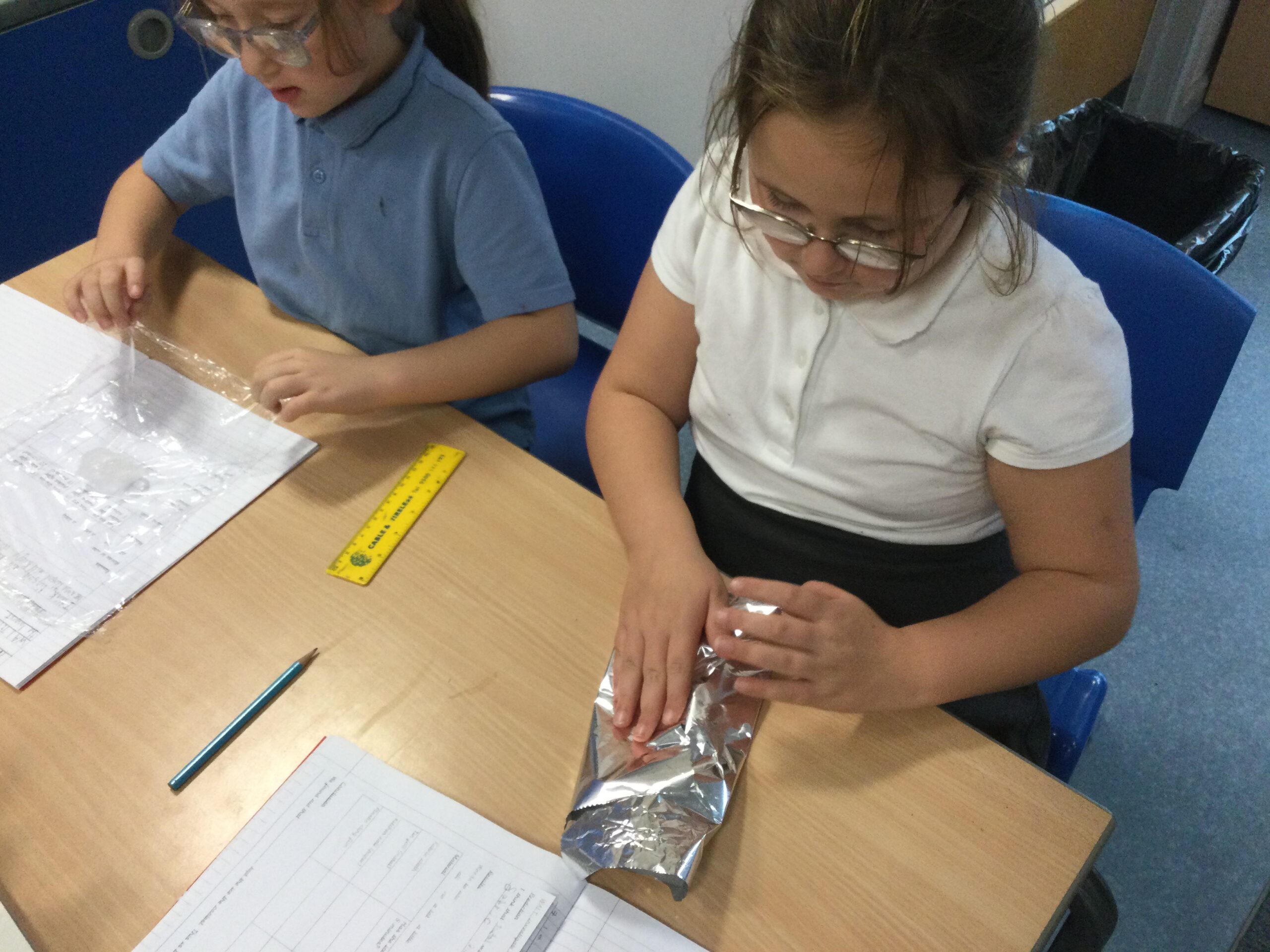 This week we have been learning about living in space for Space Week. We discussed what it would be like to travel into space and what you would need to wear. To test what material would be best for a spacesuit we conducted an experience to see which materials melt ice the fastest using metal, plastic, fabric and paper. We found the fabric was the best material as it kept the ice cool the longest. Take a look at us in action.