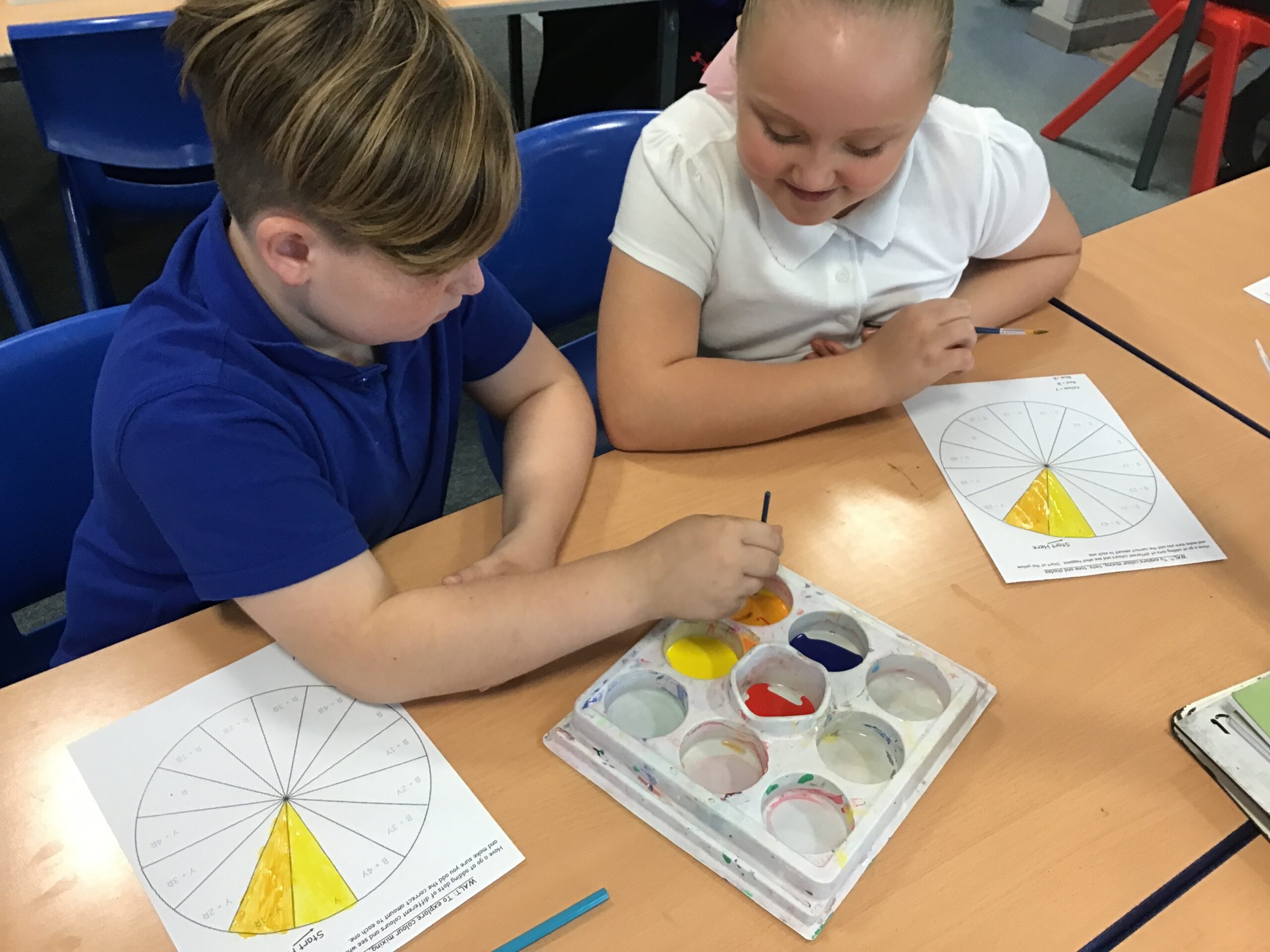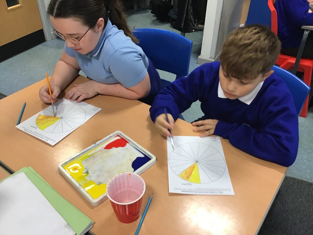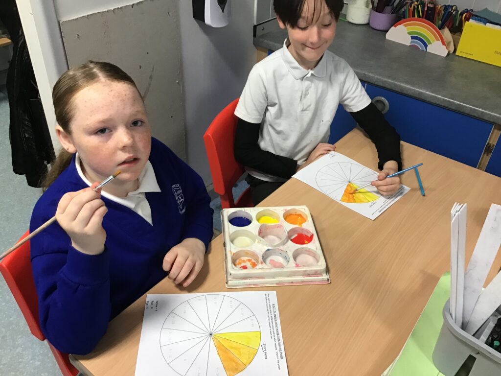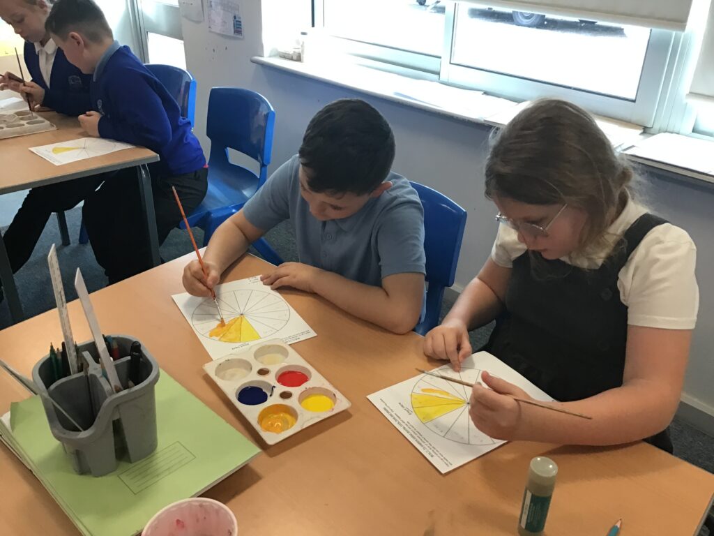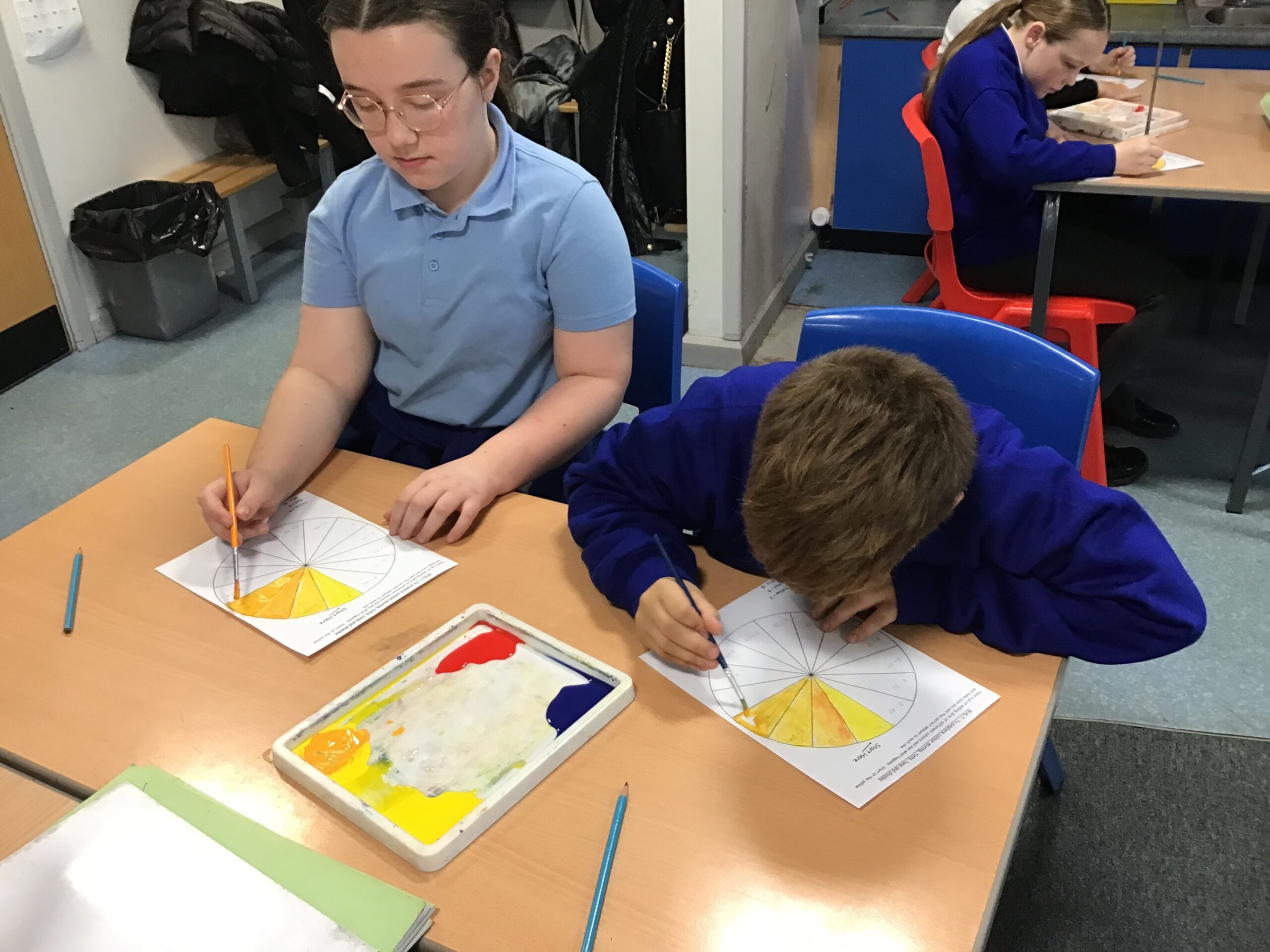 In art we looked at how to mix colours effectively. We then used the primary colours to create darker tones and shades. We then used water colour and colour mixed and painted our Lowry sketches-they turned out amazingly detailed!