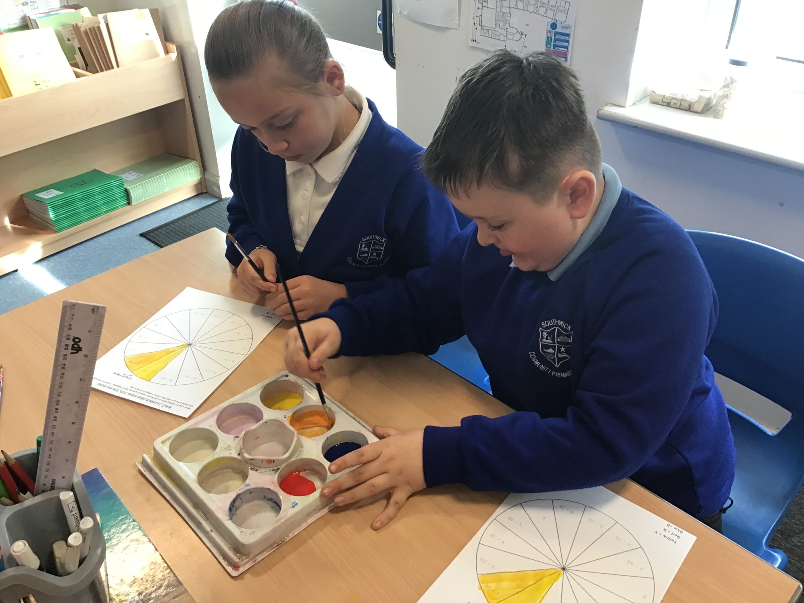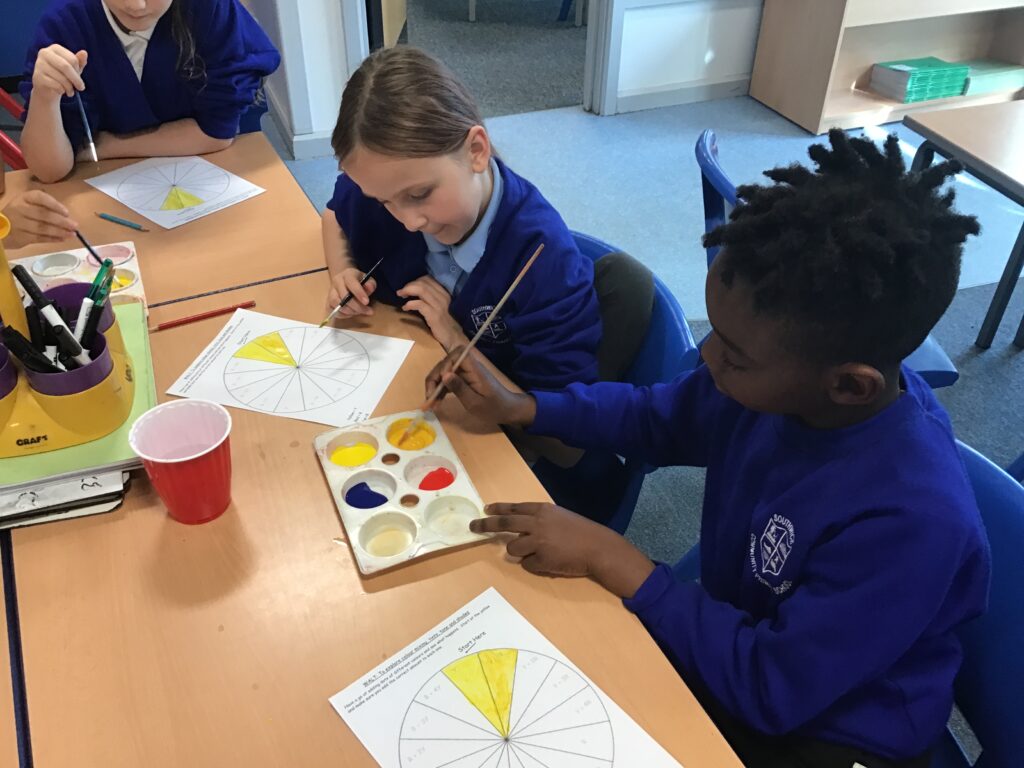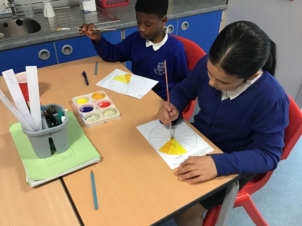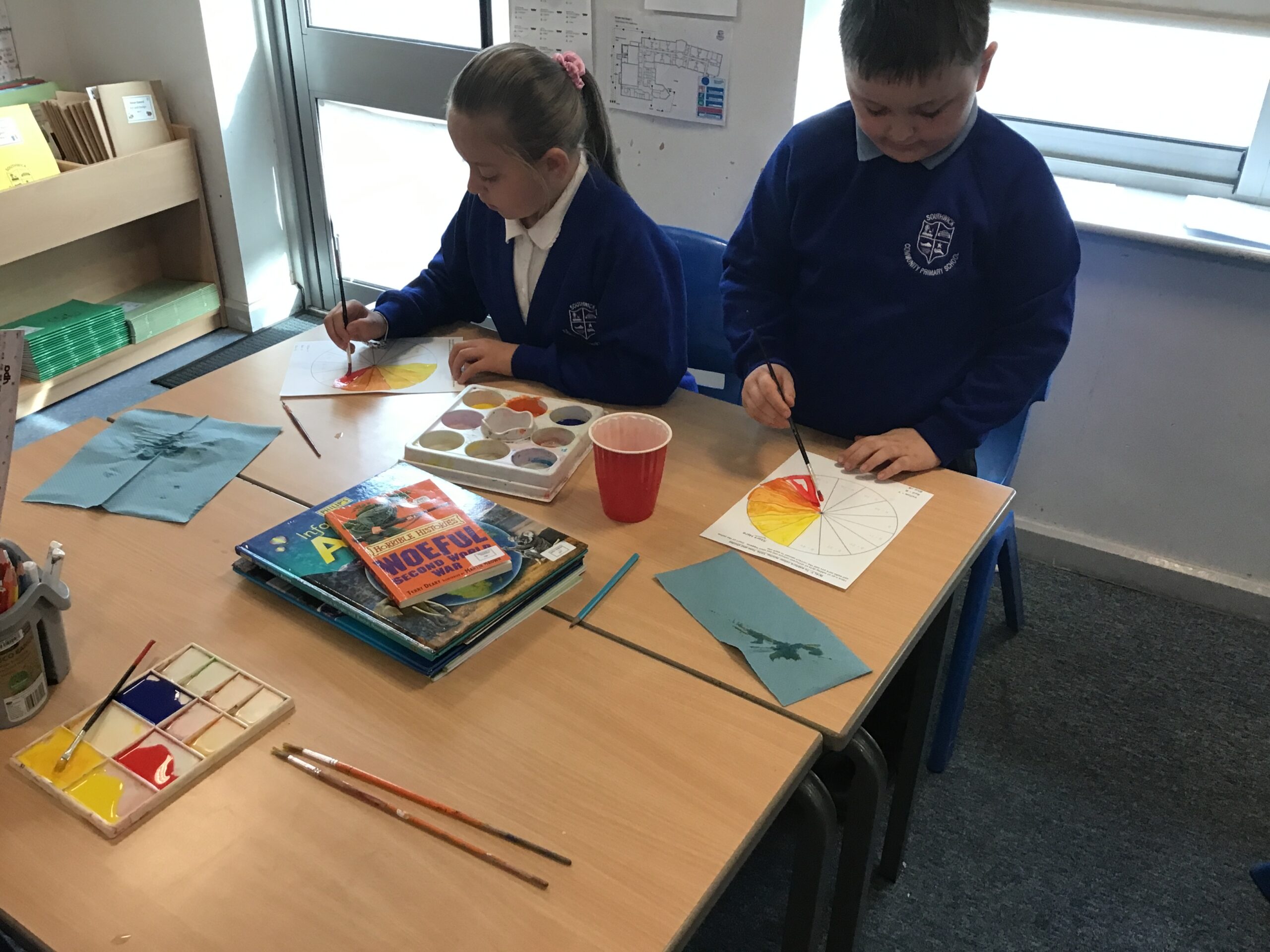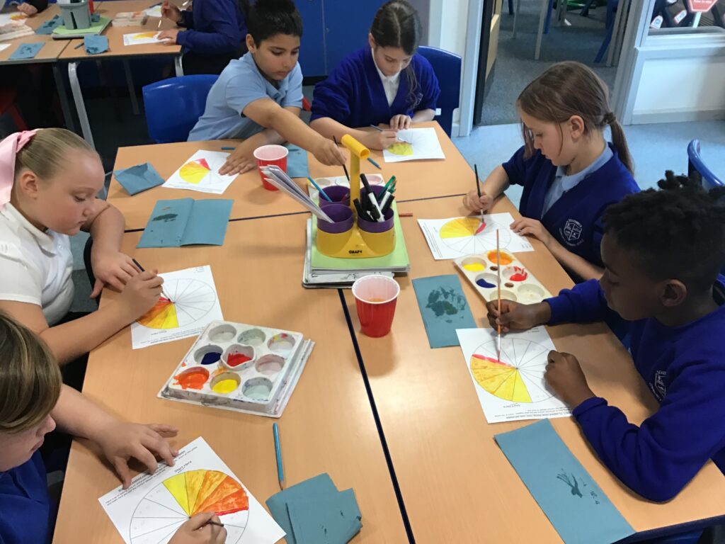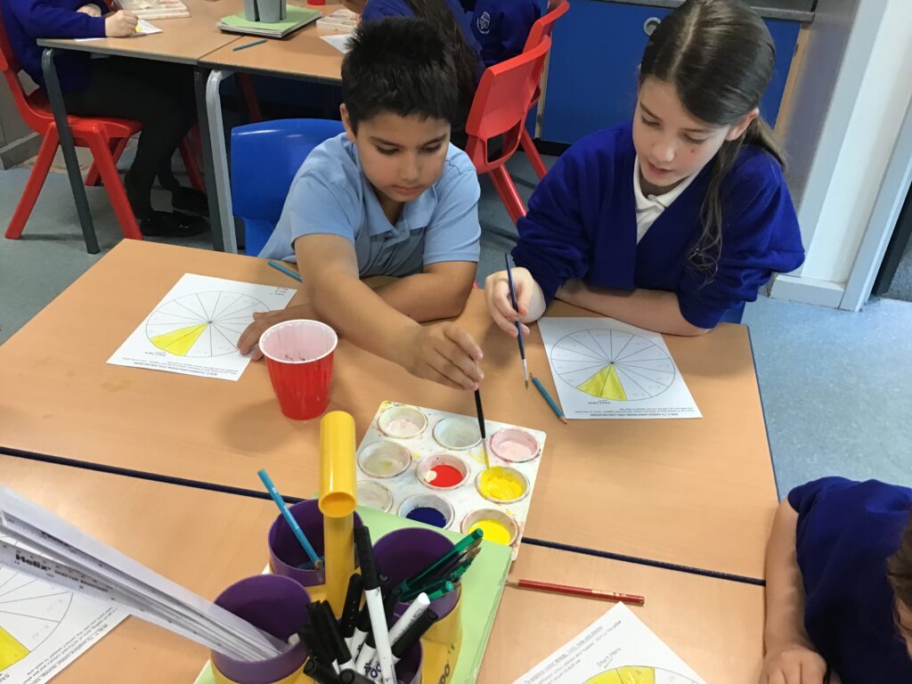 In art we looked at how to mix colours effectively. We then used the primary colours to create darker tones and shades. We then used water colour and colour mixed and painted our Lowry sketches-they turned out amazingly detailed!
