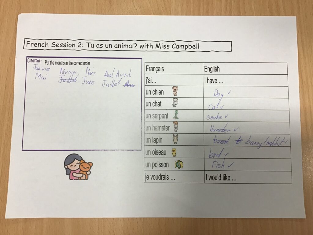 Miss Campbell came down from Redhouse Comp to teach us French. We had great fun, learned a lot and she is very excited to meet some of us in year 7!