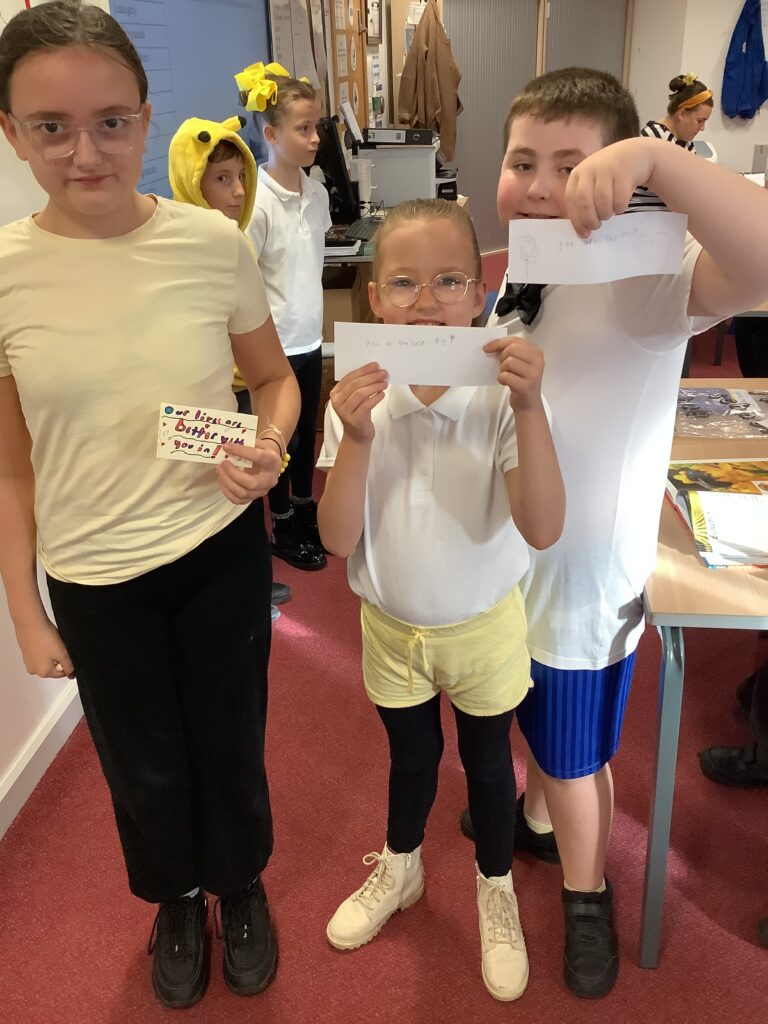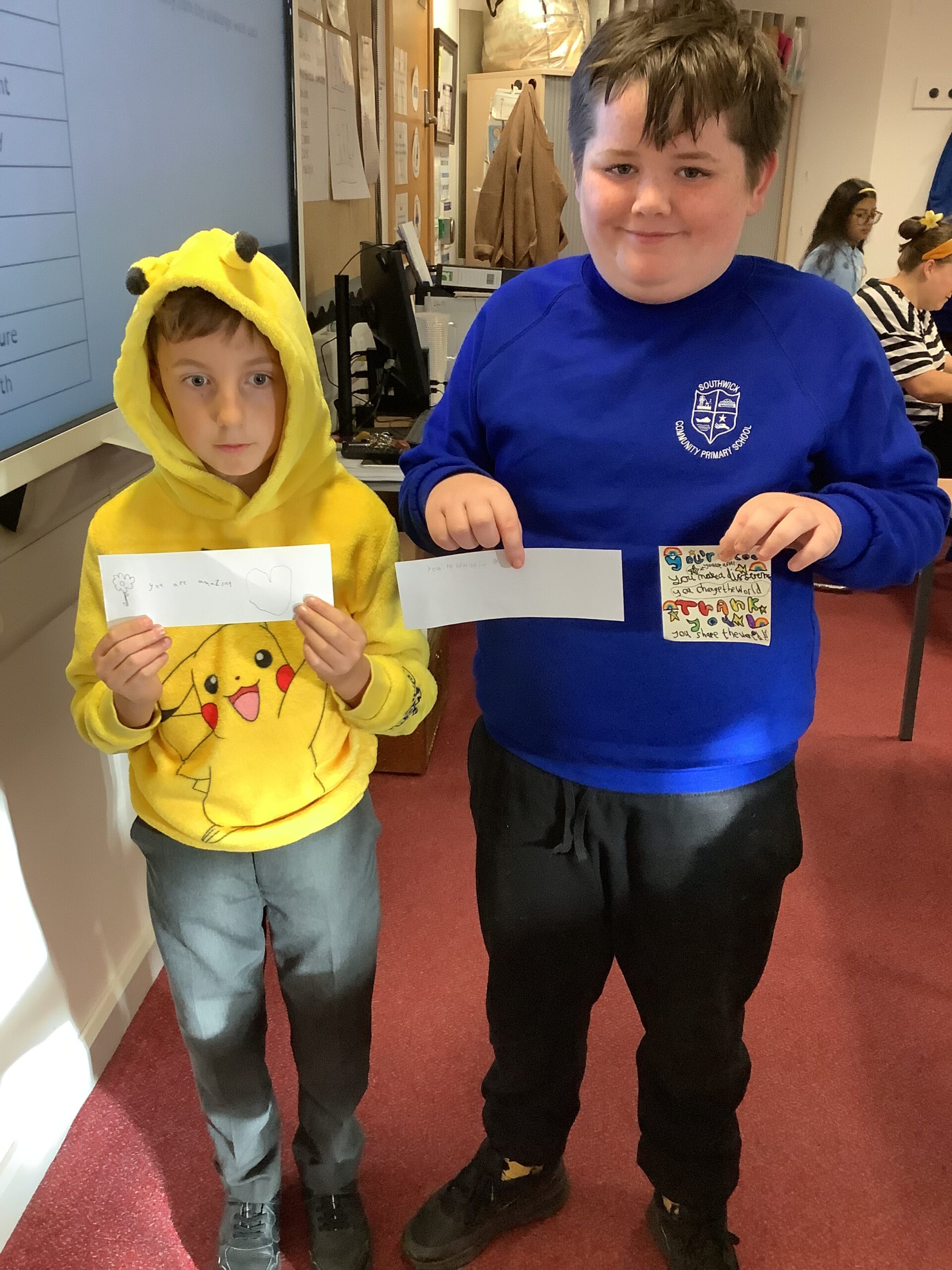 Year 5 wrote compliments for year 6 and made their day when we handed them out!