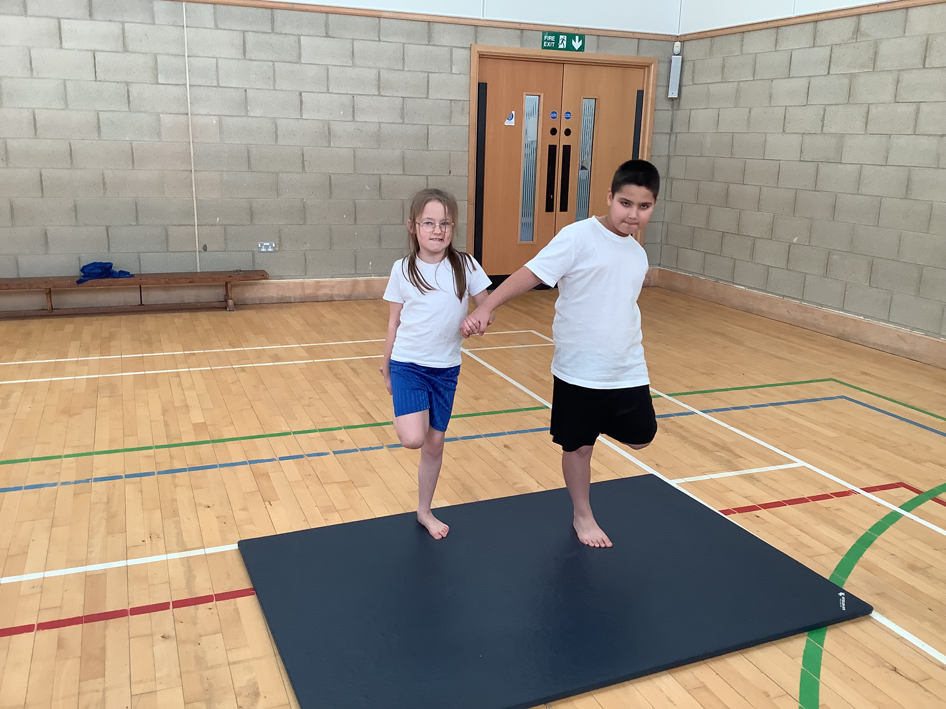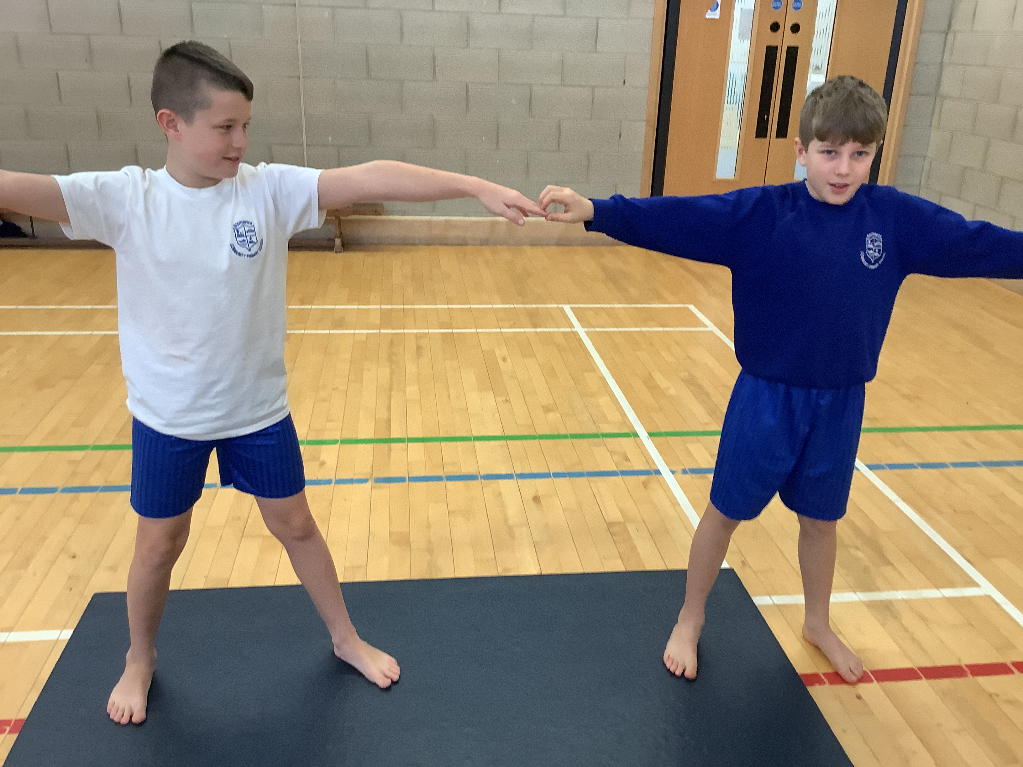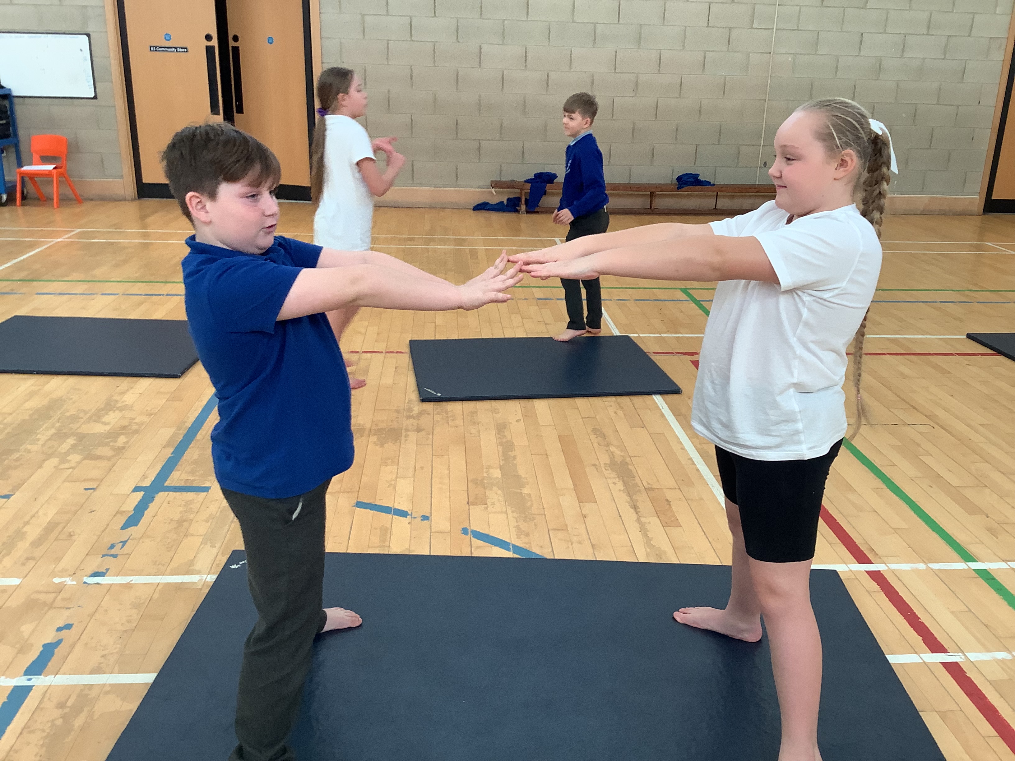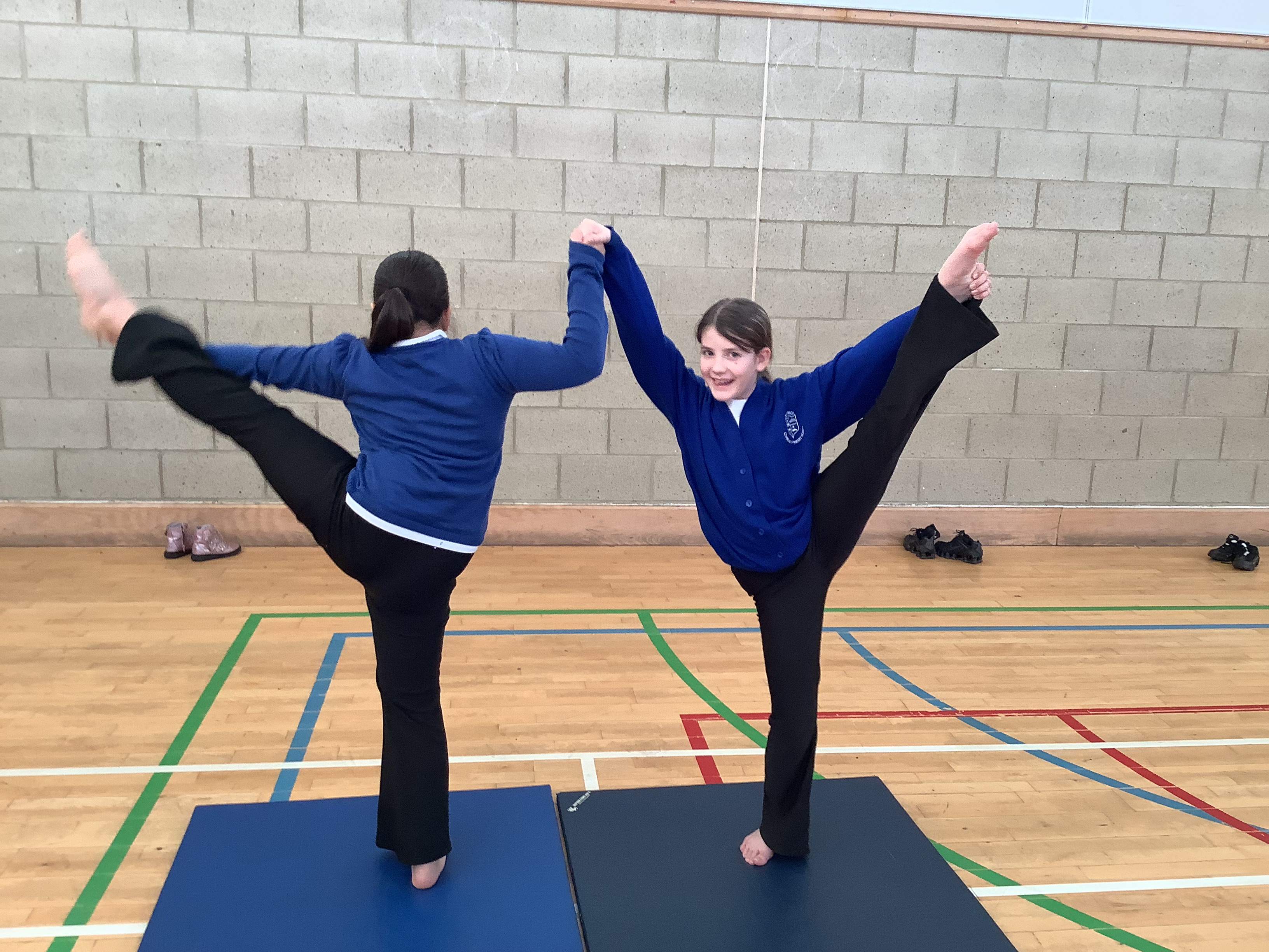 Our first gymnastics lesson had us looking at the importance of stretching! We then looked at symmetrical and asymmetrical balances and created several with a partner.