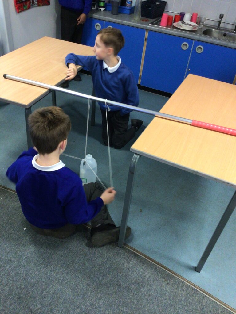 Today, to end our unit on forces, we investigated pulleys. We were shocked at how much easier things were to lift using a pulley-it was amazing!
