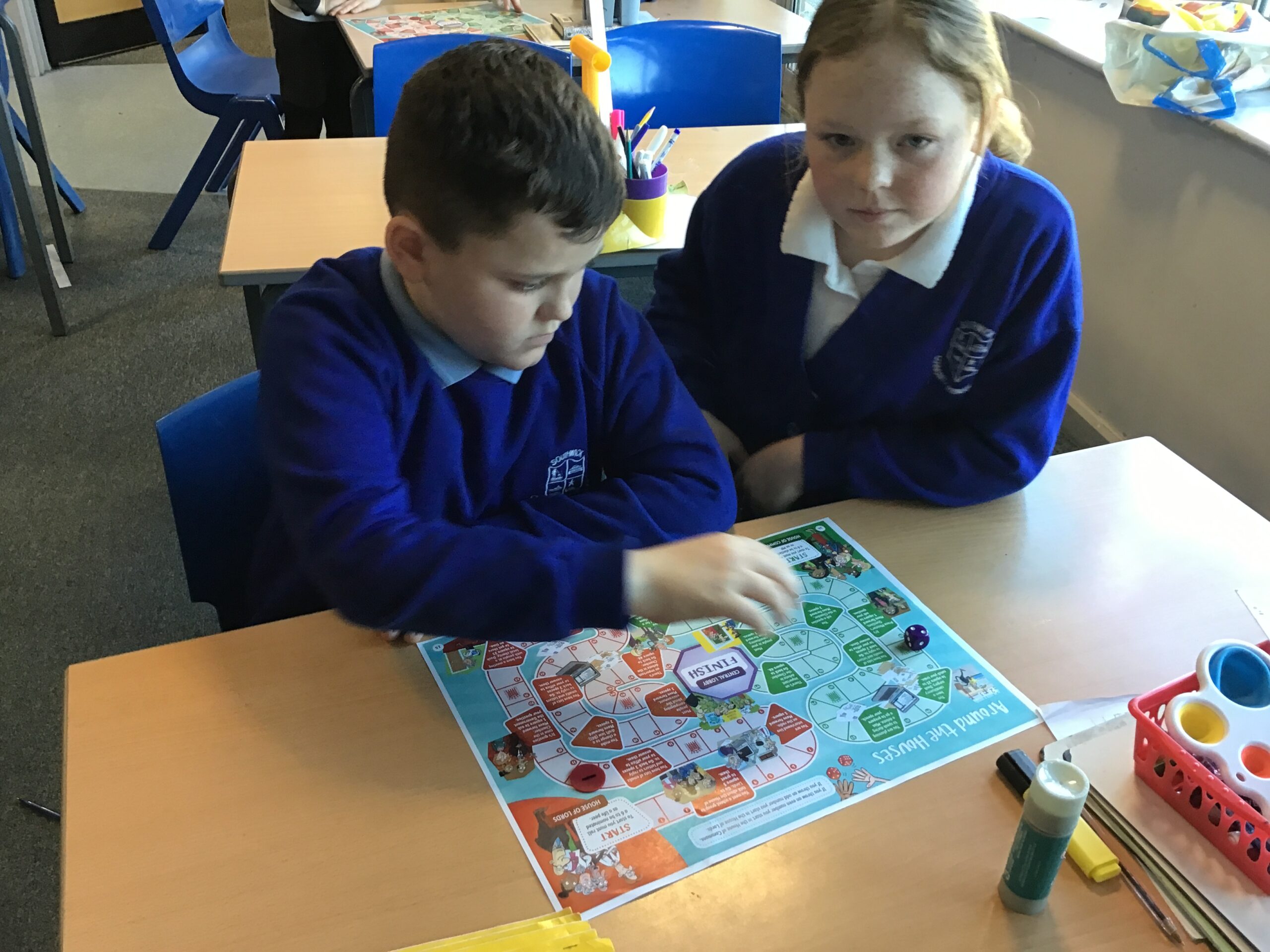 In PSHE we learned about democracy and what that looked like in the UK. We learned all about Parliament, the Government, the House of Lords and elections. To tie all of our learning together we played a Houses of Parliament board game-we loved it!