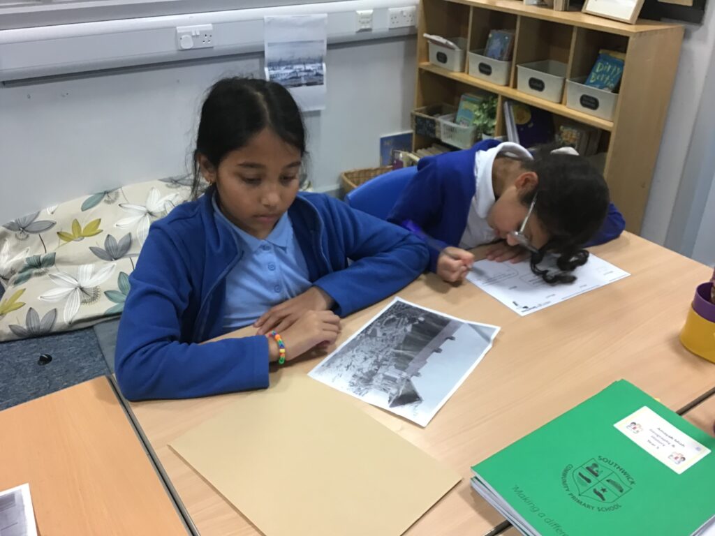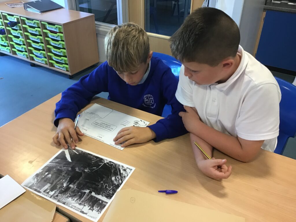 We looked at photographic evidence of the effect of WW2 on Sunderland and were history detectives! We looked at pictures of bombing raids on the city and were shocked at the damage and destruction they caused!