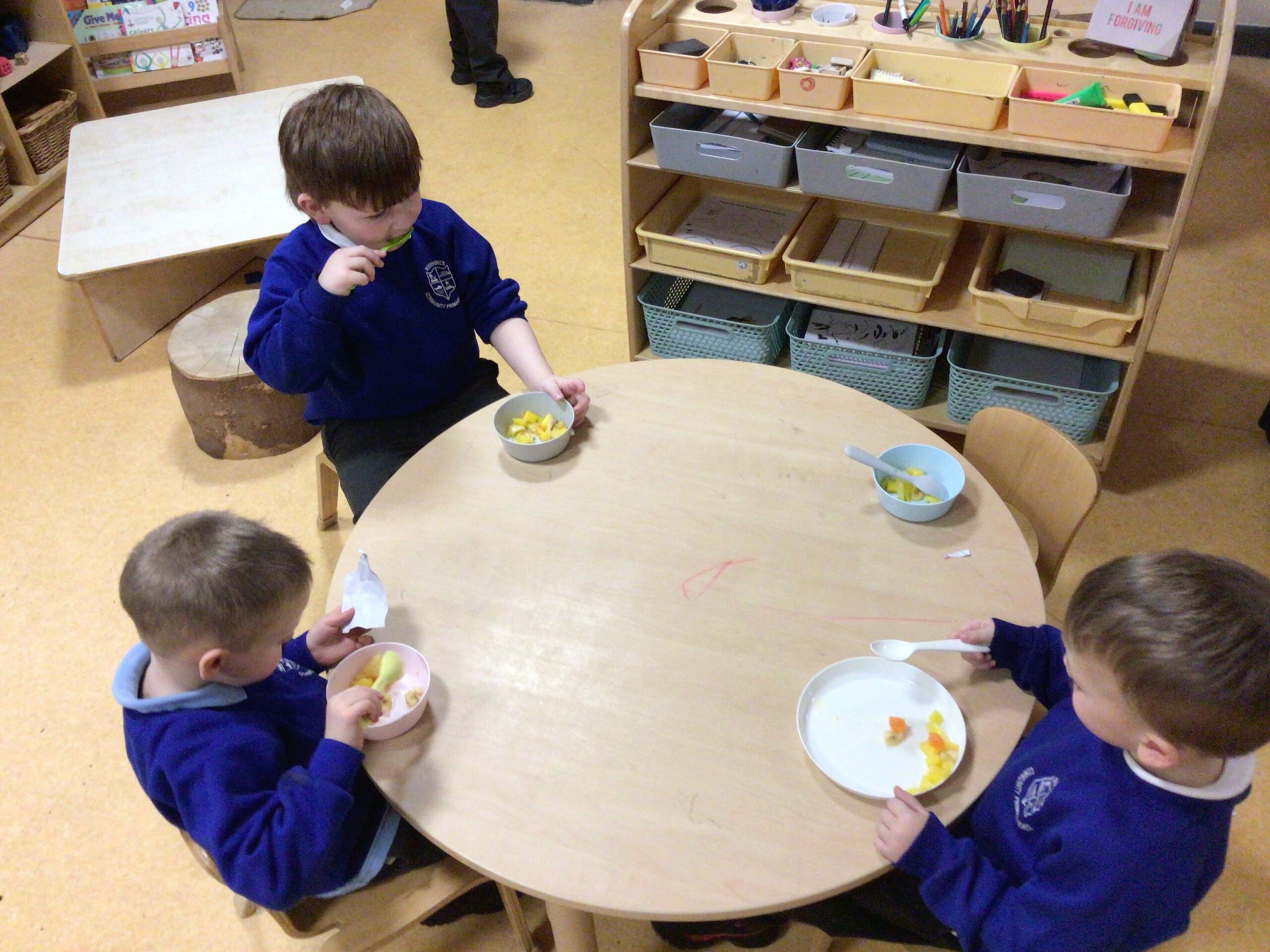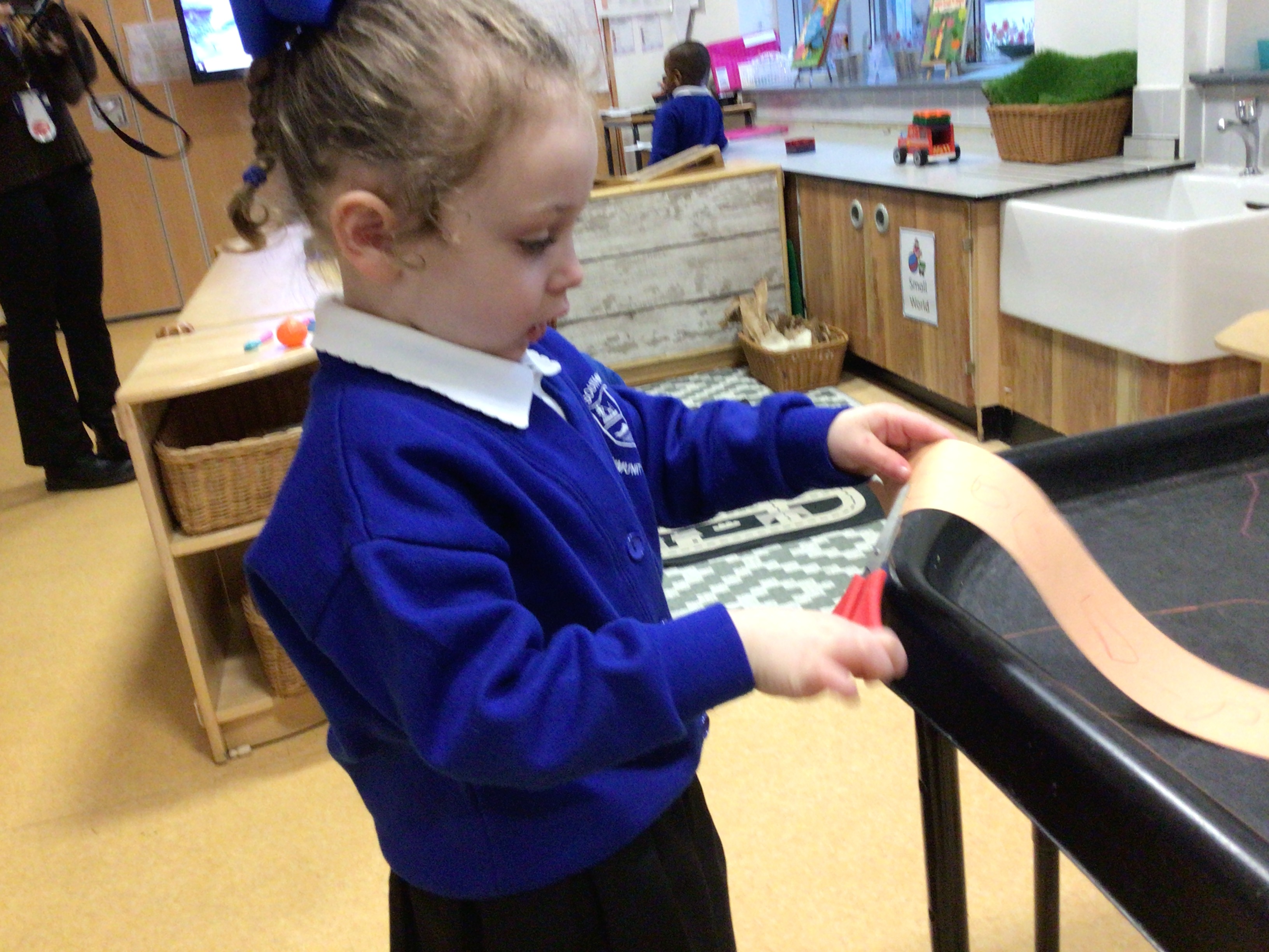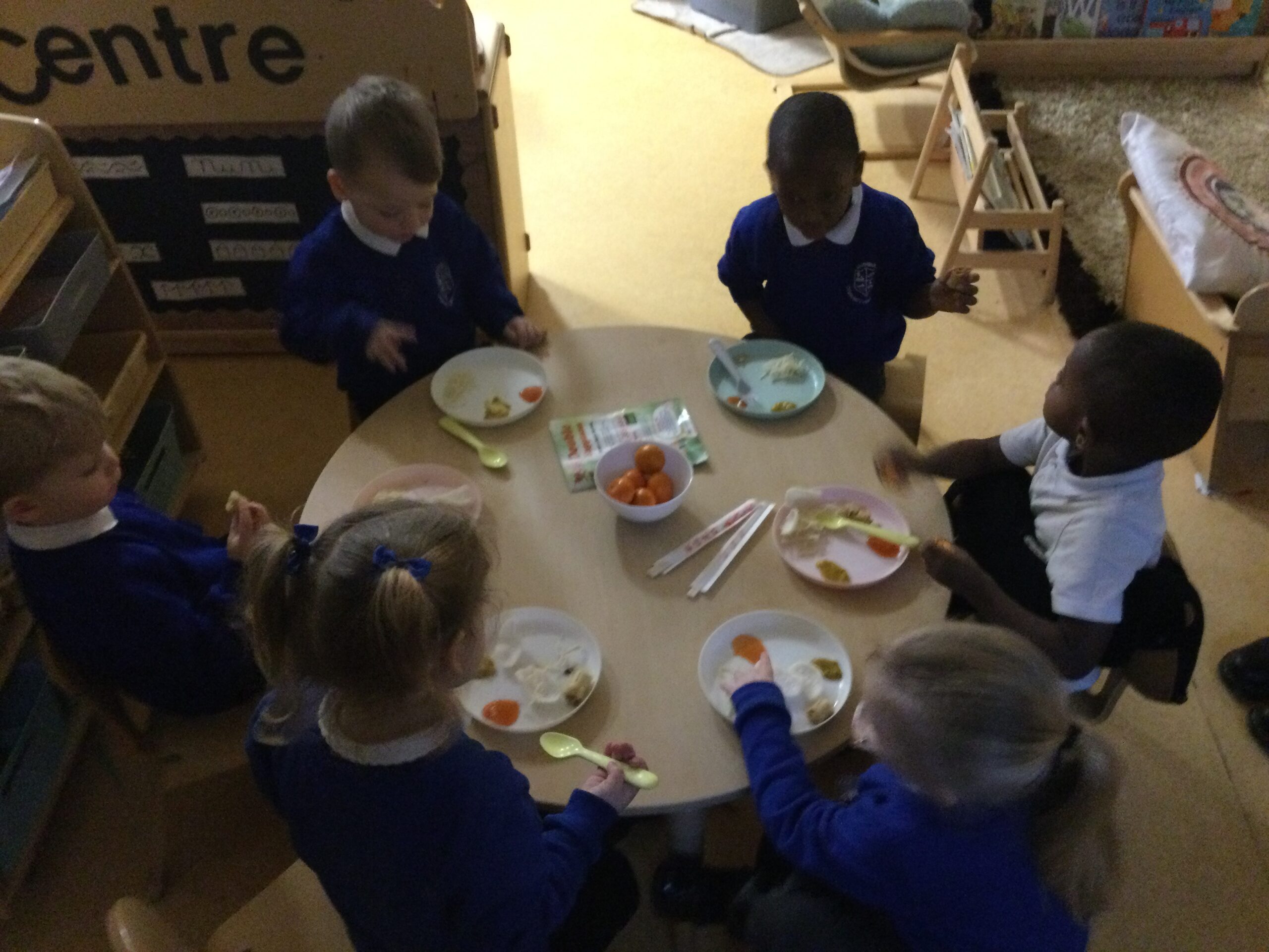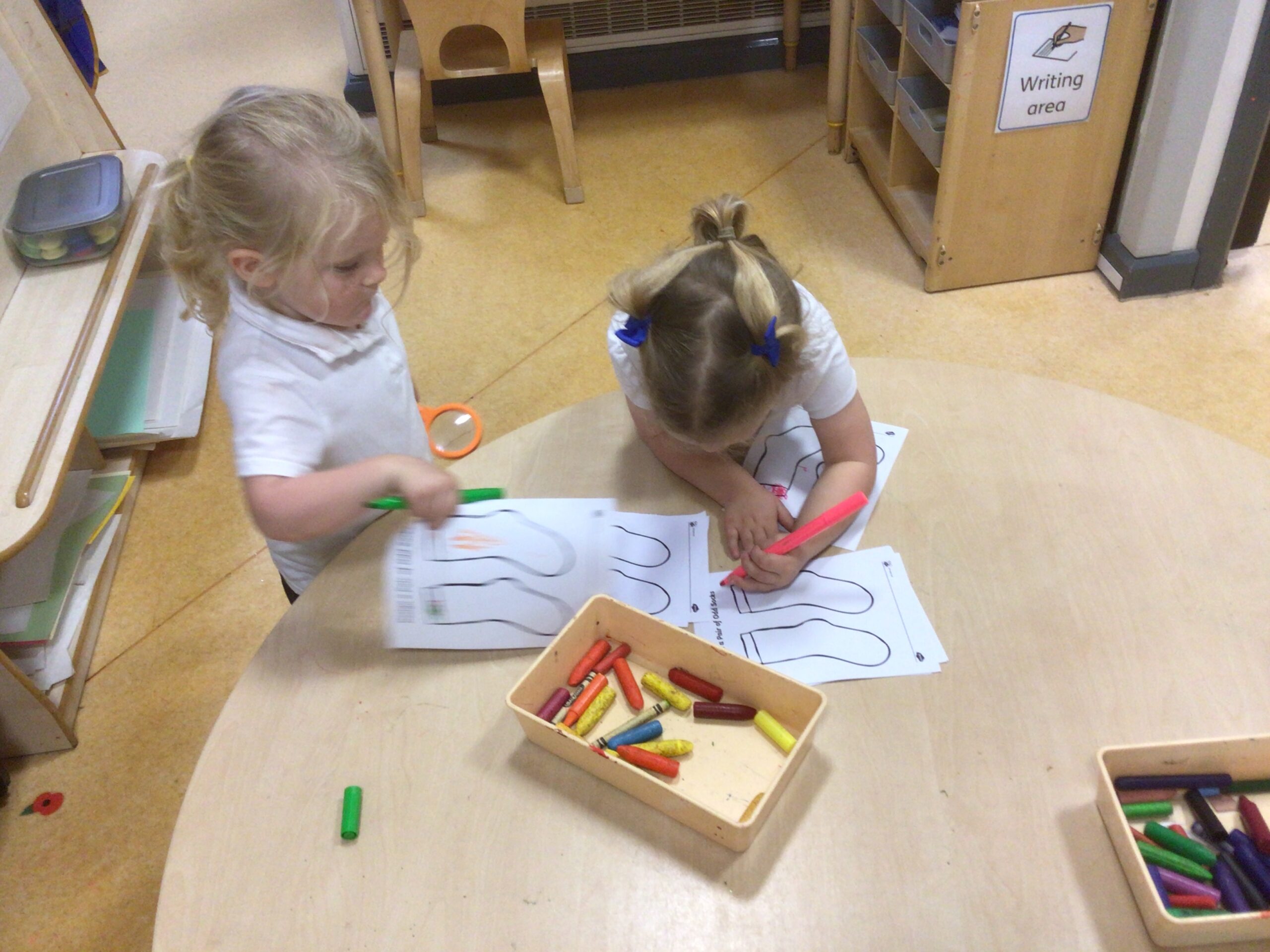 In Nursery we have been learning about our 5 senses. We have enjoyed taste testing different foods and describing how they taste. We have taken part in Autumn sound walks and activities where we have listened closely to the different sounds we may hear during the autumn period such as wind, rain, wind chimes, birds etc. In Nursery we have used our senses of smell in the playdough area where we had cinnamon and spearmint scented playdough. We have used our sense of touch and sight to see and feel different autumn objects in our Autumn feel bag and in the tuff tray exploring the pumpkins. We also went outside and used our sense of sight to collect autumn treasures and to see different signs of Autumn such as spider webs, leaves etc.