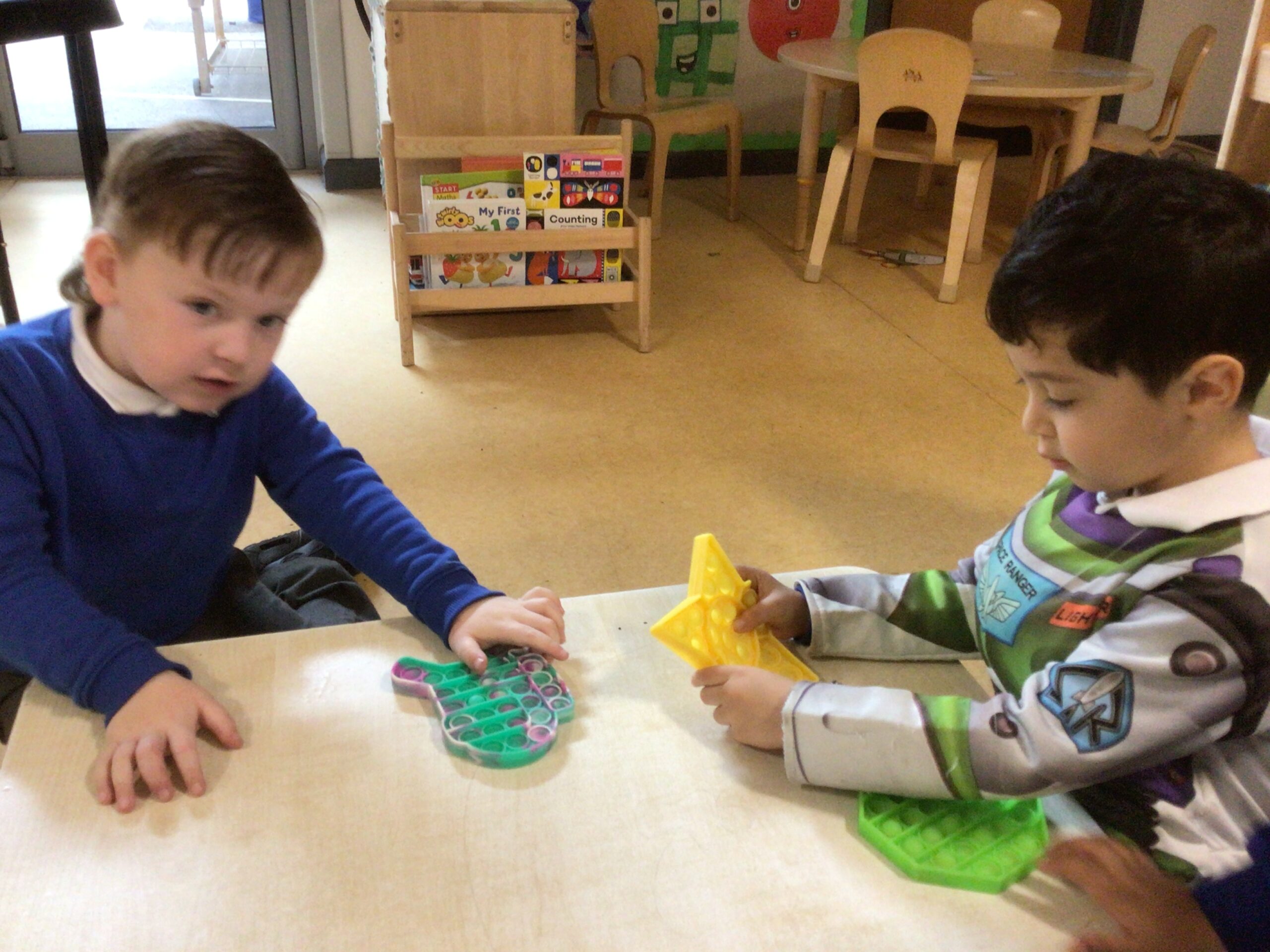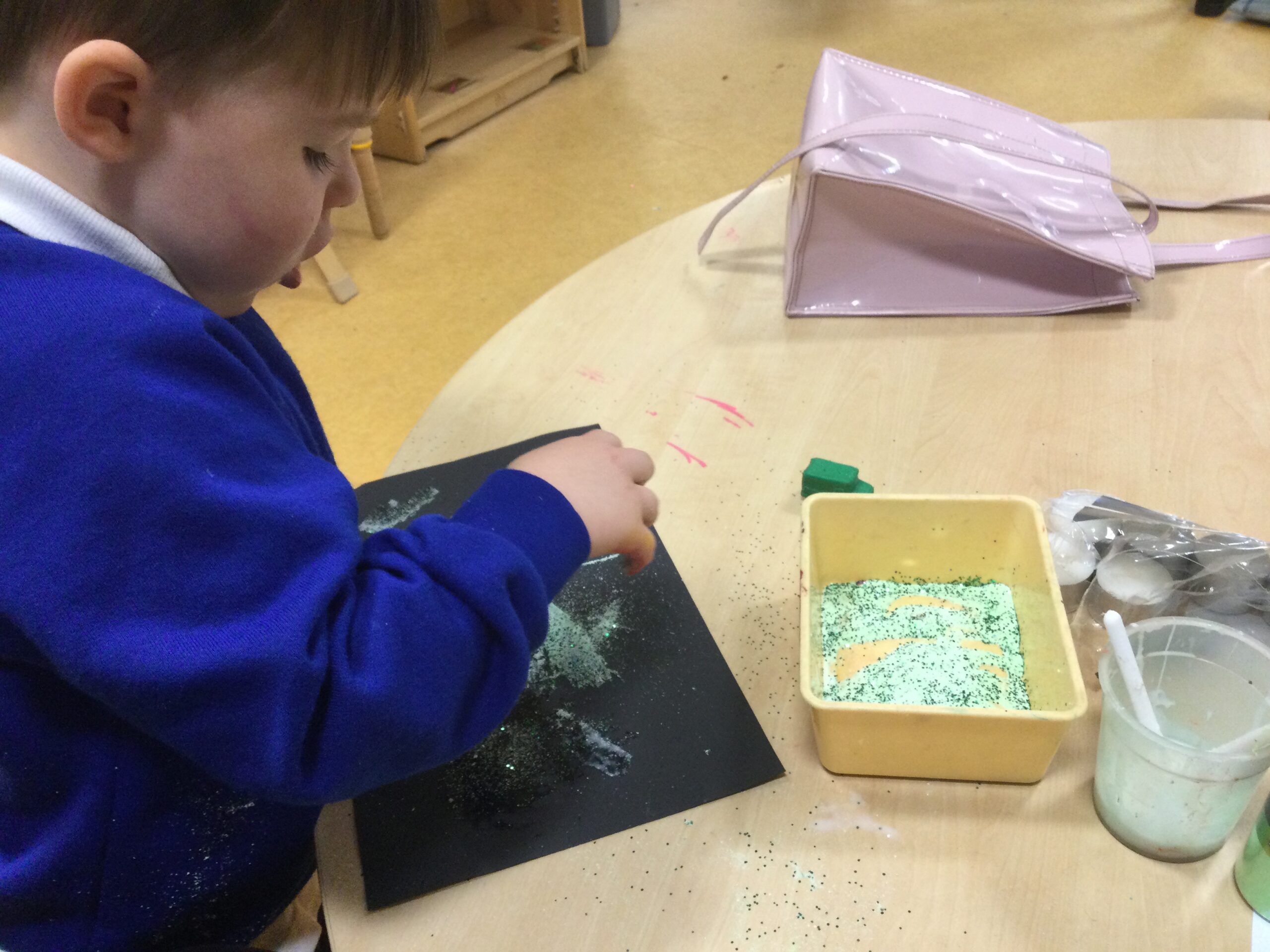 Nursery have loved reading the book “How to catch a star” and retelling the story, trying to catch our very own star, we’ve made stars in the creative area and made a huge rocket which we could blast up to space in.