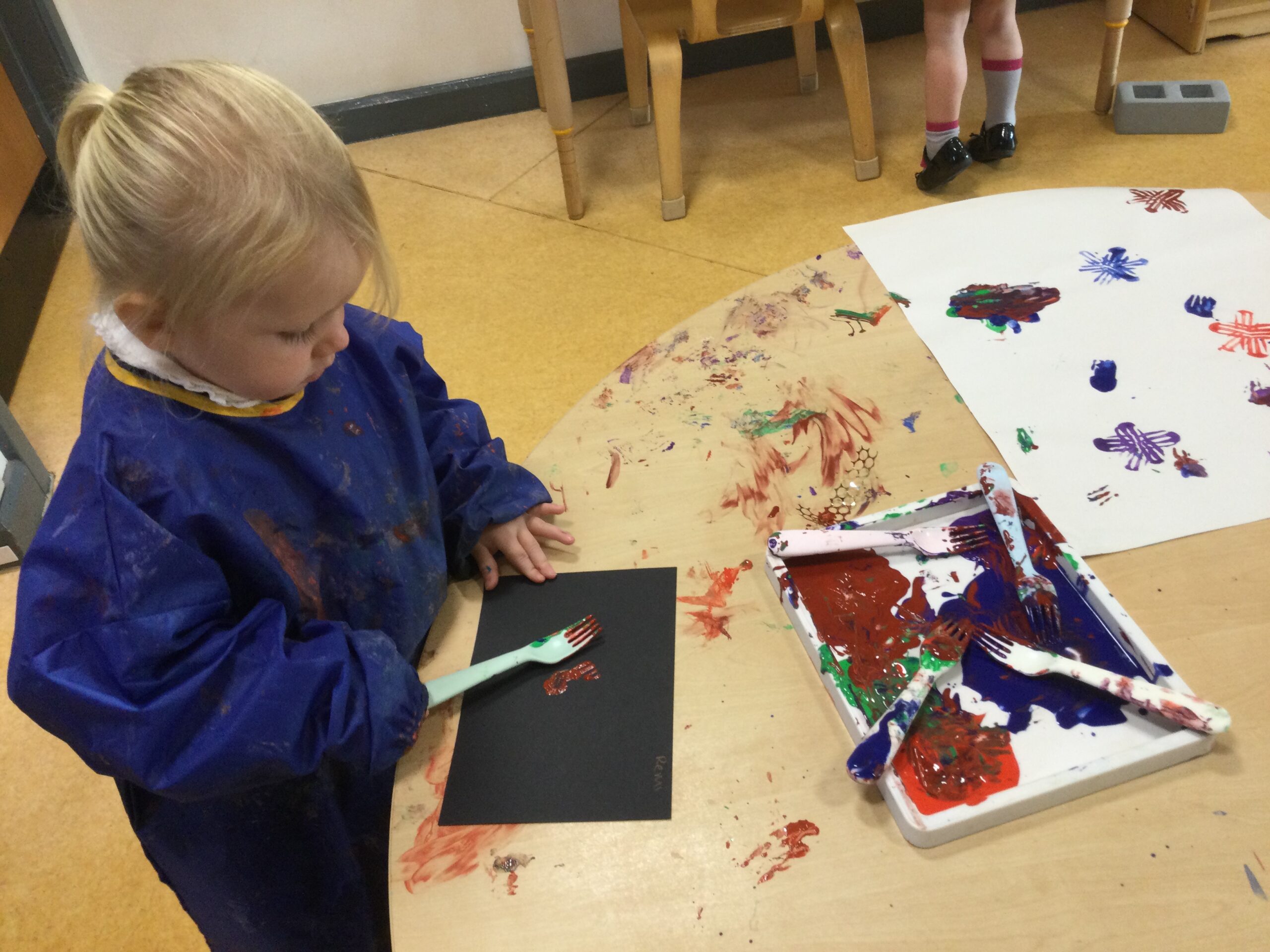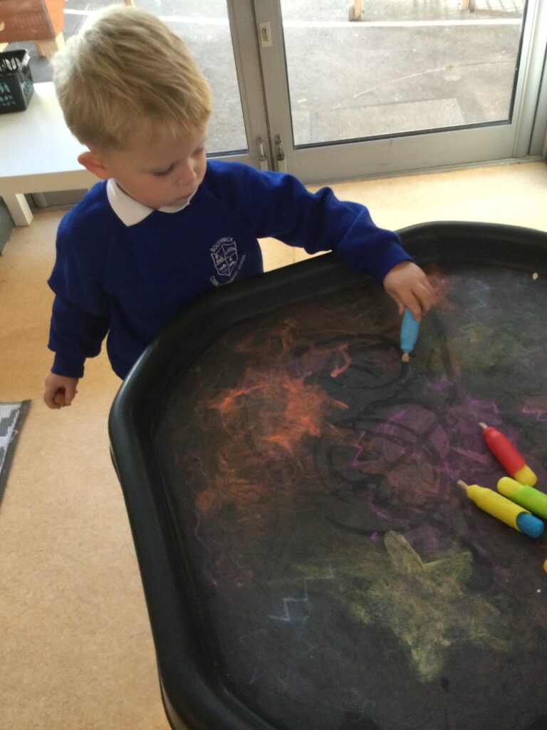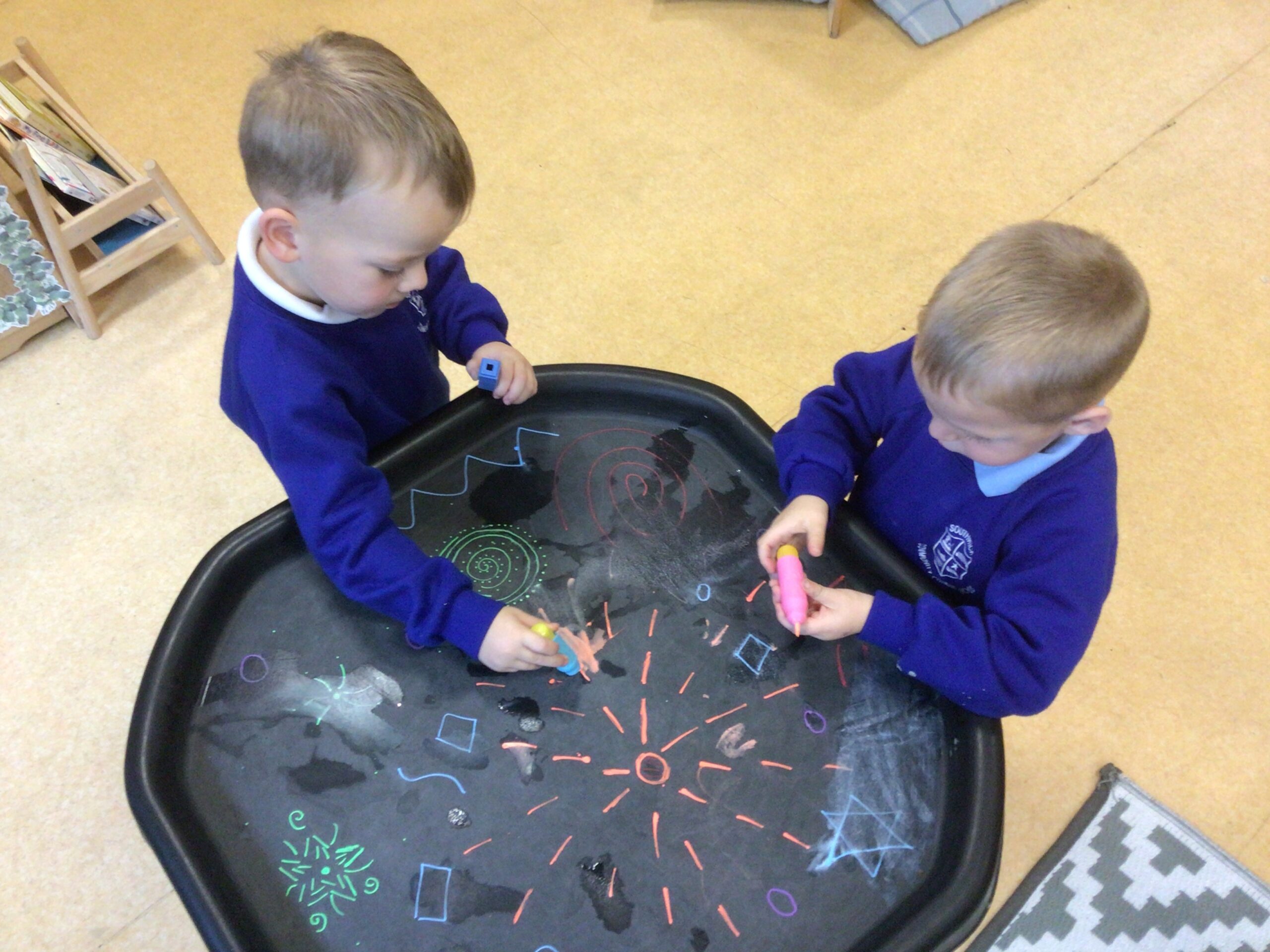 This week nursery have been learning all about the celebration of bonfire night and the history and traditions of this celebration. Nursery have been learning all about Guy Fawkes and the gunpowder plot. We have been creating our very own firework drawings using chalk and painting with forks and have been mark making patterns in the sand. Nursery have enjoyed making their own chocolate sparklers and firework toast exploring a range of colours and patterns. In the reading area we have enjoyed reading lots of books all about bonfire night.