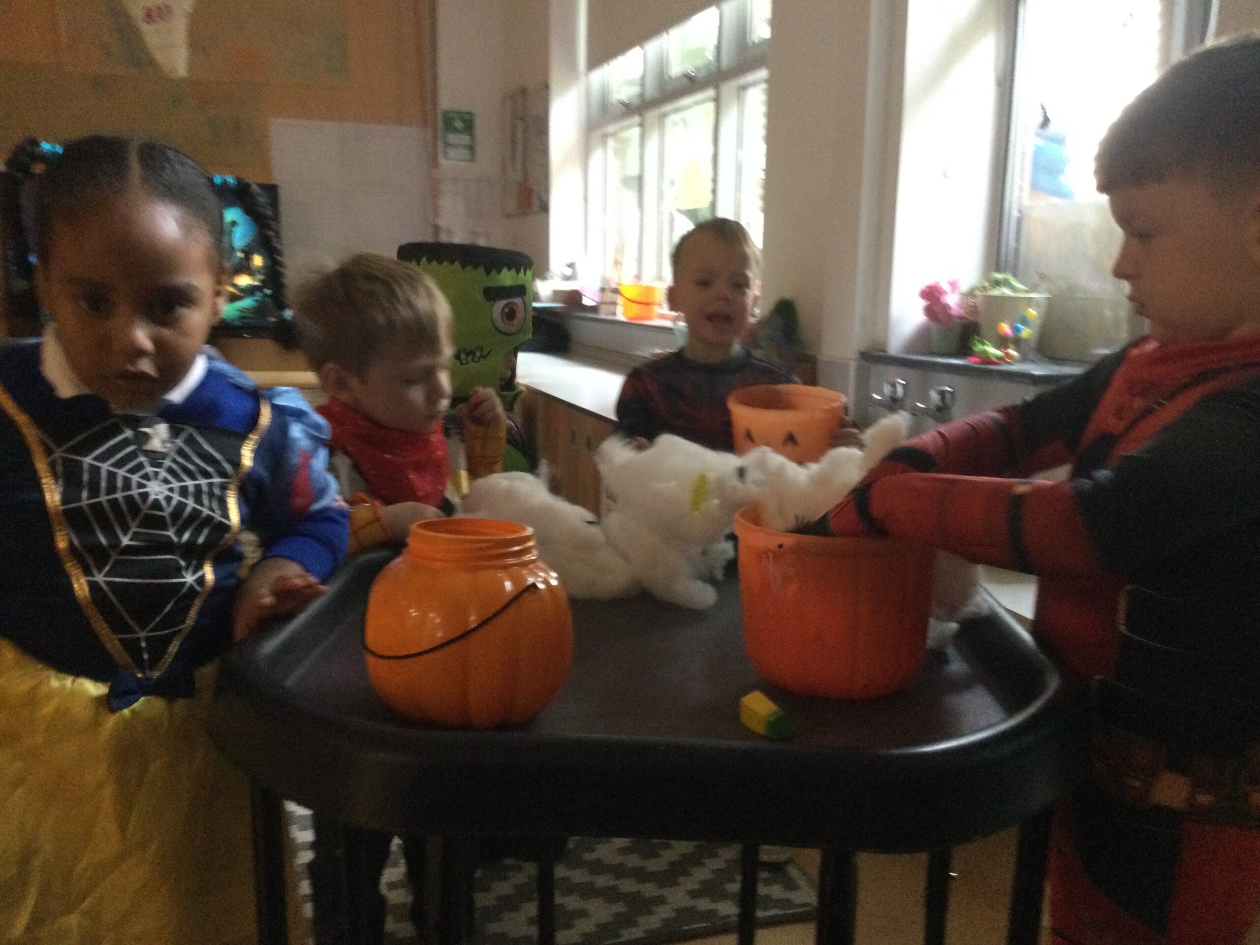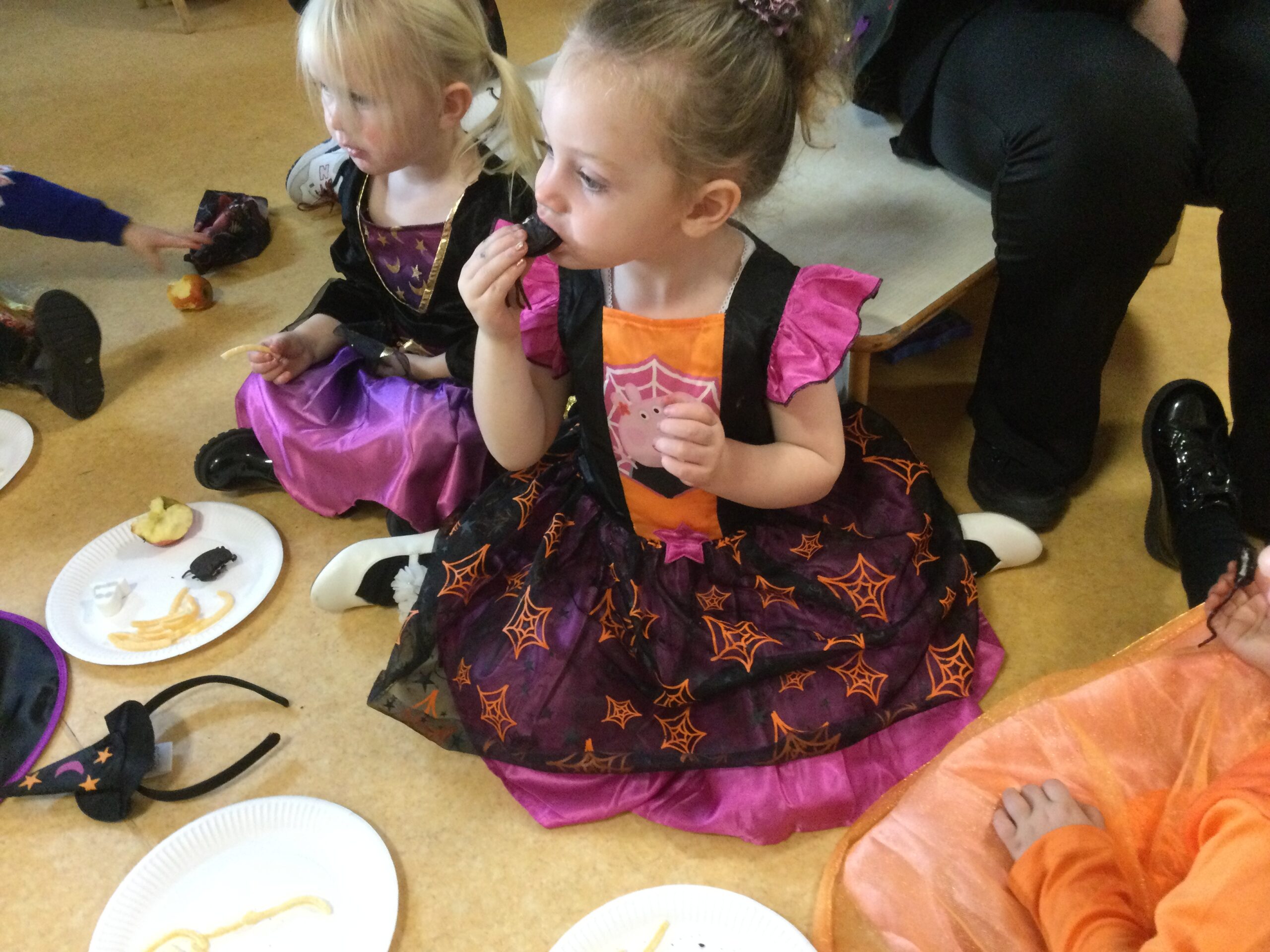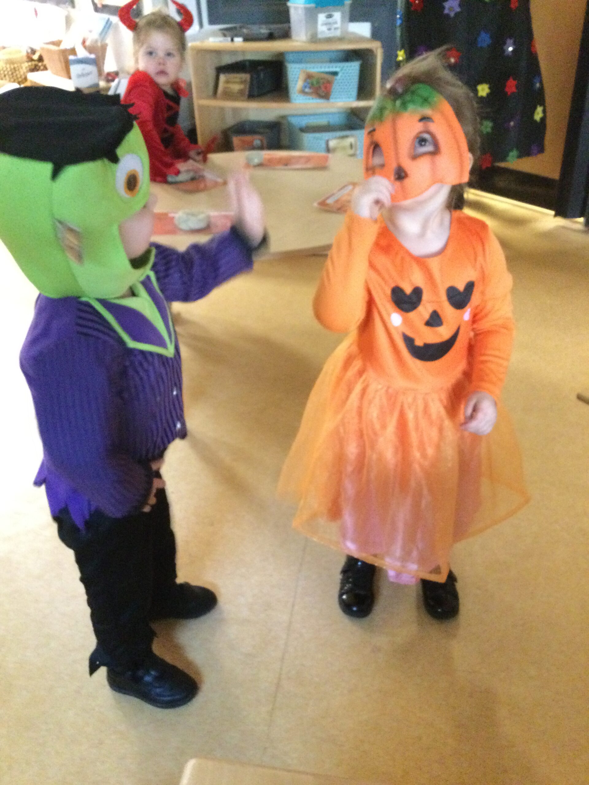 Nursery have loved the celebration of Halloween. We enjoyed listening to the story of ‘Room on the broom’. Nursery have also been making potions and casting spells in the role play area. We enjoyed dressing up in our Halloween costumes, making spider biscuits and leaning how to play fun games of pass the pumpkin and musical statues. We have made lots of fun crafts, got creative with the playdough to make spooky creatures and explored the textures of a pumpkin in our tuff tray area. The best part was all the dancing we did at our disco!!