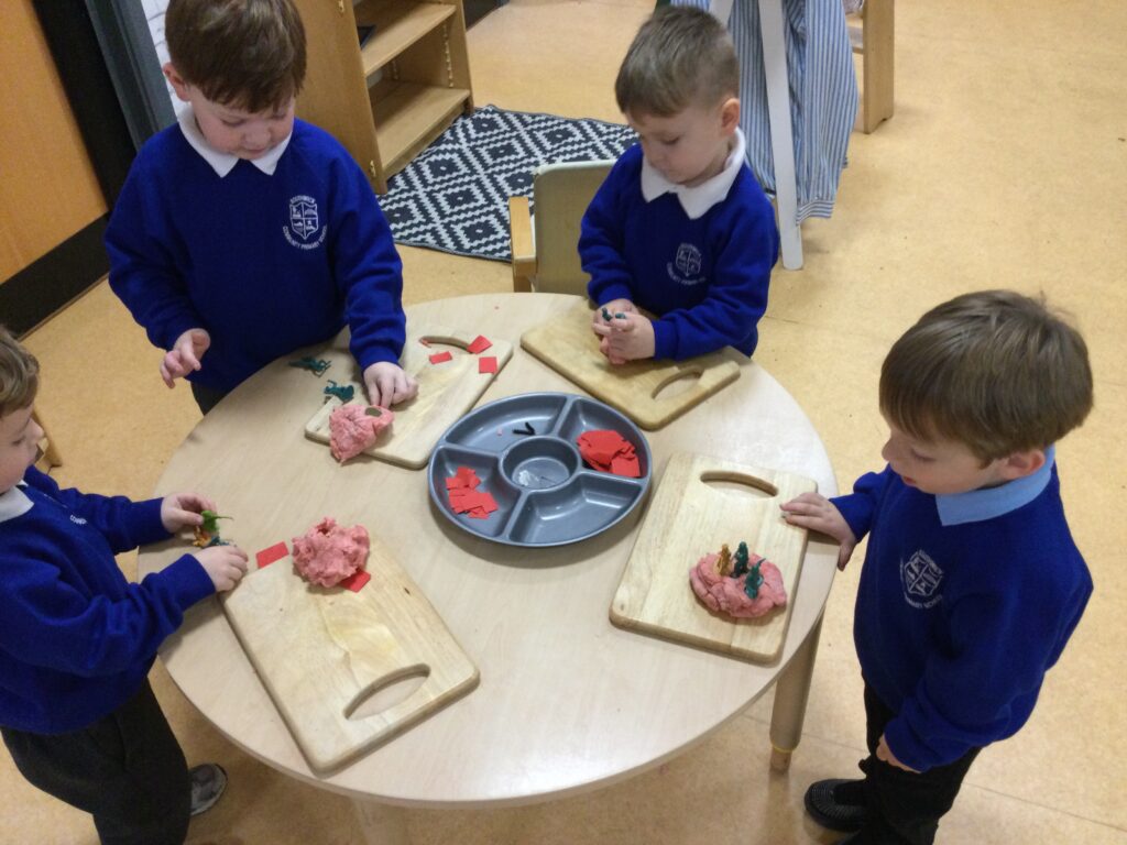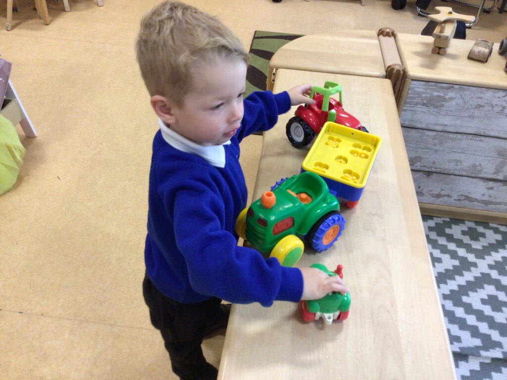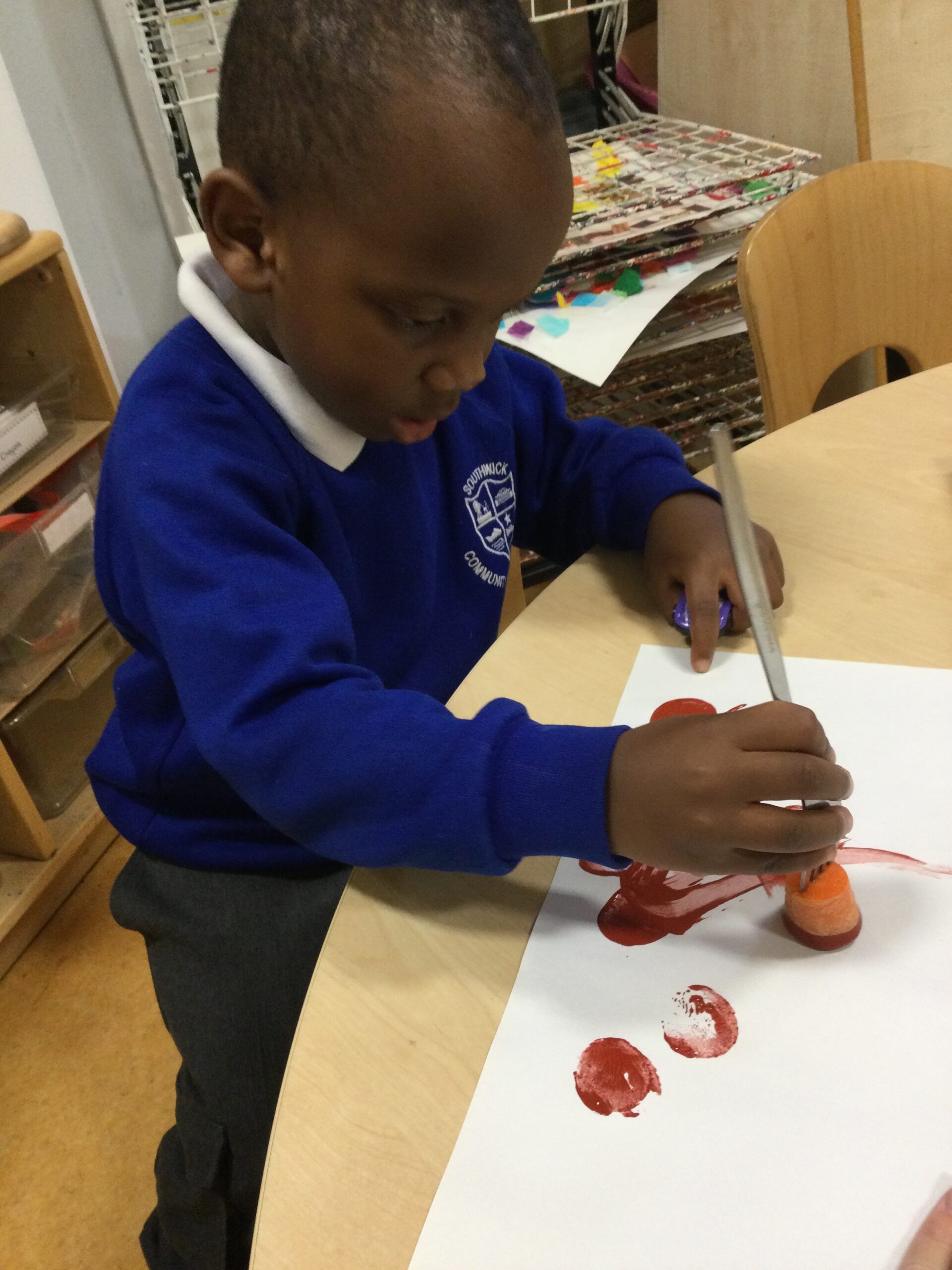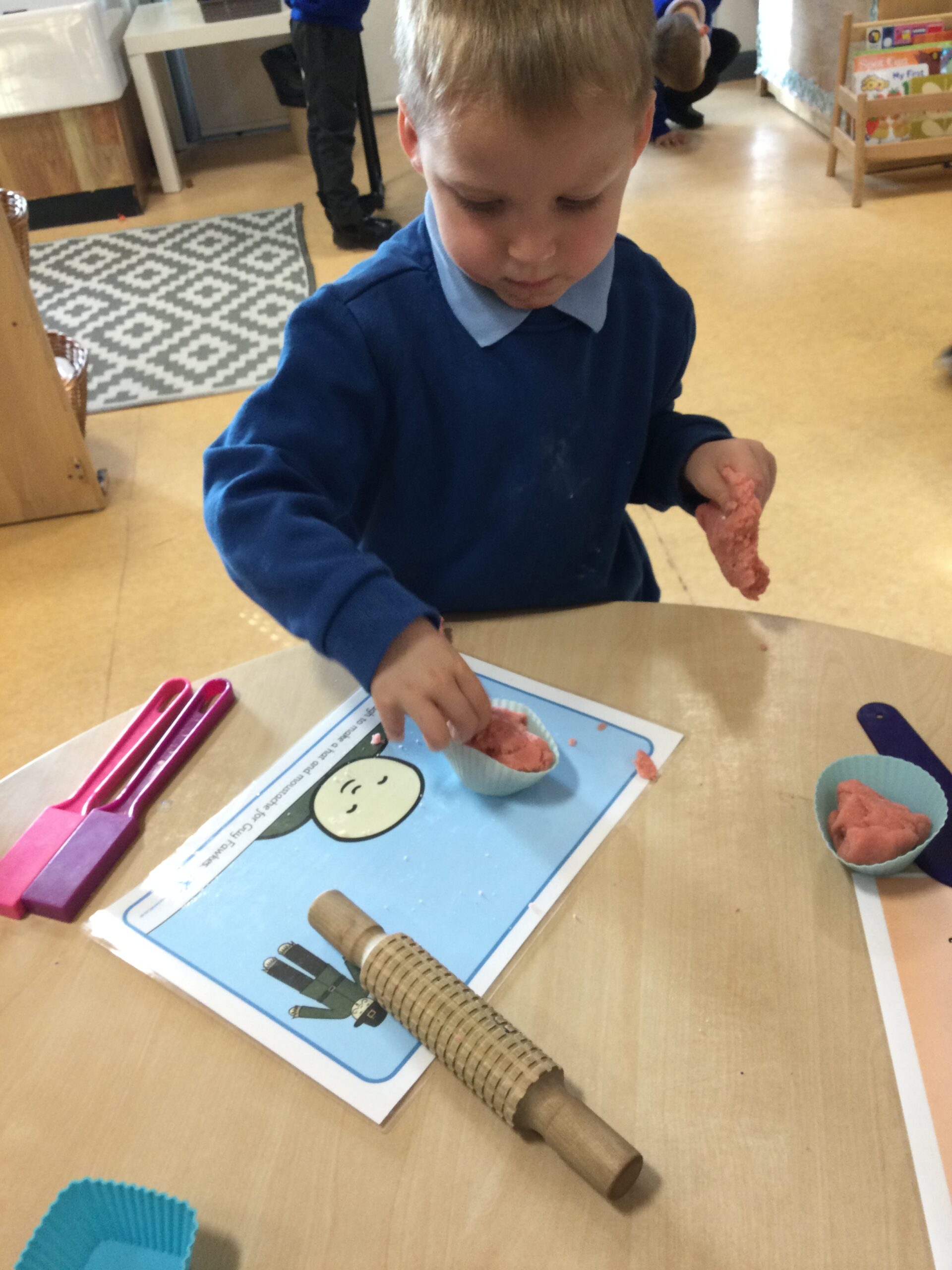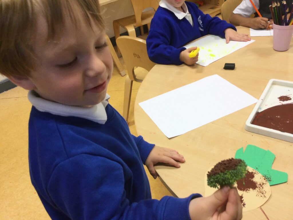 To celebrate Harvest the boys and girls in Nursery have been learning all about farms and what they produce for us to eat. We have become farmers digging and planting our own vegetables in the tough tray. We have loved learning new harvest songs and have had lots of fun dancing to the ‘Harvest Samba’. We have used vegetables in our creative area, producing some brilliant patterns using celery sticks and carrots. We’ve made vegetables in our play dough area, role played with the tractors and read lots of stories. We have enjoyed this celebration.