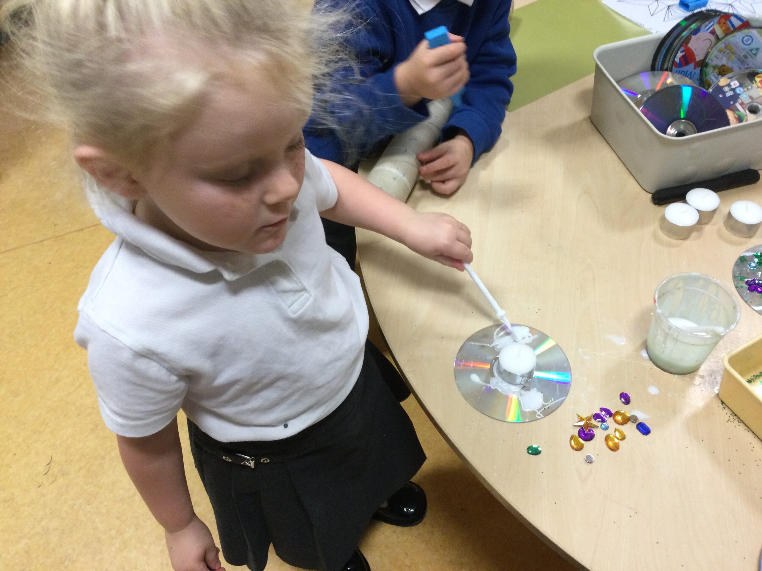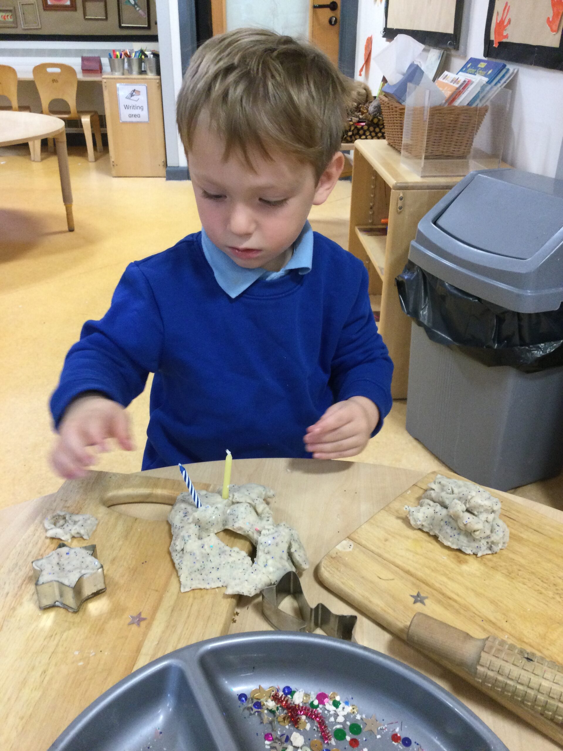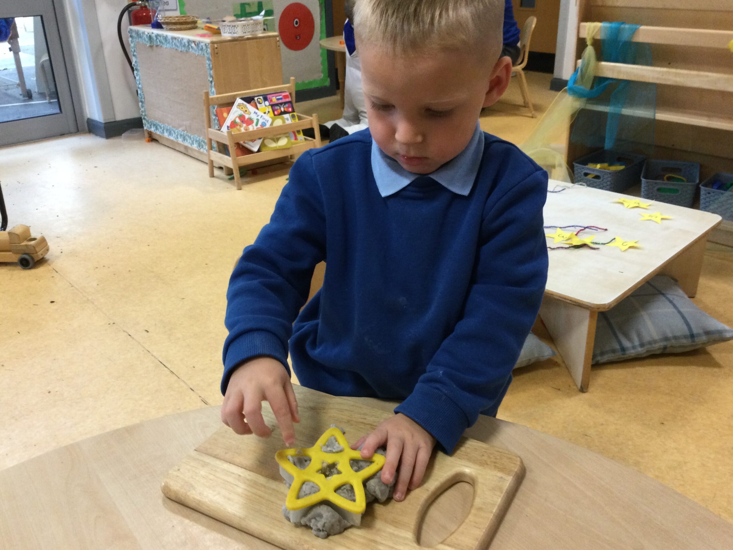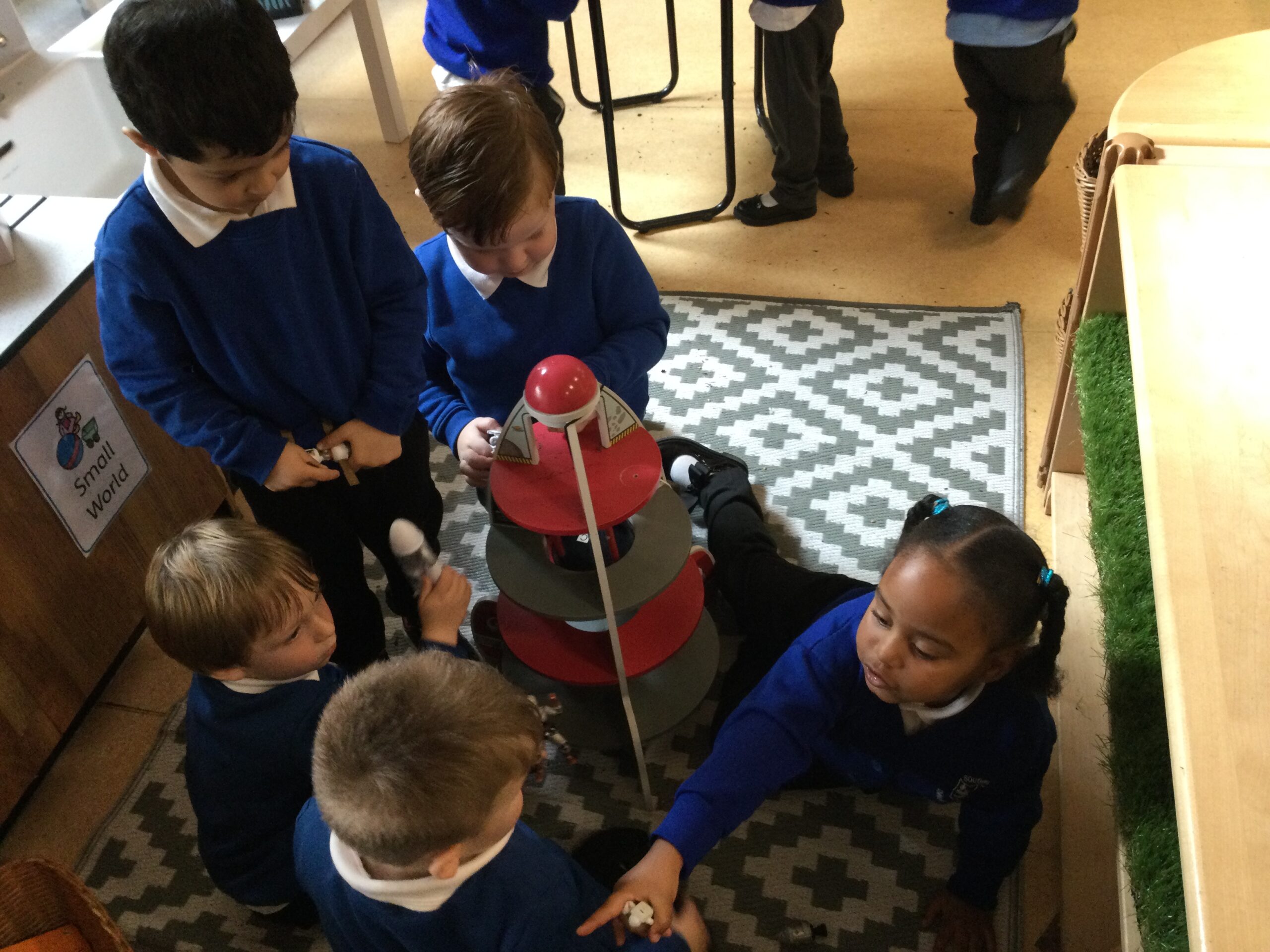 We have also enjoyed building rockets in the construction area, exploring the spaced themes tuff tray, making stars and planets in the playdough area.