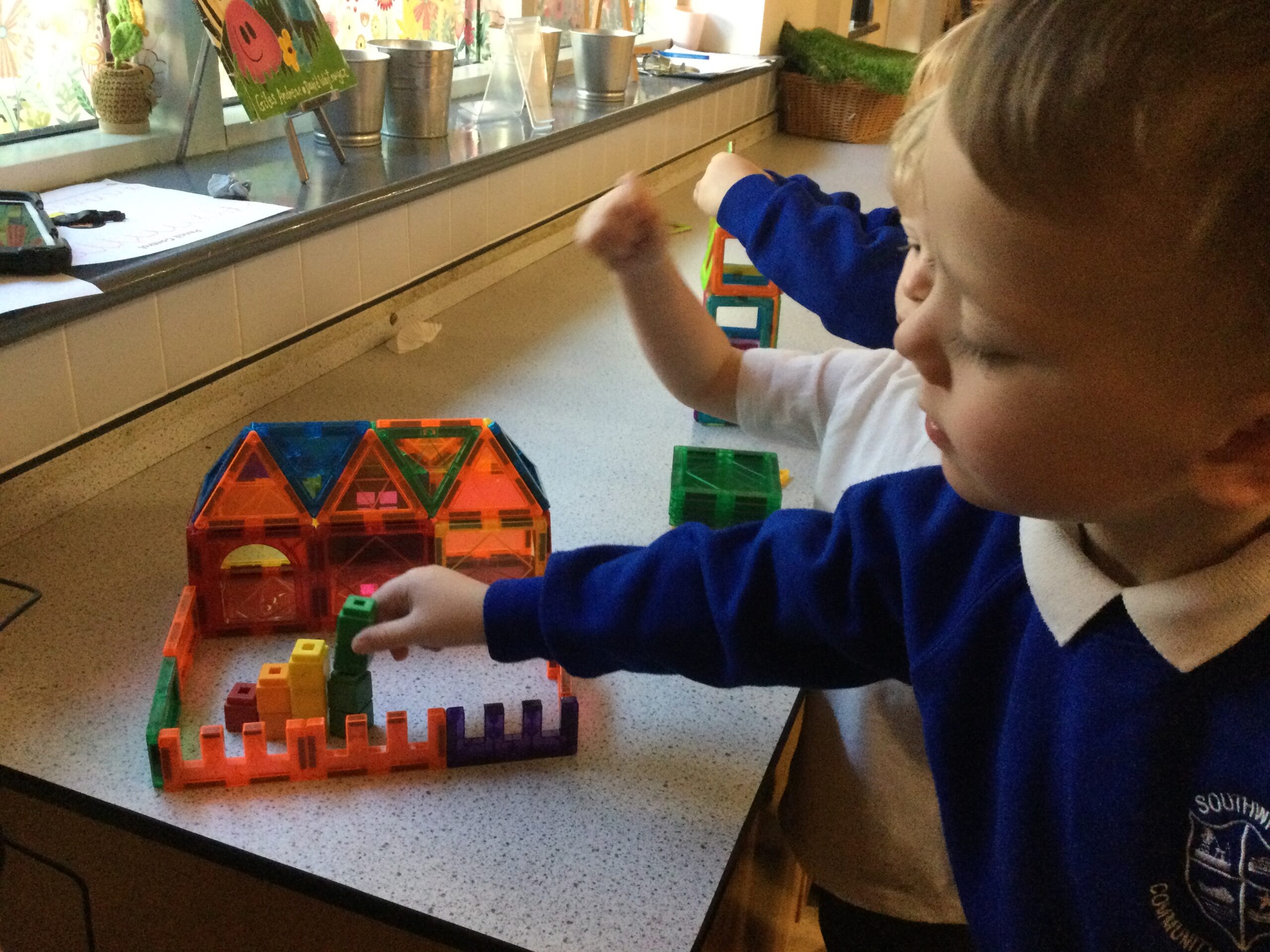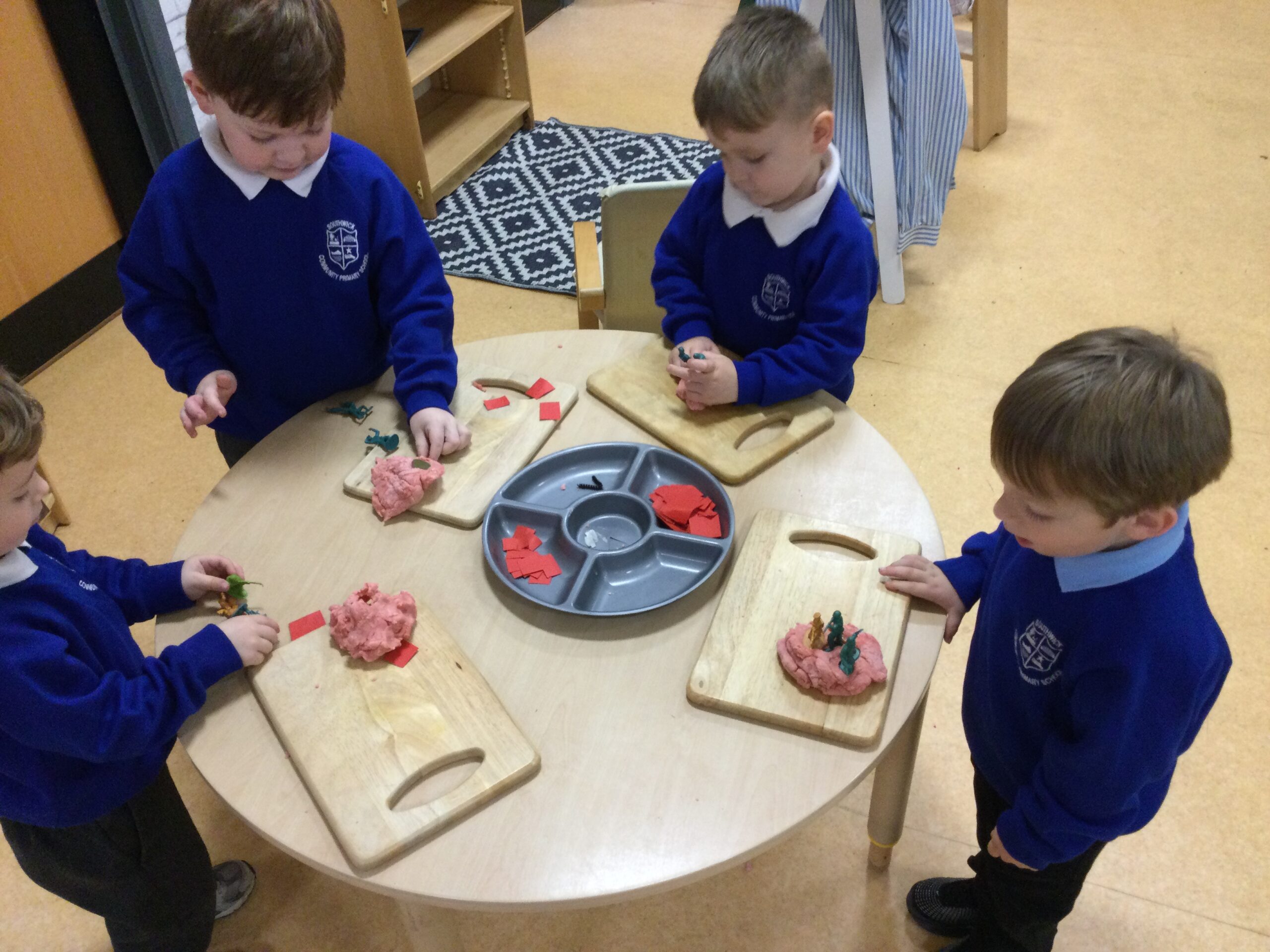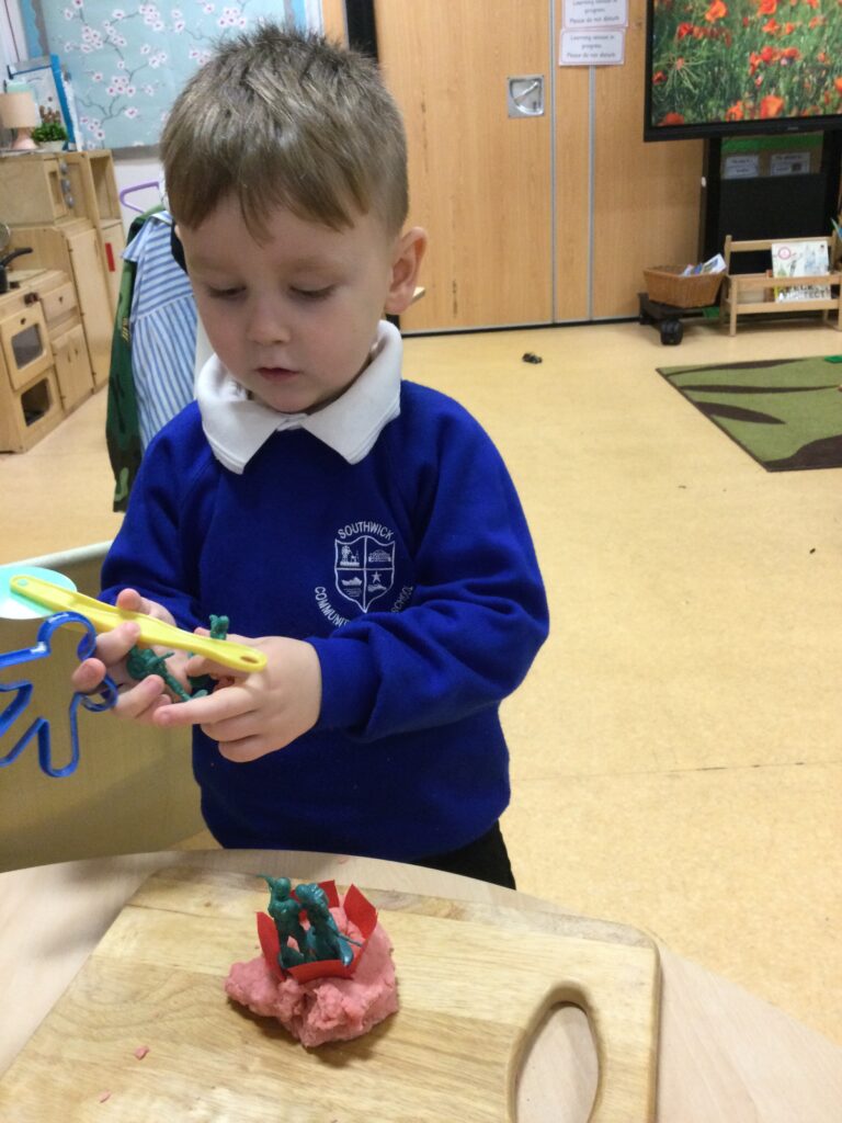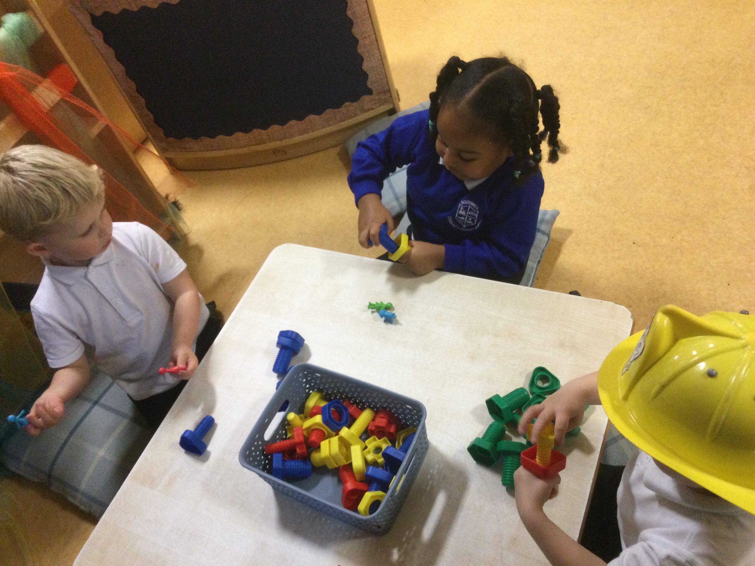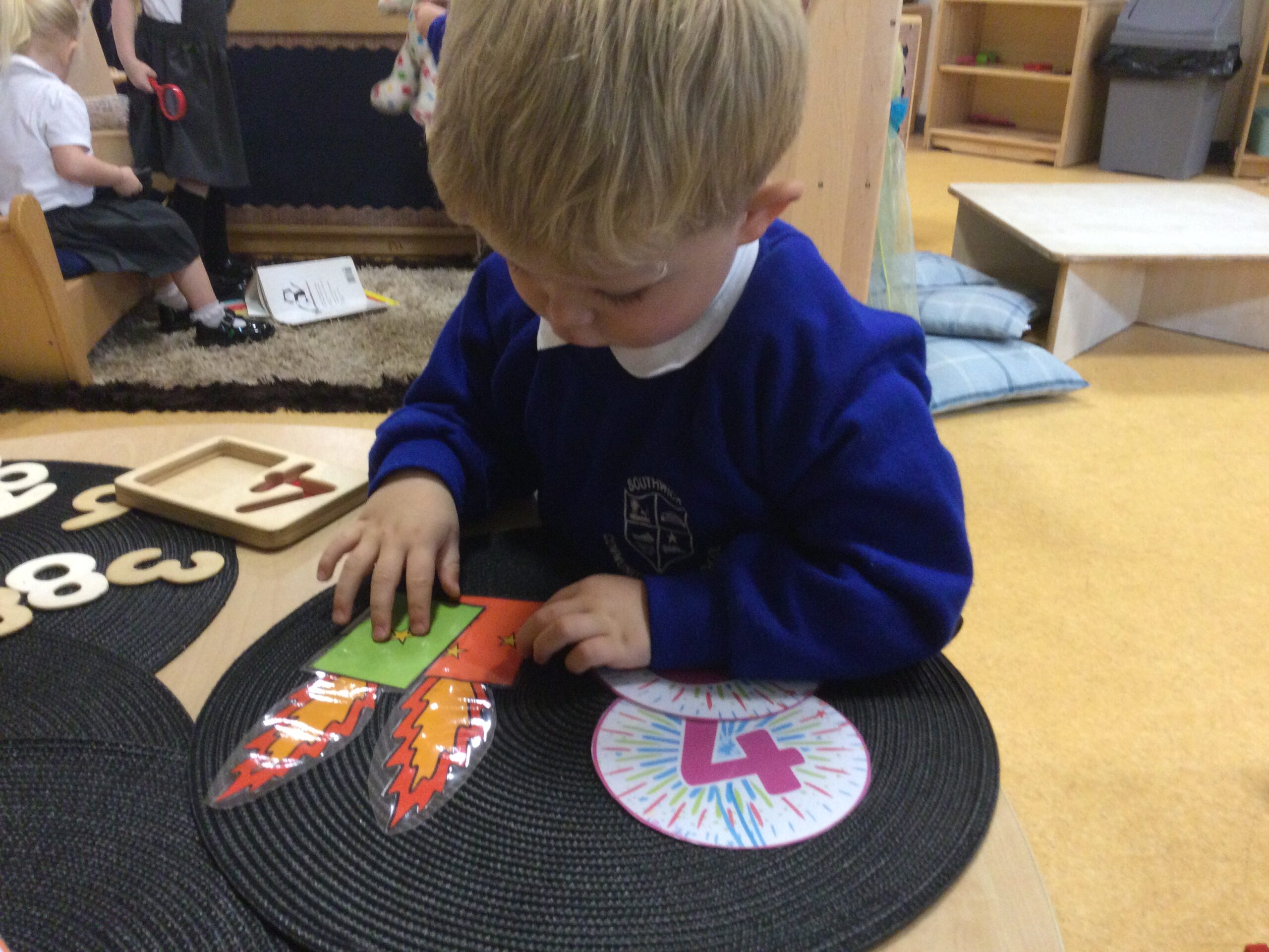 We have also enjoyed building rockets in the construction area, exploring the spaced themes tuff tray, making stars and planets in the playdough area.