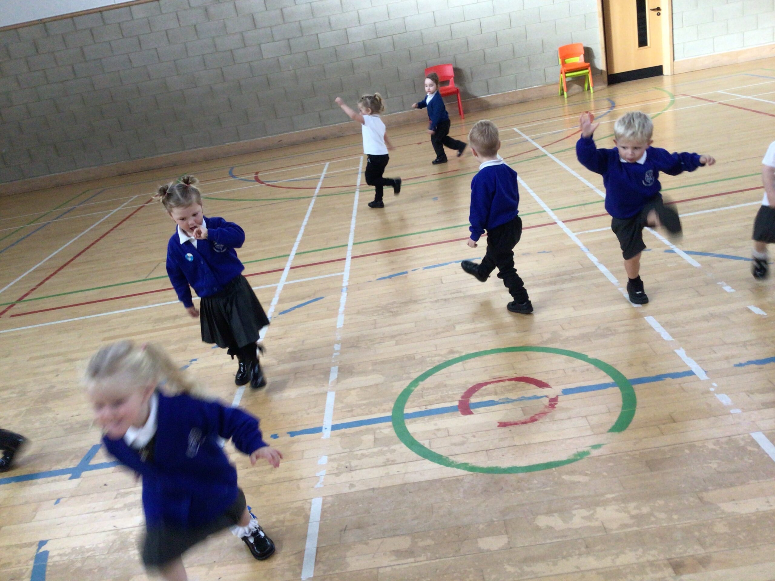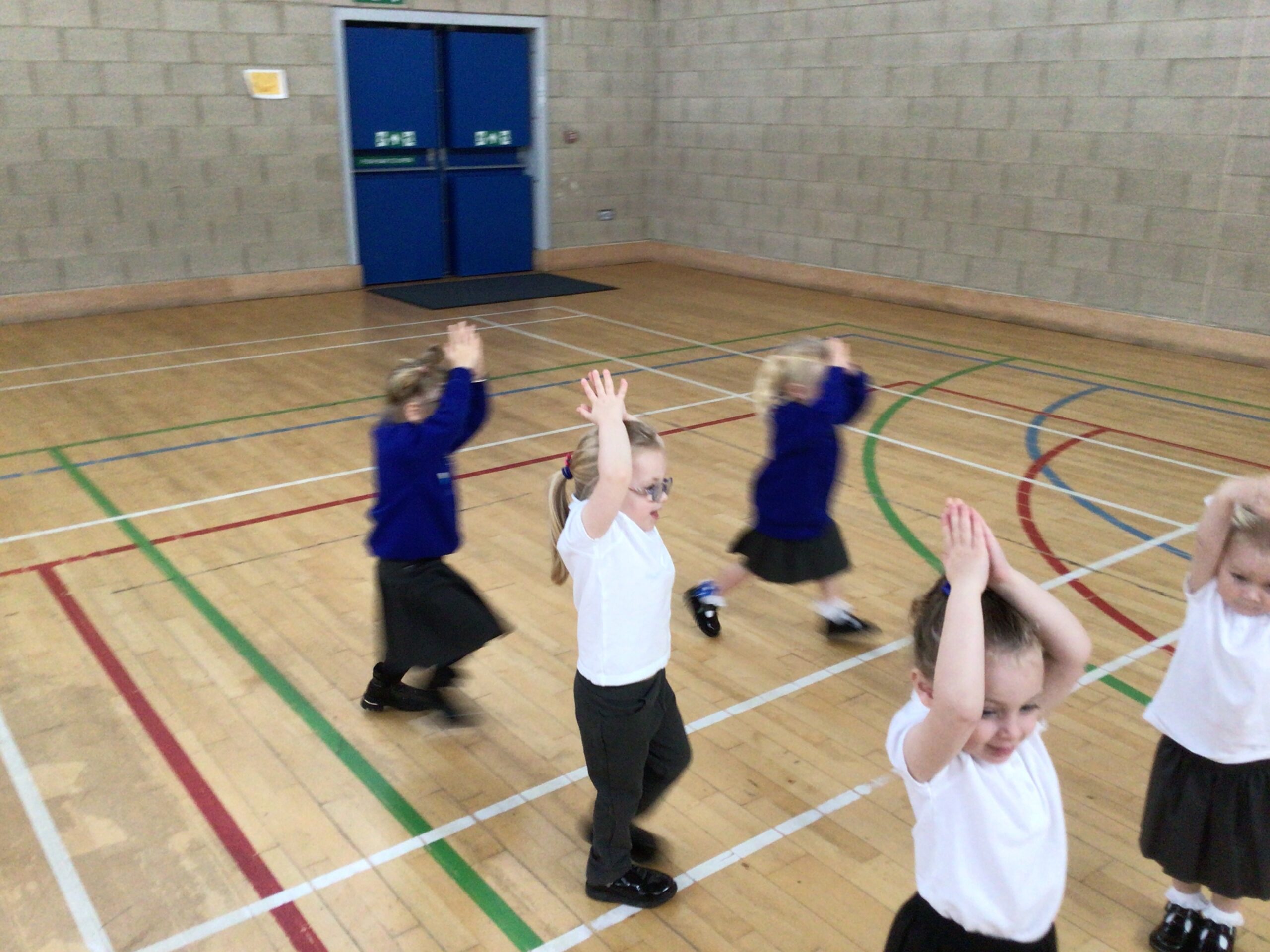 In PE we became astronauts, we practiced our moon walking and had so much fun doing this.