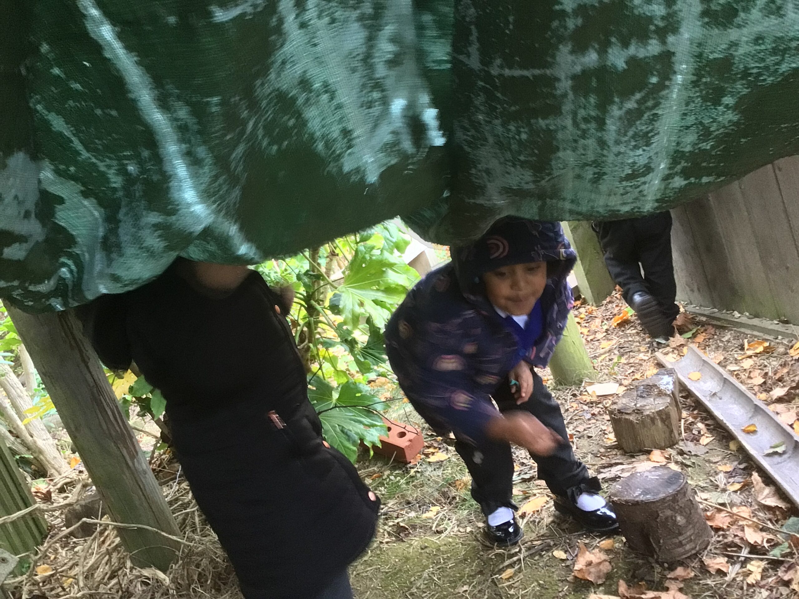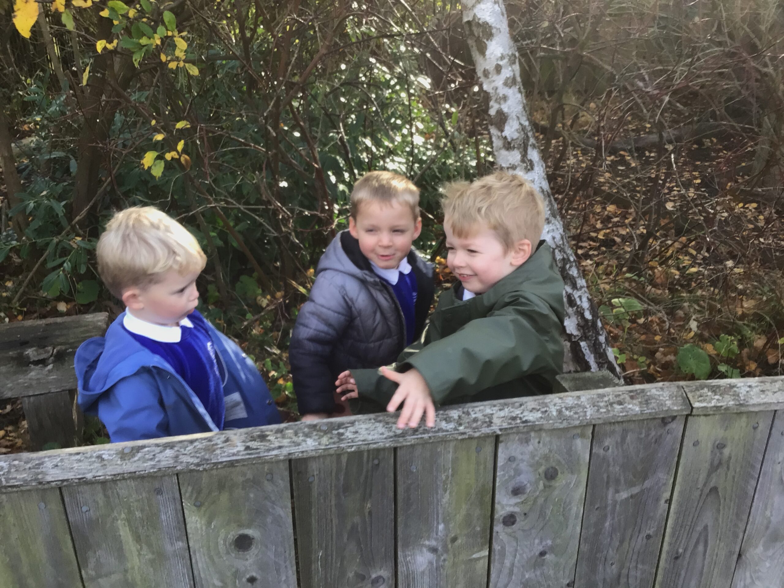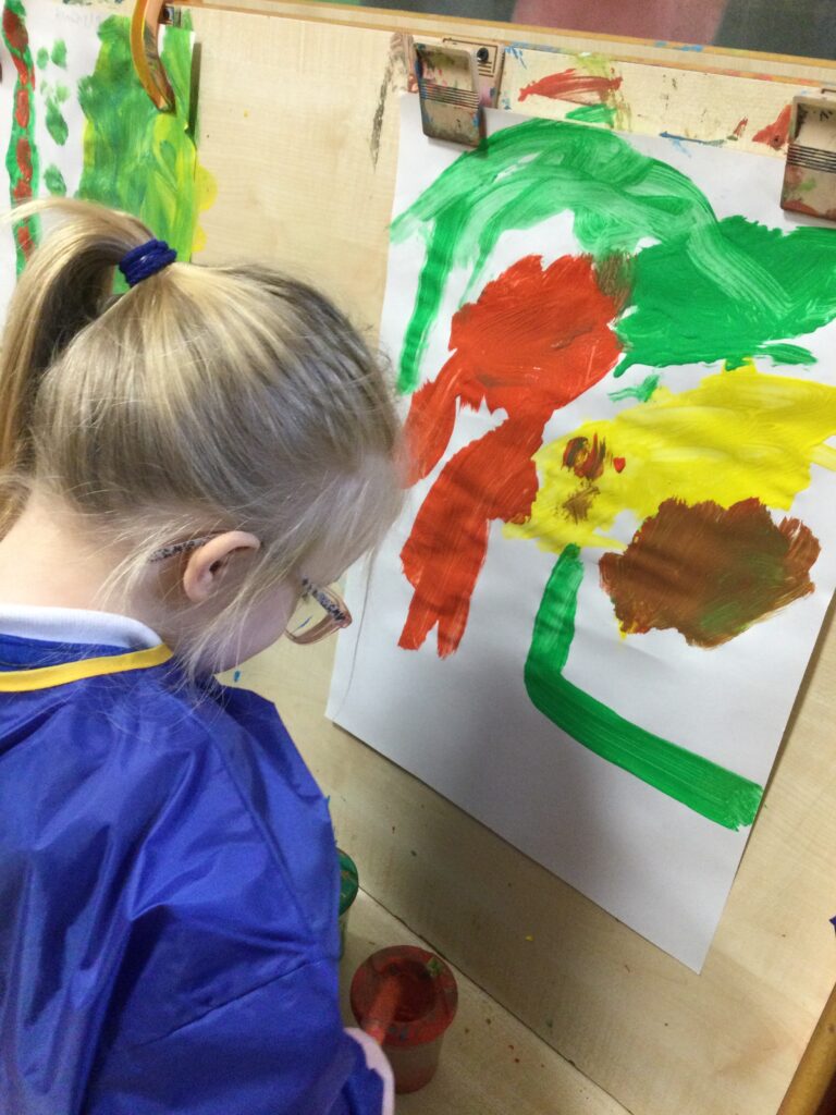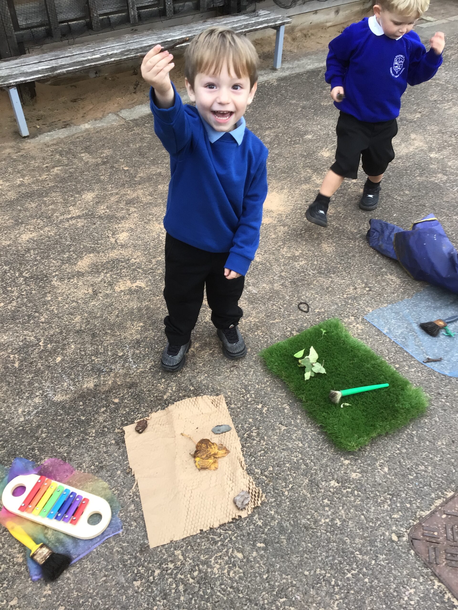 Nursery love learning outdoors this term, we have especially loved investigating the change of season and seeing all of the signs of Autumn in our garden. We spend time in the forest playing amongst the trees. We climb on climbing frame to really strengthen our arm and leg muscles and help our balance and resilience. We perform shows on our stage, dressing up and playing the musical instruments, we love to invite our grownups in school to watch. Our sand pit is always busy as we love to dig and make sandcastles. We get so messing in the mud kitchen making mud pies, hot chocolate or potions. This week was outdoor learning day so we spent all of our time outside, Mrs Pattison challenged us to a colour match game in which we had to find items in the garden that matched the colours she had given us. We were very confident with green and brown and we found lots of leaves and flowers to match, we made sure we looked closely and talked about what shade we could see. Outside time is most definitely our favourite part of the day.