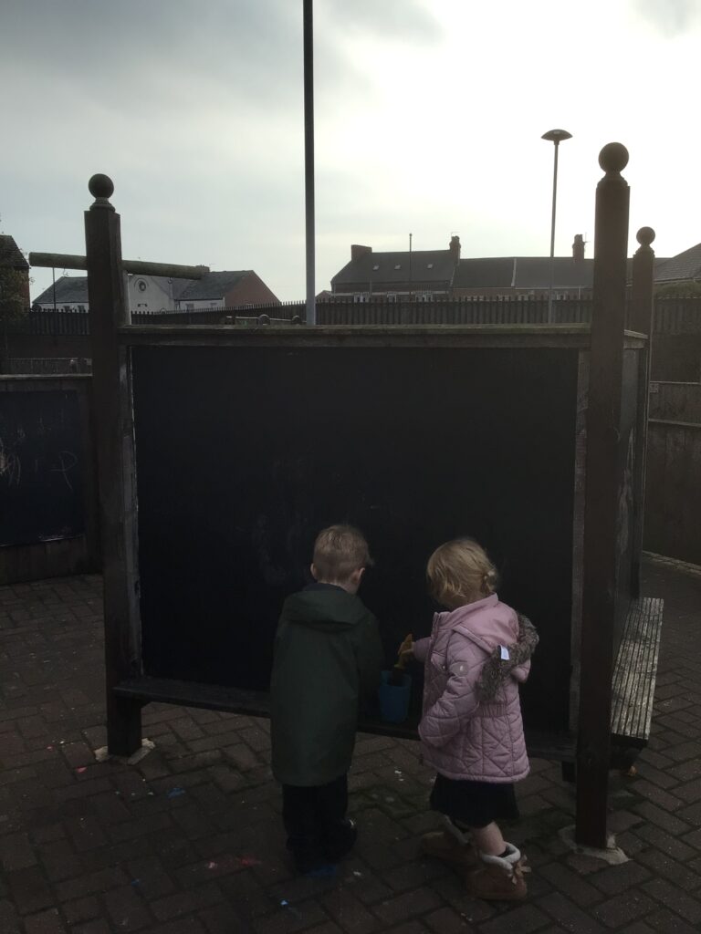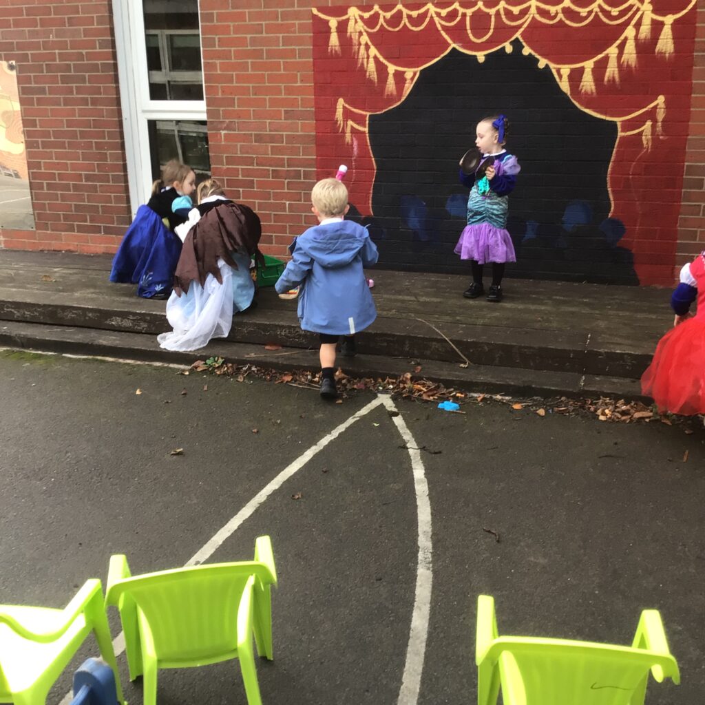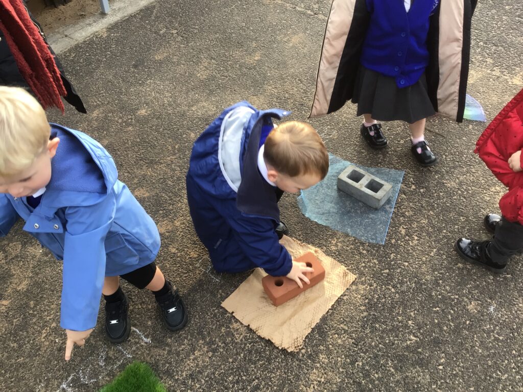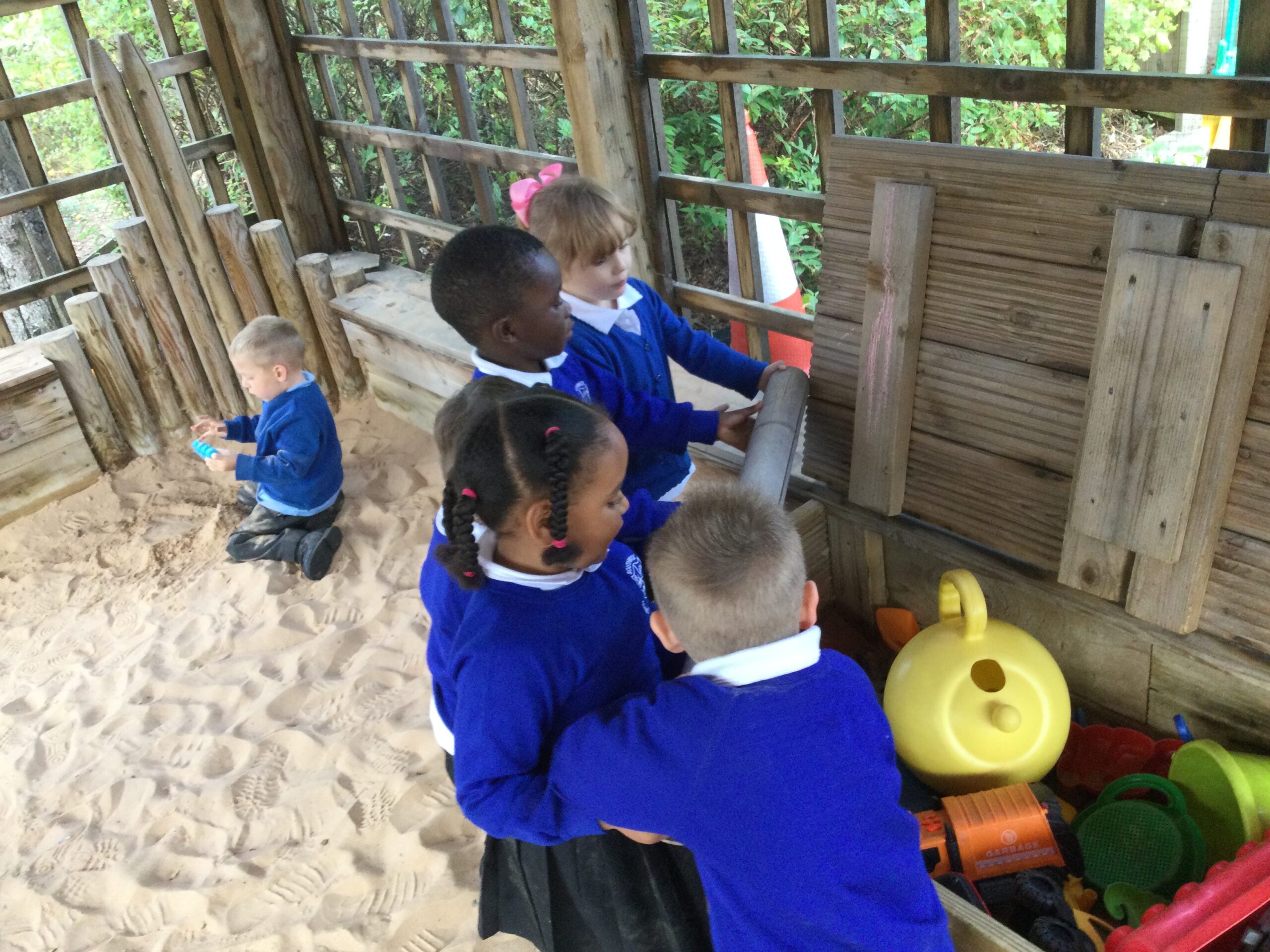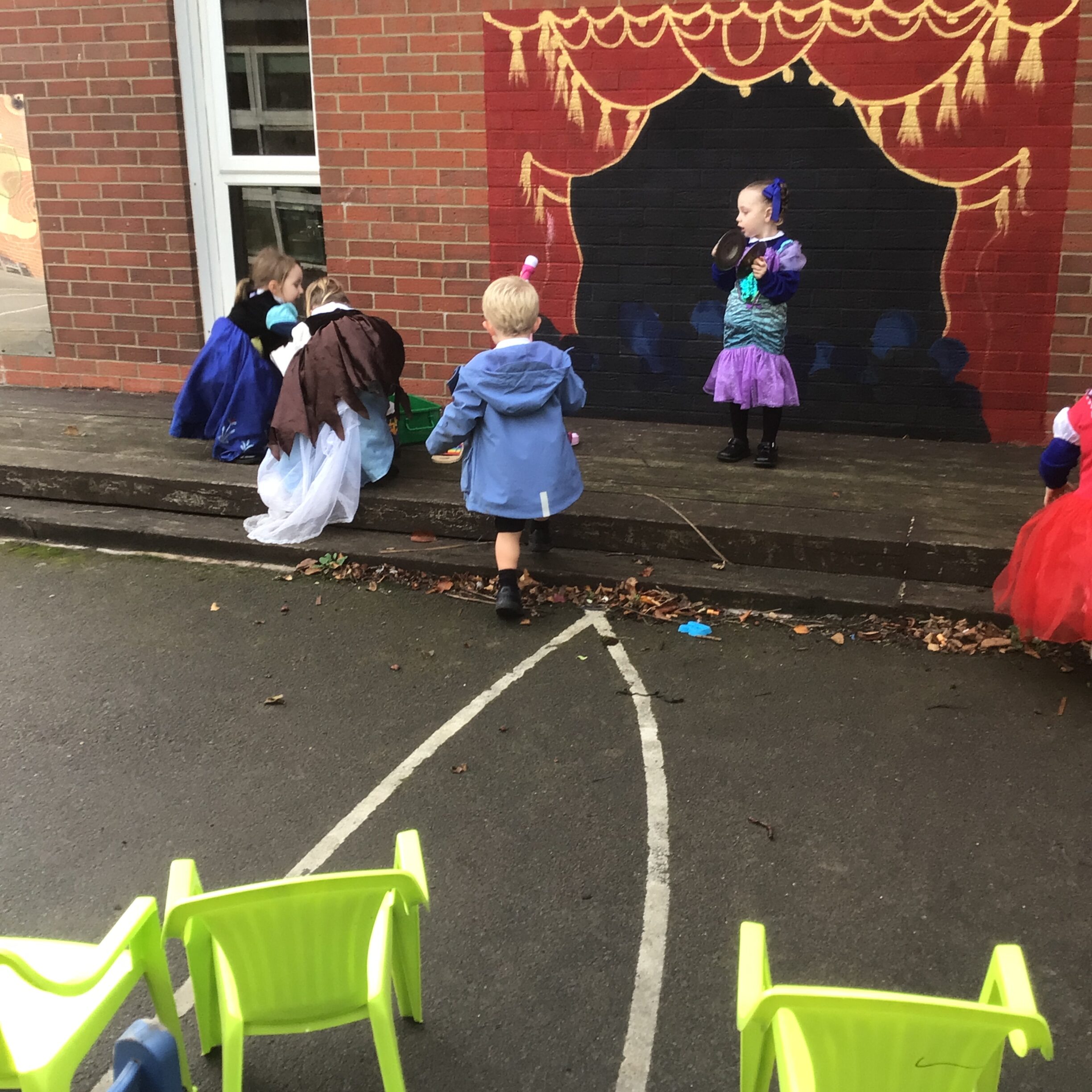Nursery love learning outdoors this term, we have especially loved investigating the change of season and seeing all of the signs of Autumn in our garden. We spend time in the forest playing amongst the trees. We climb on climbing frame to really strengthen our arm and leg muscles and help our balance and resilience. We perform shows on our stage, dressing up and playing the musical instruments, we love to invite our grownups in school to watch. Our sand pit is always busy as we love to dig and make sandcastles. We get so messing in the mud kitchen making mud pies, hot chocolate or potions. This week was outdoor learning day so we spent all of our time outside, Mrs Pattison challenged us to a colour match game in which we had to find items in the garden that matched the colours she had given us. We were very confident with green and brown and we found lots of leaves and flowers to match, we made sure we looked closely and talked about what shade we could see. Outside time is most definitely our favourite part of the day.