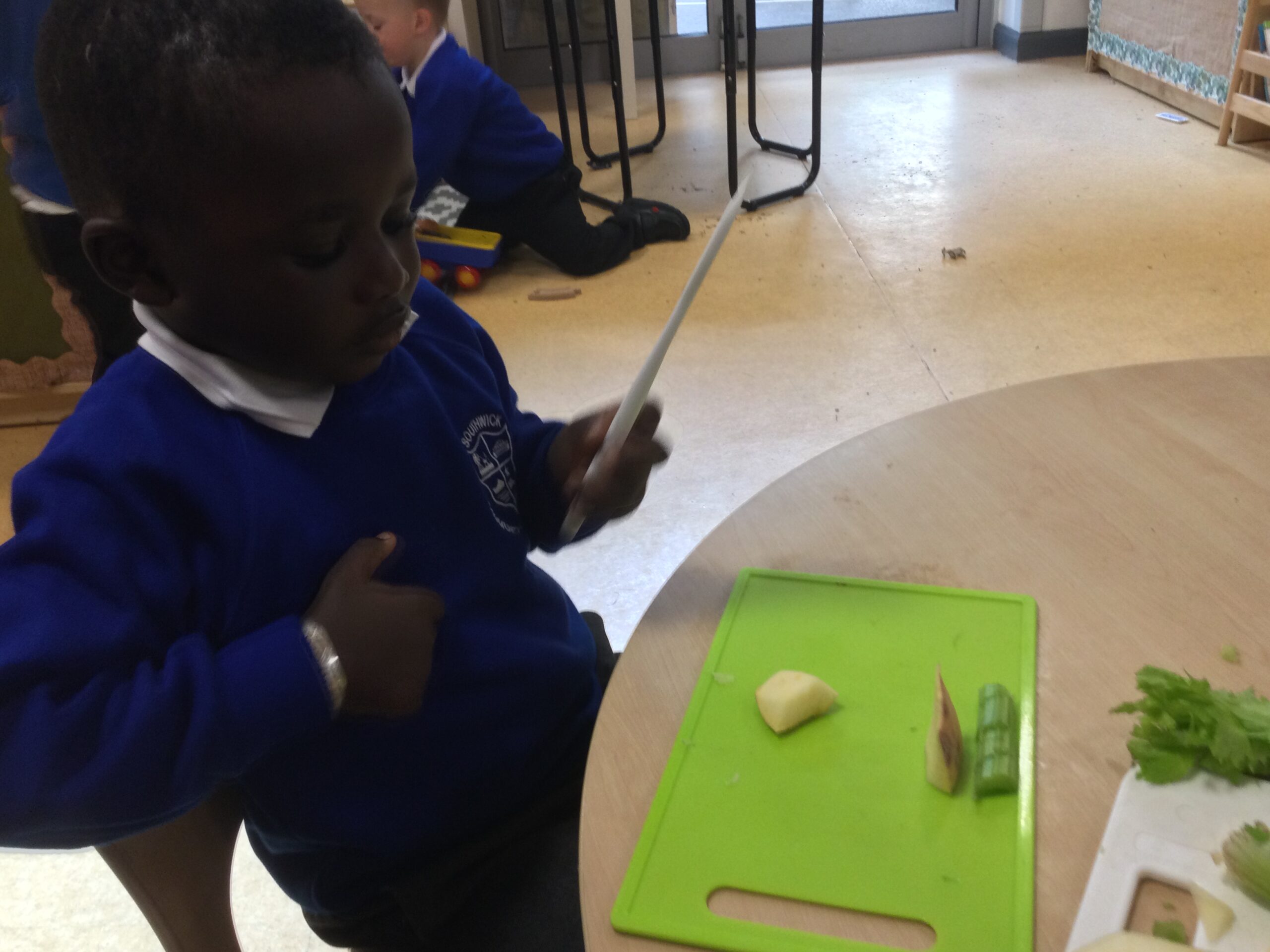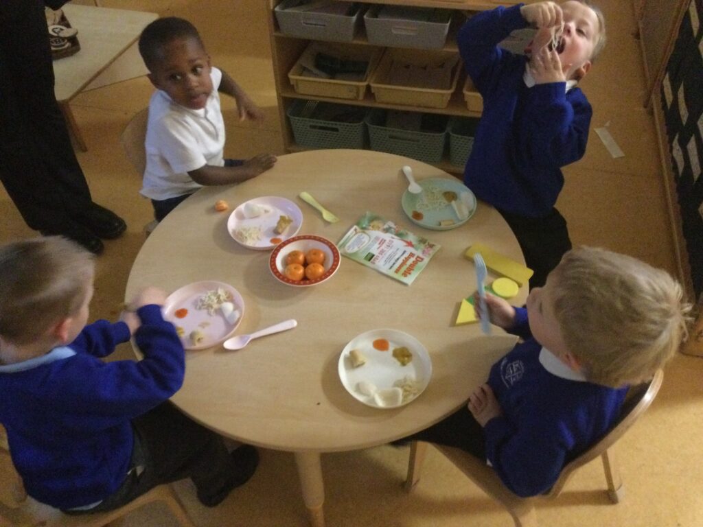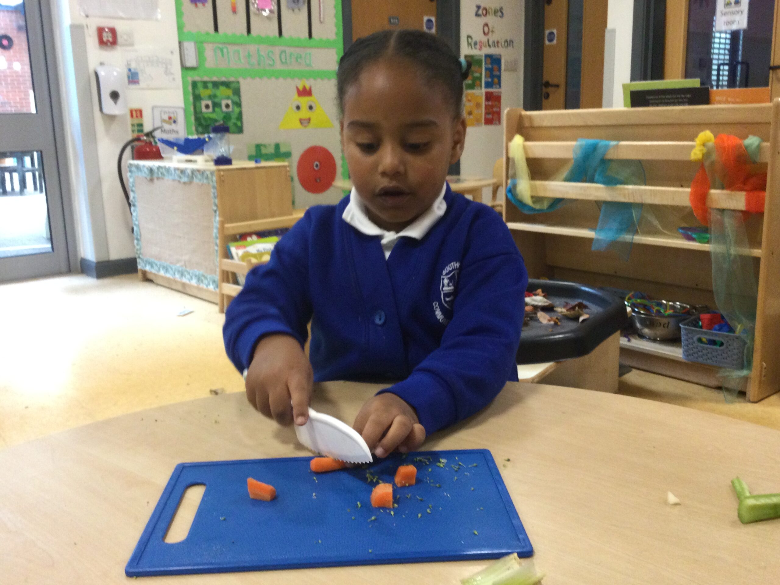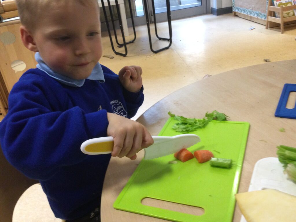 We have been reading ‘The Enormous Turnip’ learning all about growing crops and how working together as a community benefits us all. We acted out the story, used our senses to investigate lots of vegetables as well as cutting and tasting them. We loved the turnip but did not like the celery as much!