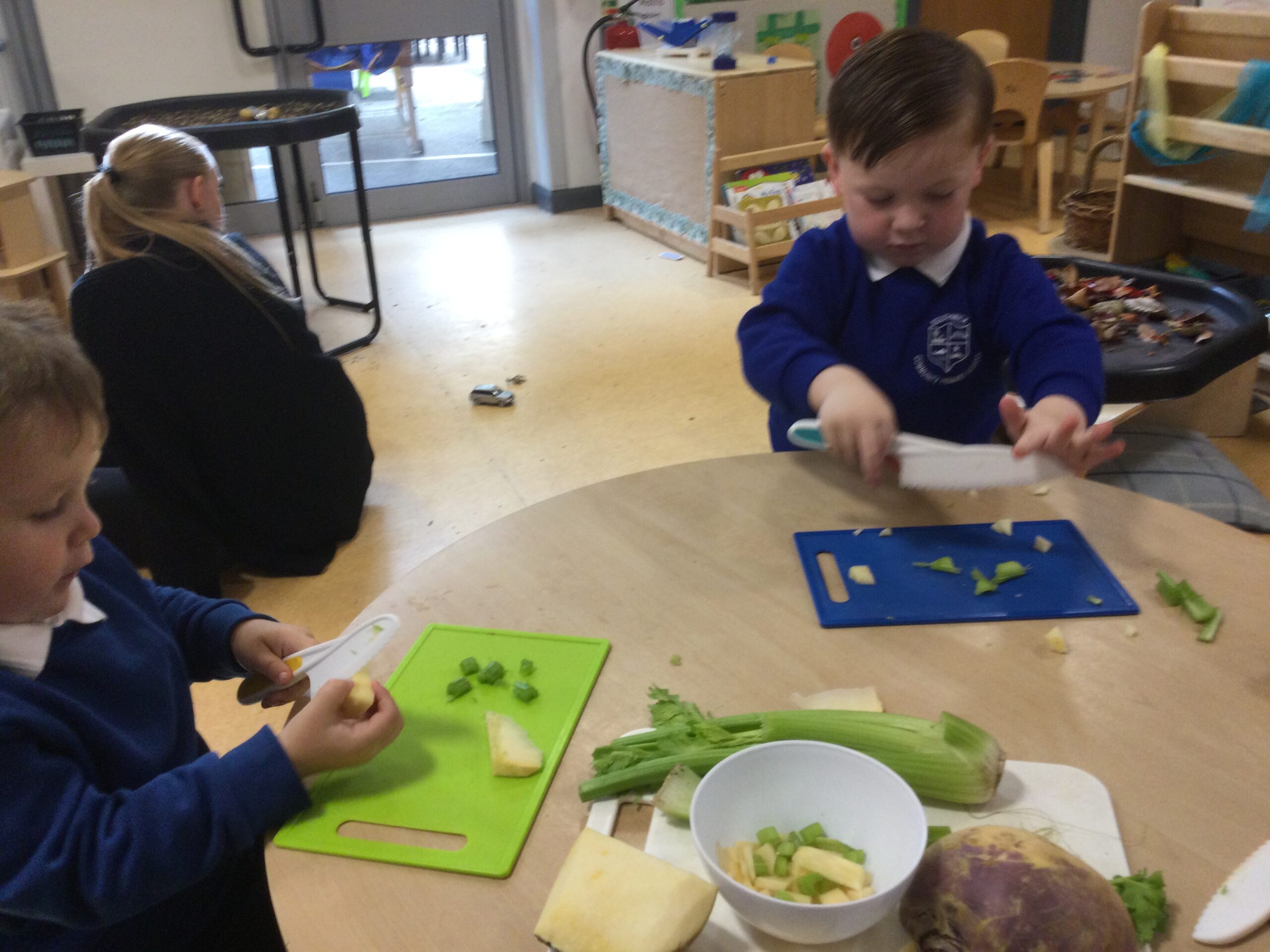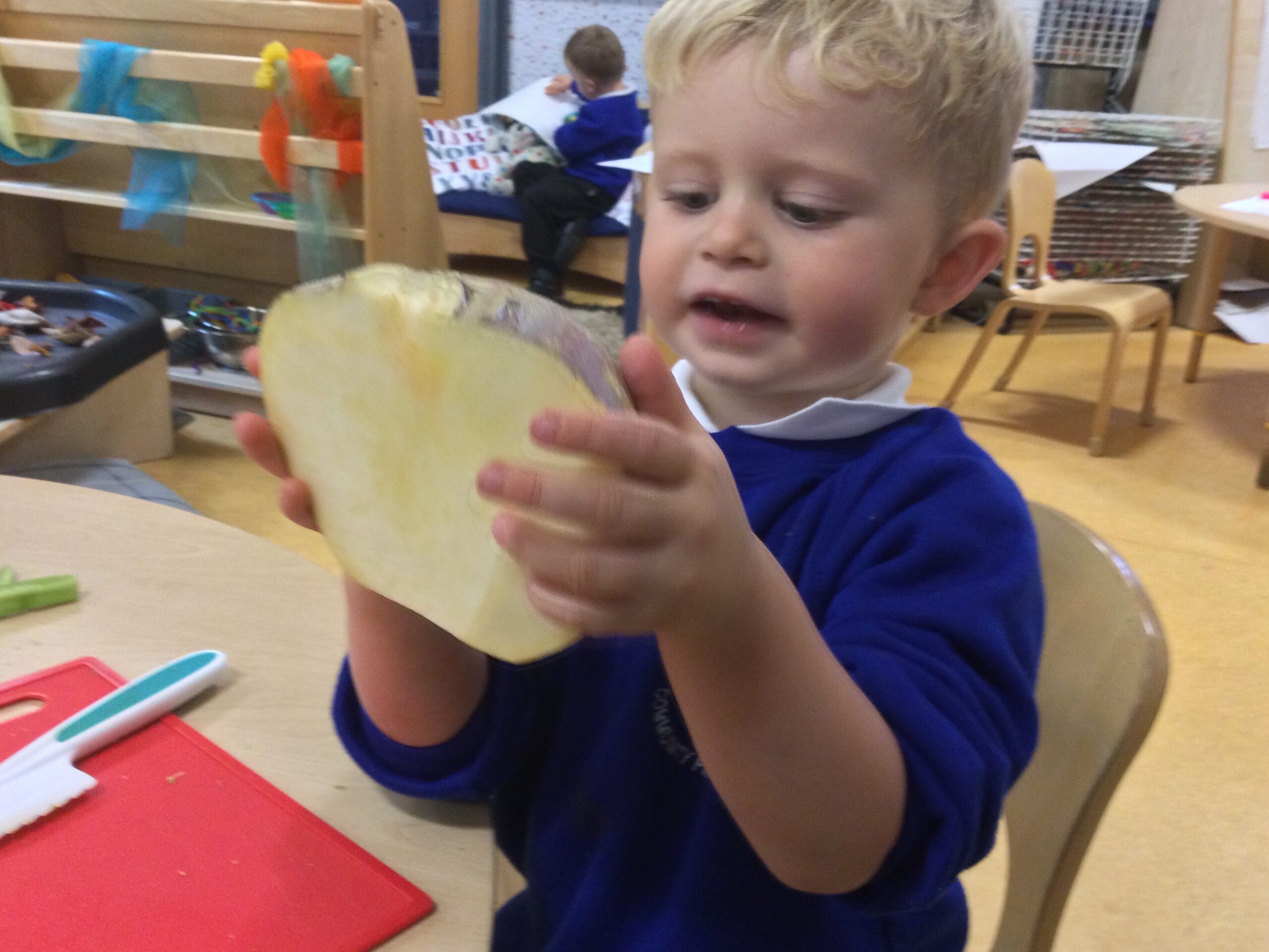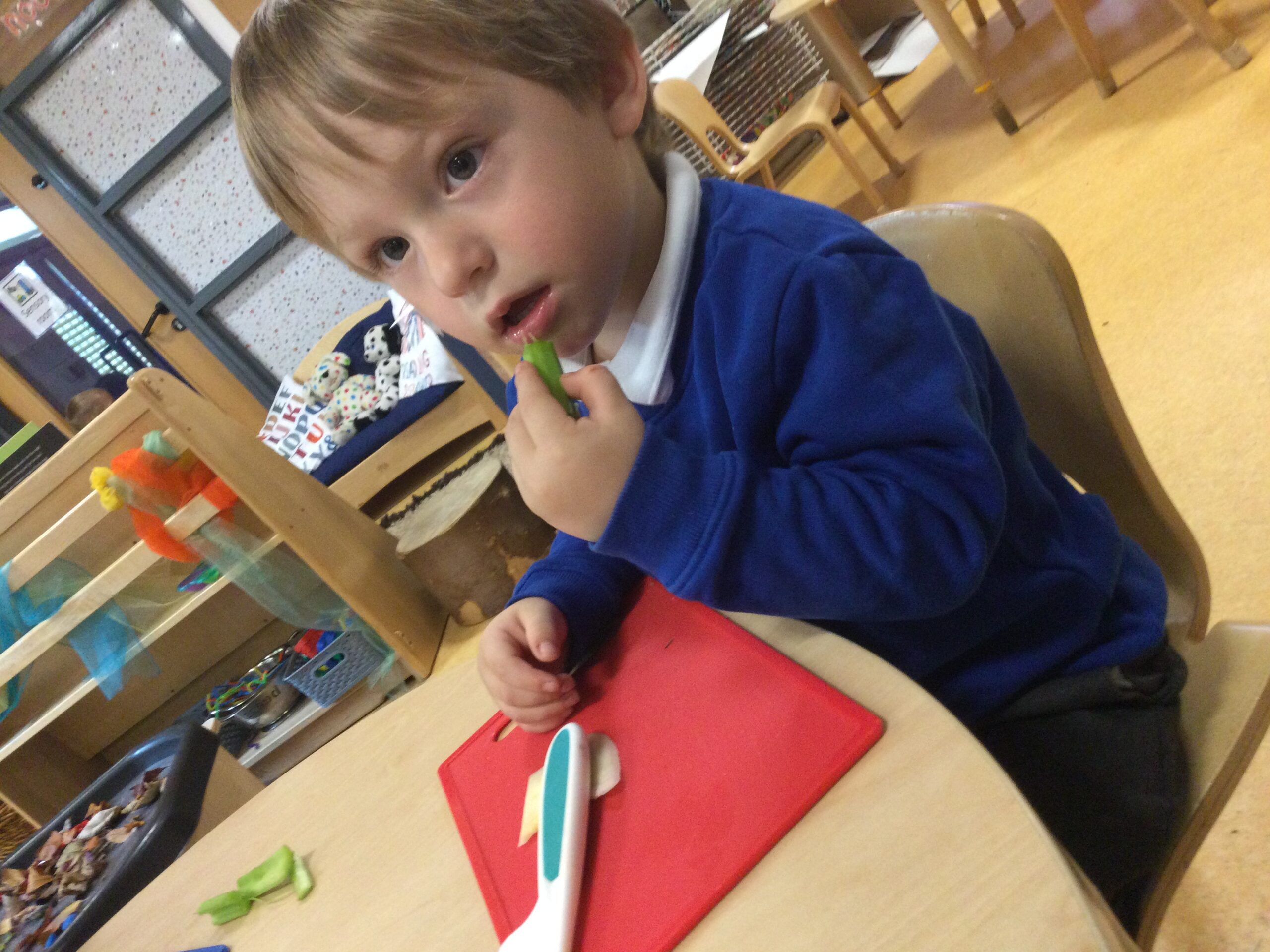 We have been reading ‘The Enormous Turnip’ learning all about growing crops and how working together as a community benefits us all. We acted out the story, used our senses to investigate lots of vegetables as well as cutting and tasting them. We loved the turnip but did not like the celery as much!