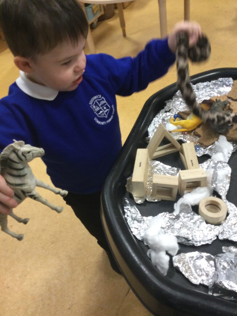 This week at nursery we have been on an exciting jungle adventure inspired by the story Walking Through the Jungle. The children enjoyed cutting and creating jungle leaves, developing their fine motor skills and creativity. We explored the differences between cold and warm countries, comparing the animals that live there and talking about where they might feel most comfortable. In PE, the children had lots of fun moving their bodies like jungle animals, crawling, jumping and stretching in different ways. We also became little chefs, making tasty jungle snacks using tropical fruits, encouraging healthy choices and sensory exploration. It’s been a busy, fun-filled week full of learning and imagination!
