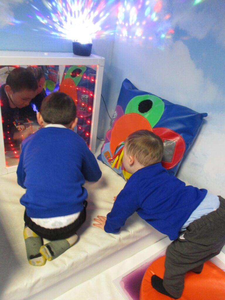 Today some of the children went to visit the Rainbow Sensory Space, they had lots of fun during the session exploring all of the different areas and equipment.