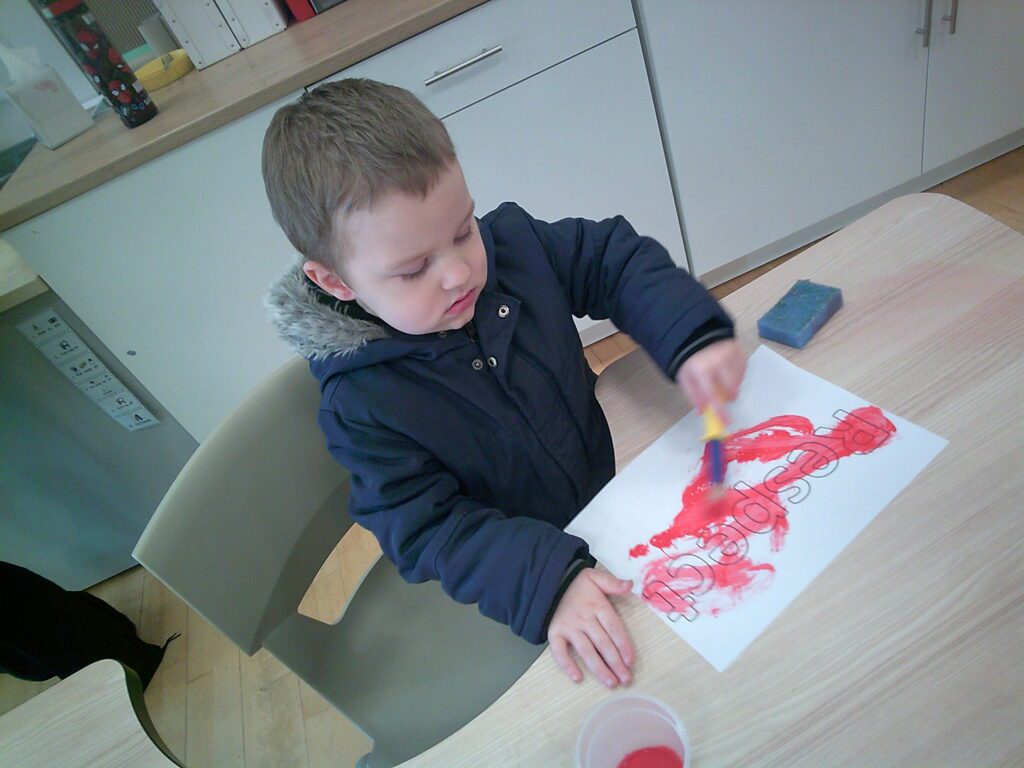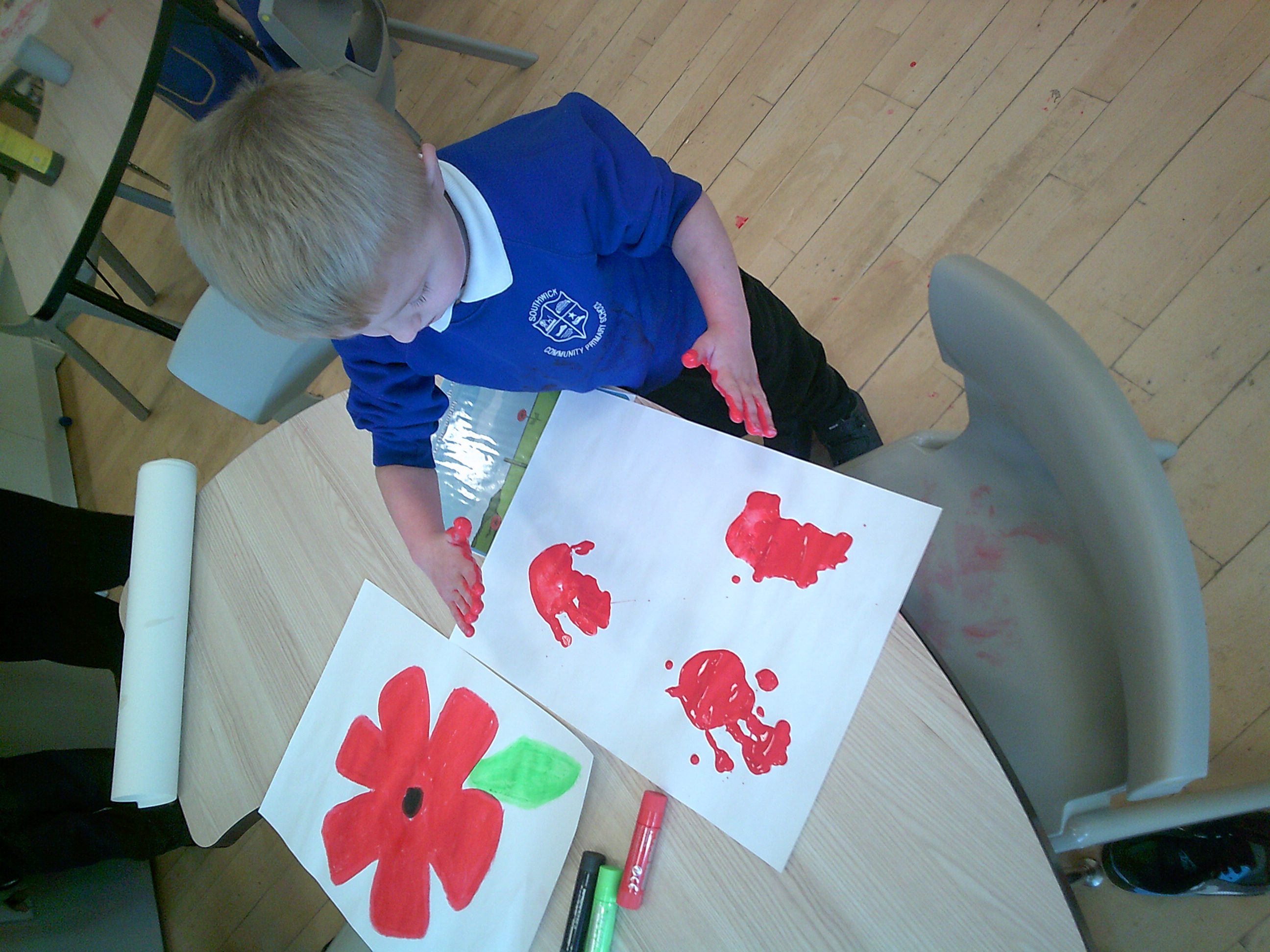 As part of our Remembrance topic, we used paint sticks to replicate a poppy field. We each took turns to add a poppy to the field. We will display our finished field in the classroom to remember the soldiers who fought and died in the war.