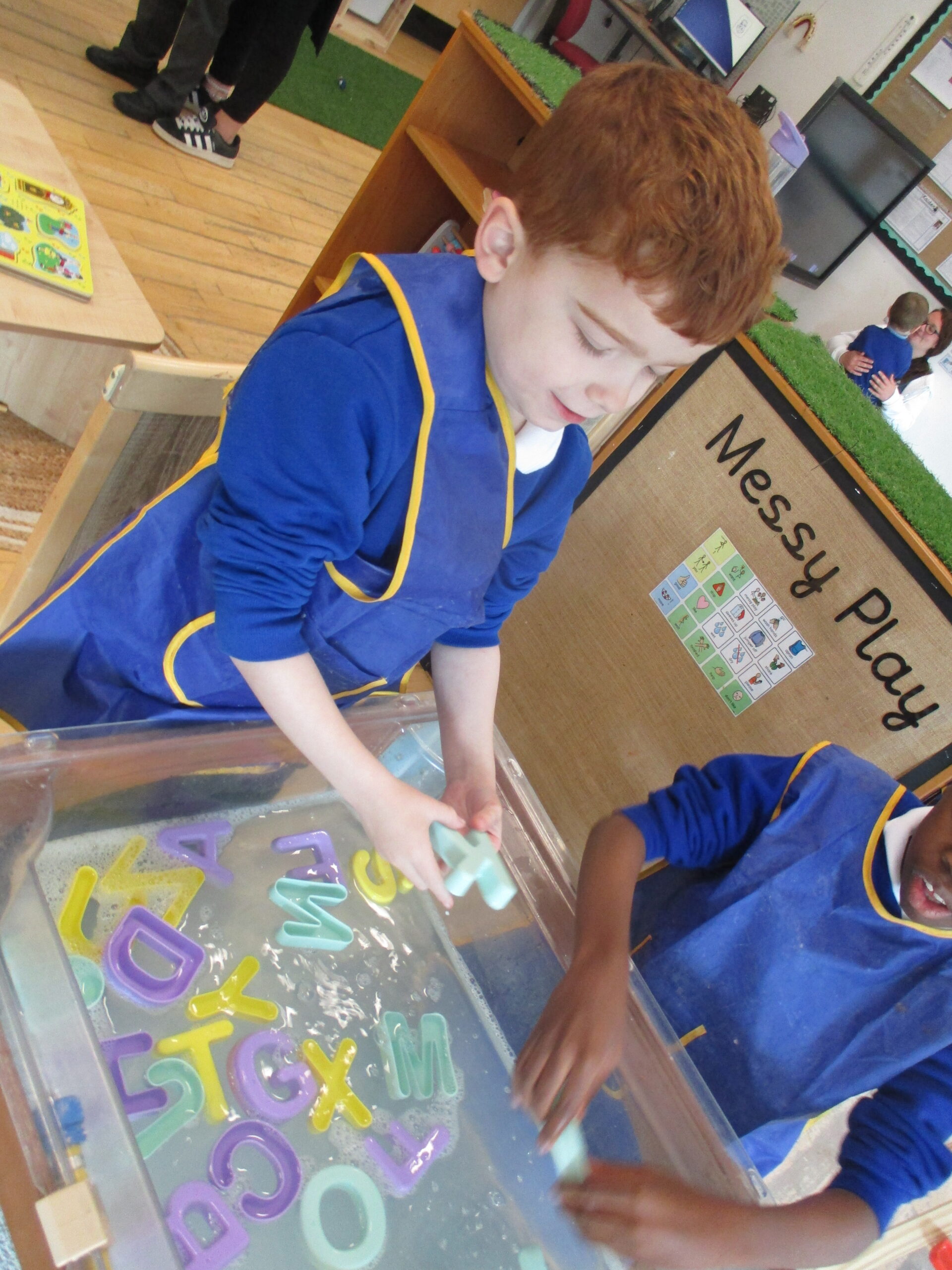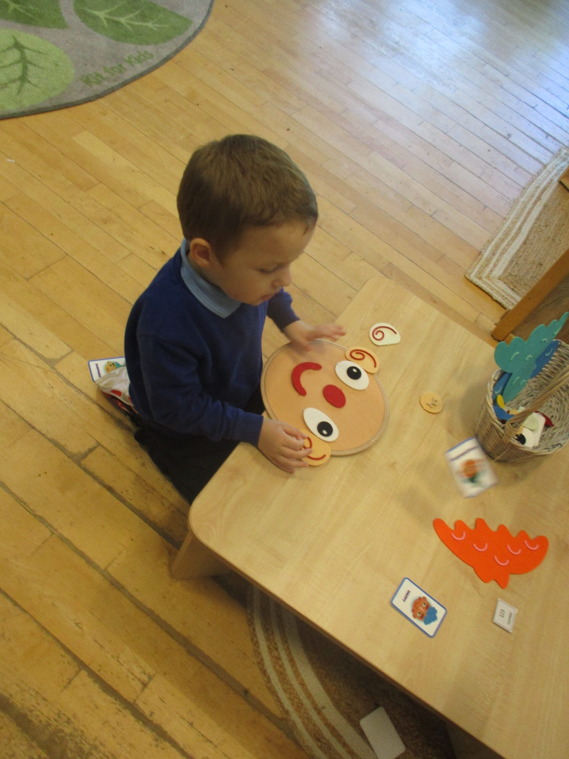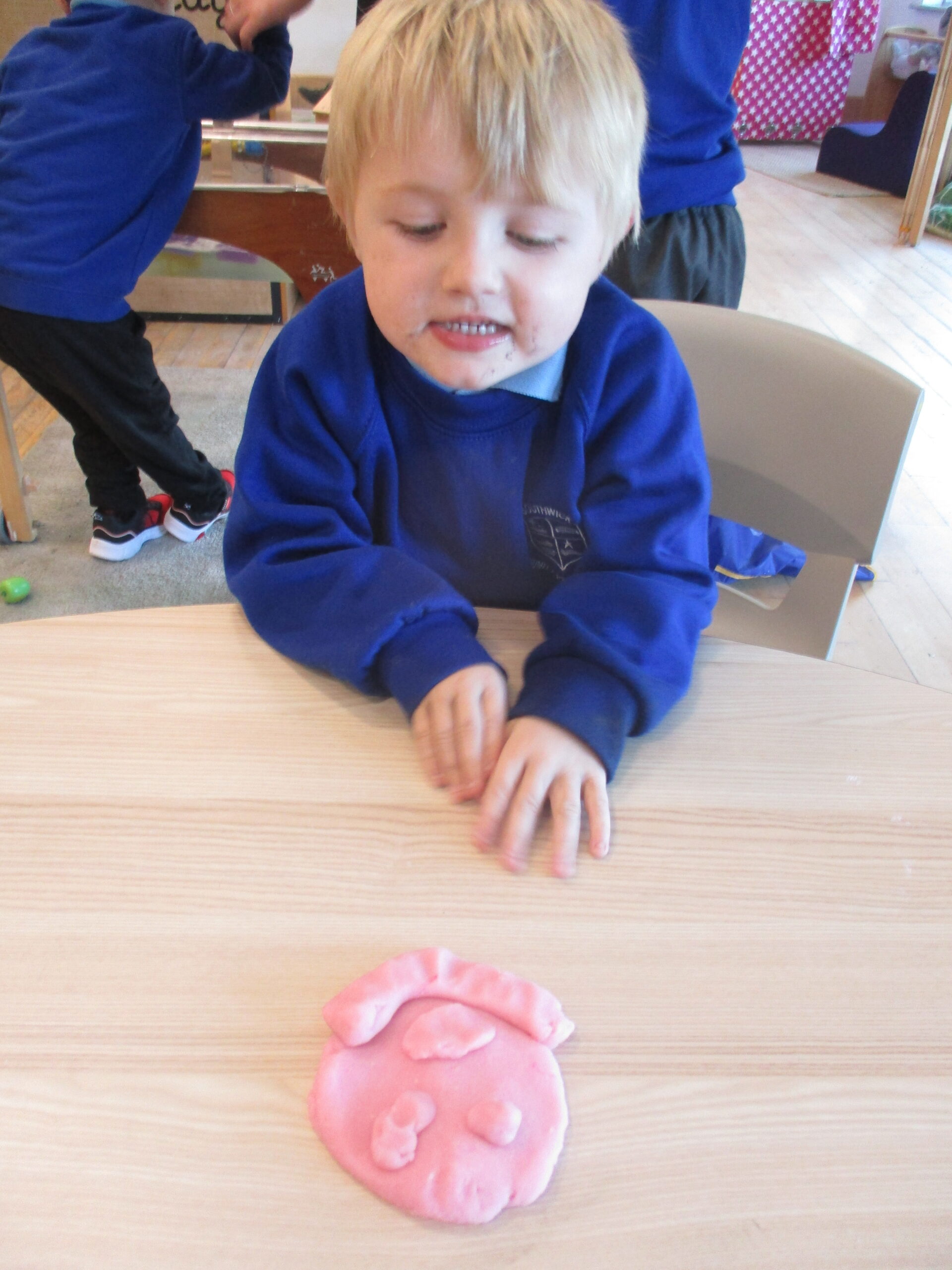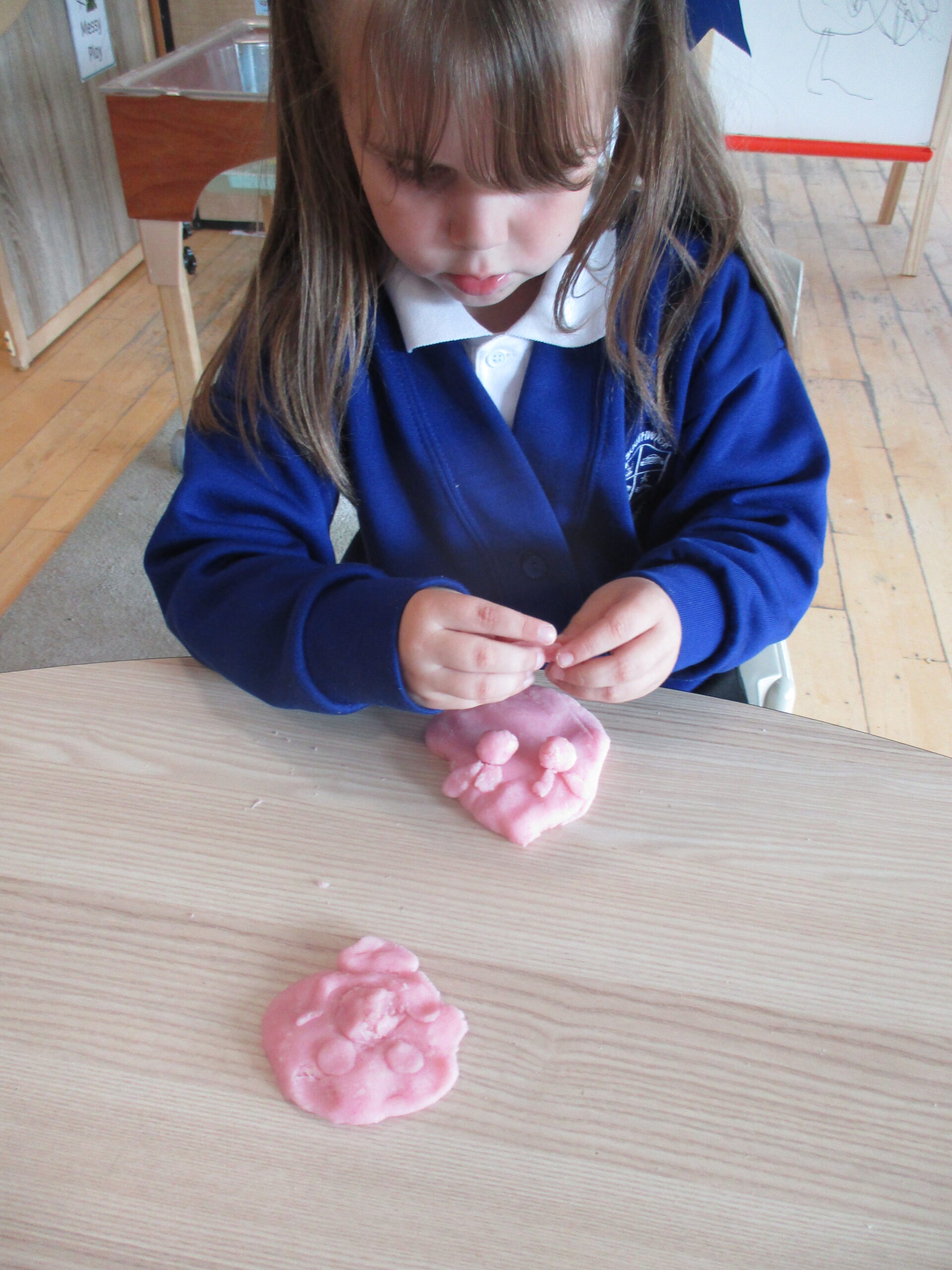 The children have enjoyed their first week of school, settling in well. This week we have been looking at the all topic ‘All About Me’. We have used play dough to create faces, looking at our own features using a mirror. We have drawn pictures of ourselves, using pencils and spoke about our features. Take a look below.