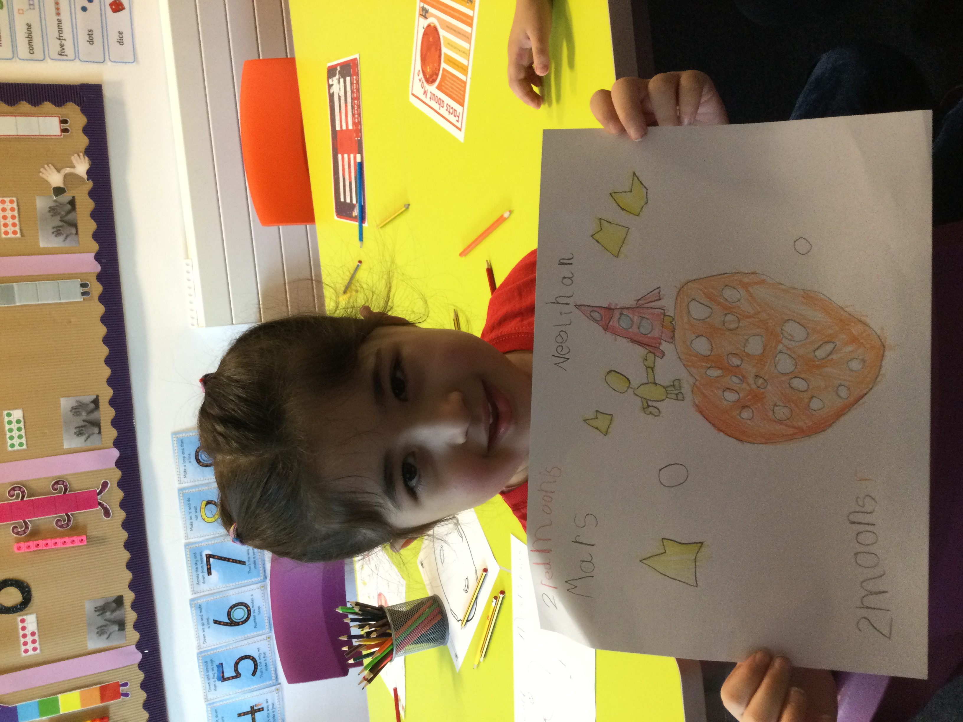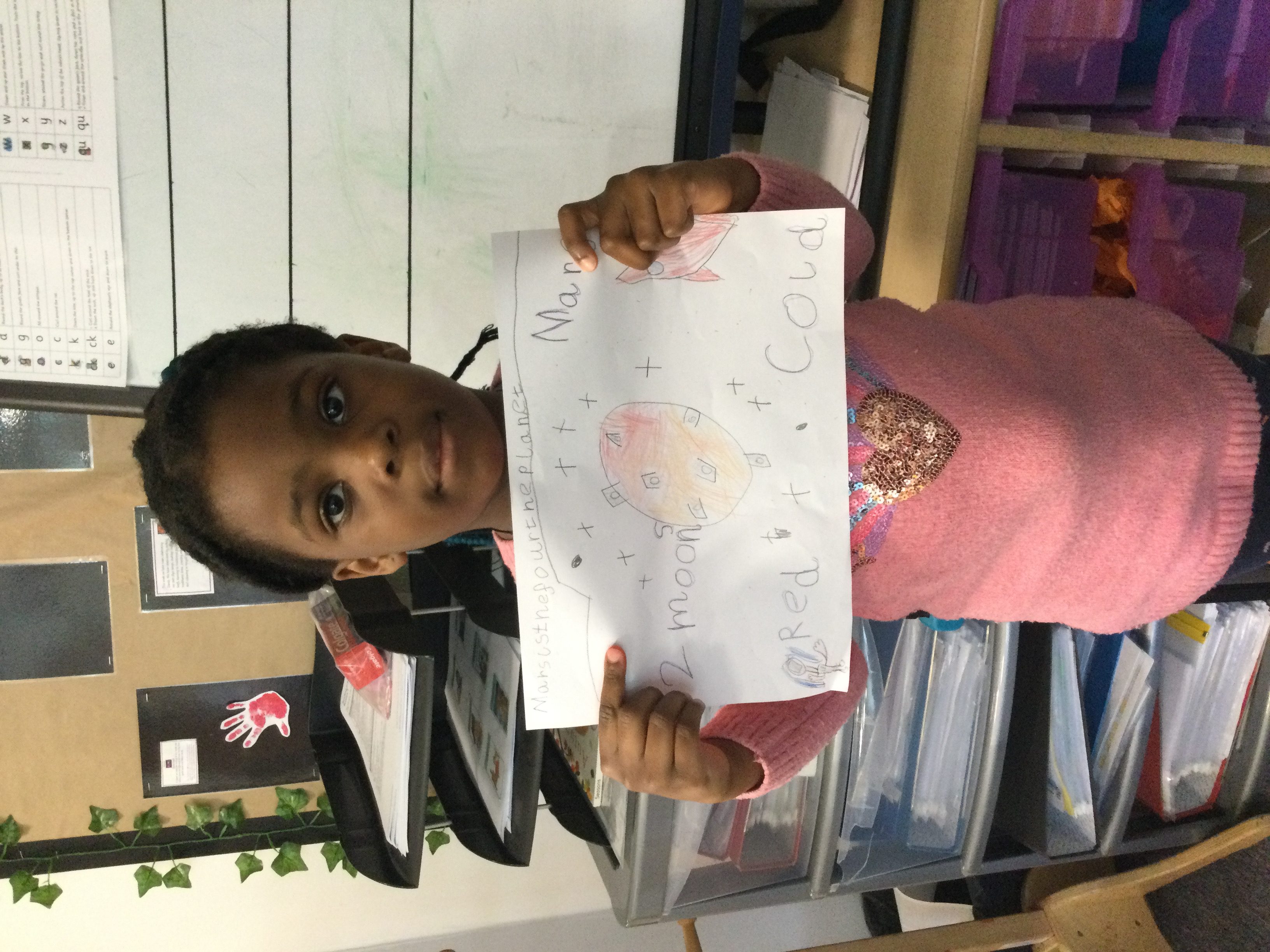 This week Reception have been looking at Space and the planet, Mars. We have discussed the order of the planets, the surface of Mars and also what the weather is like there. We talked about the similarities between Earth and Mars and looked at how close they are to each other. We looked at the rovers that landed on Mars, looking for life and discussed what it might be like to live in space. We then shared all of our ideas and made a ‘Mars’ planet in a tuff tray, then designed a poster to tell people all about the ‘Red Planet’. We had great fun learning about Mars!