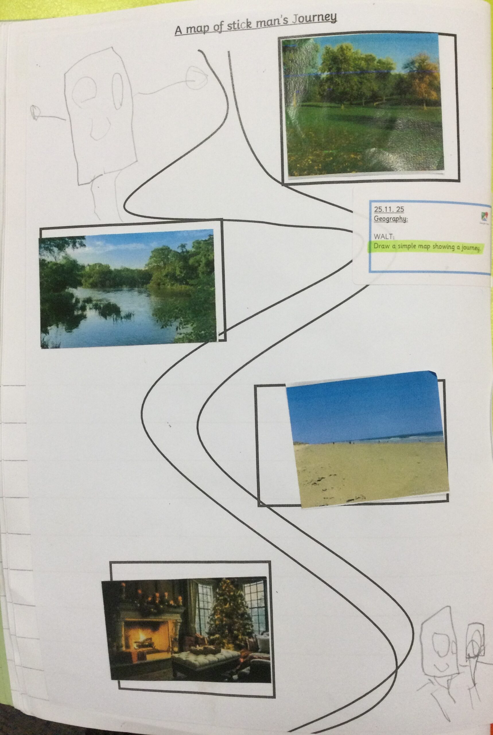 Linking to our Understanding the World topic, the children explored how maps work and worked collaboratively to create their own map to show Stick Man’s journey, showing his adventures through places such as the park, river, beach and his treehouse. This activity not only deepened their understanding of maps but also encouraged storytelling, active learning and critical thinking.