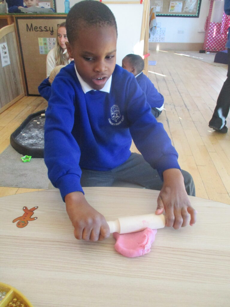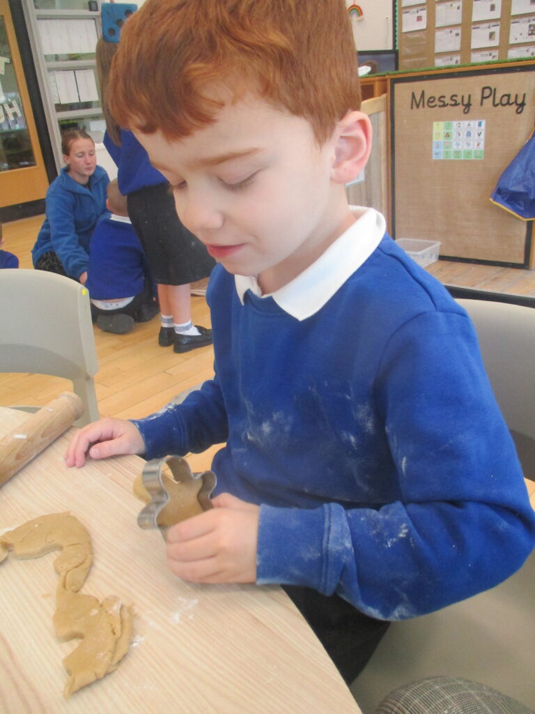 This week we have been reading the story ‘The Gingerbread Man’, we have baked our own Gingerbread Men, helping to mix, roll and cut out the shapes. We have enjoyed role playing the story out and singing ‘run, run as fast as you can, you can’t catch me I’m the Gingerbread Man’.
