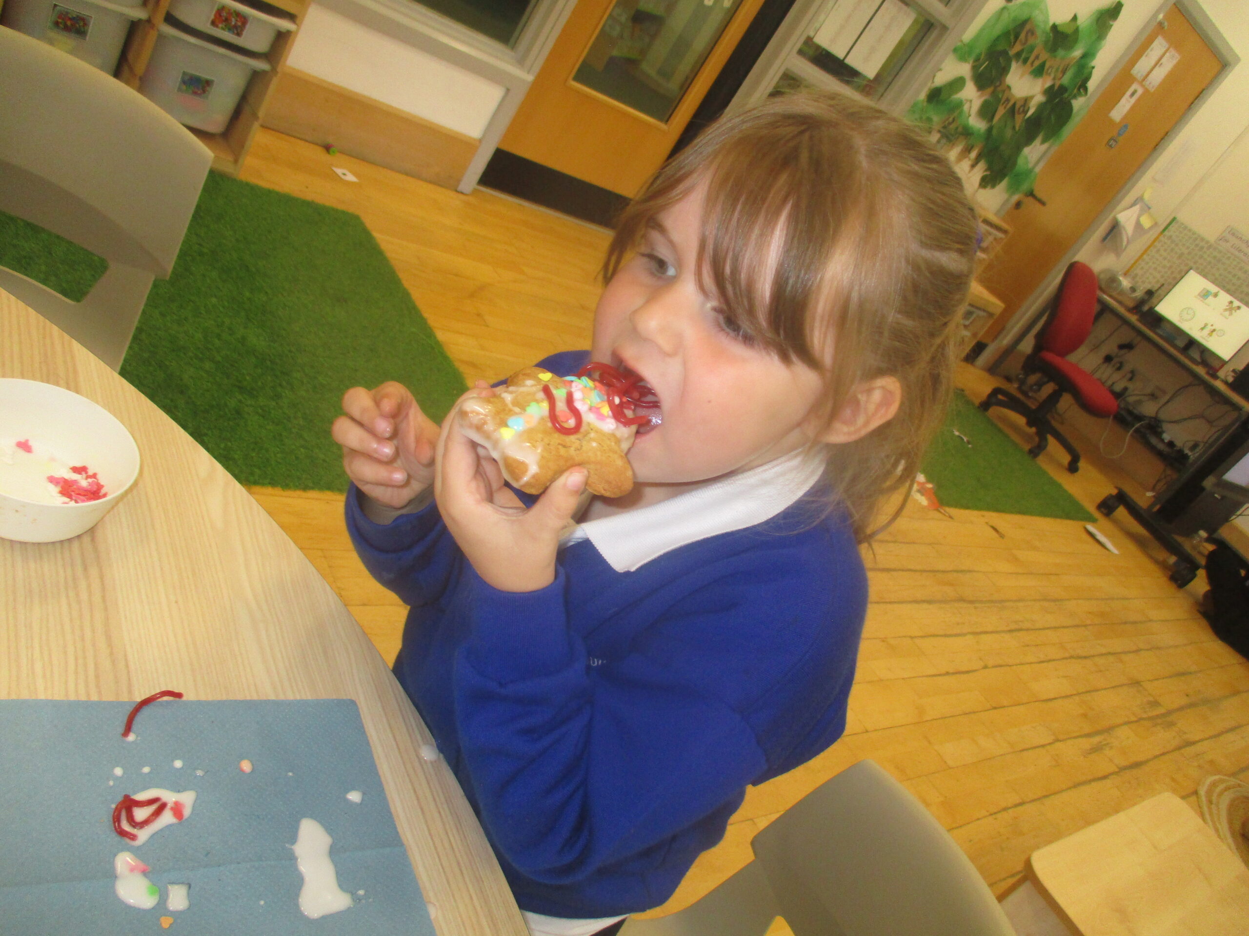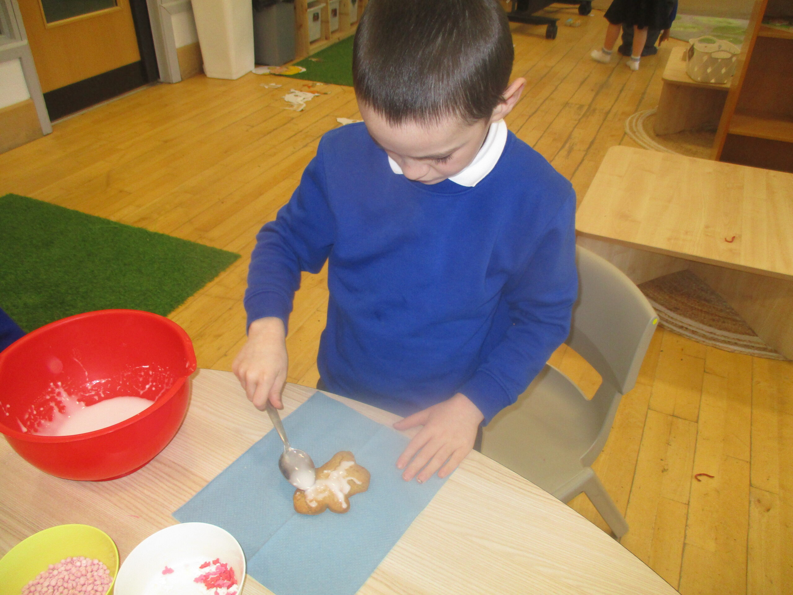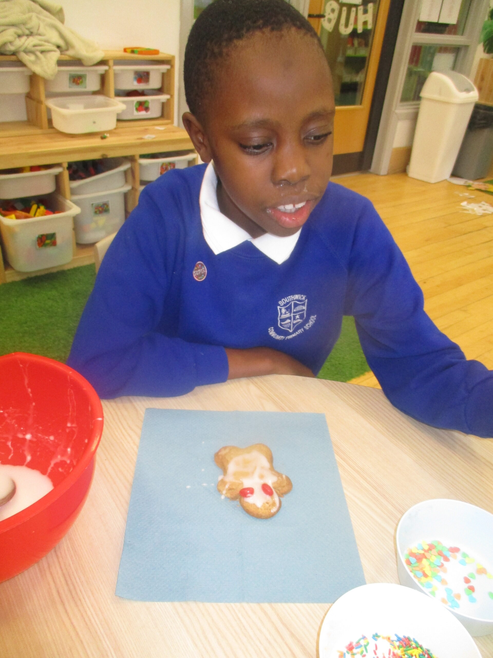 This week we have been reading the story ‘The Gingerbread Man’, we have baked our own Gingerbread Men, helping to mix, roll and cut out the shapes. We have enjoyed role playing the story out and singing ‘run, run as fast as you can, you can’t catch me I’m the Gingerbread Man’.