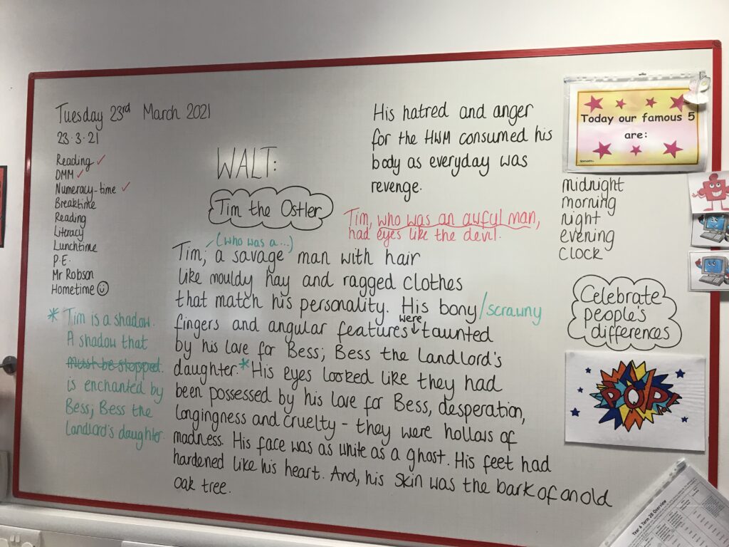 Today we were looking at character description and worked together to create a piece of writing based on Tim the Ostler. We worked on appropriate vocabulary, useful punctuation and most importantly, checking and editing our work. This really is a fantastic group to work with. Well done everyone.