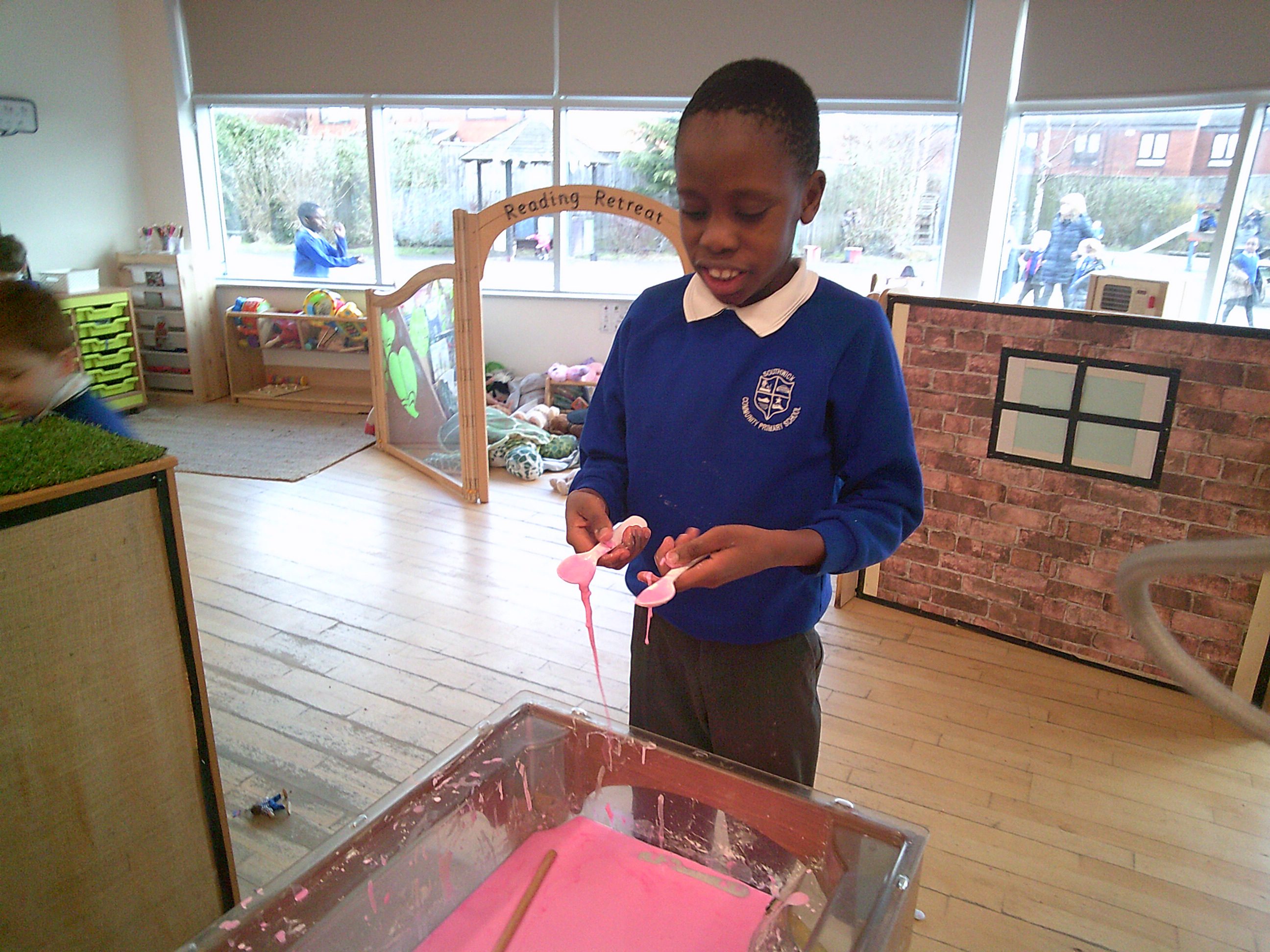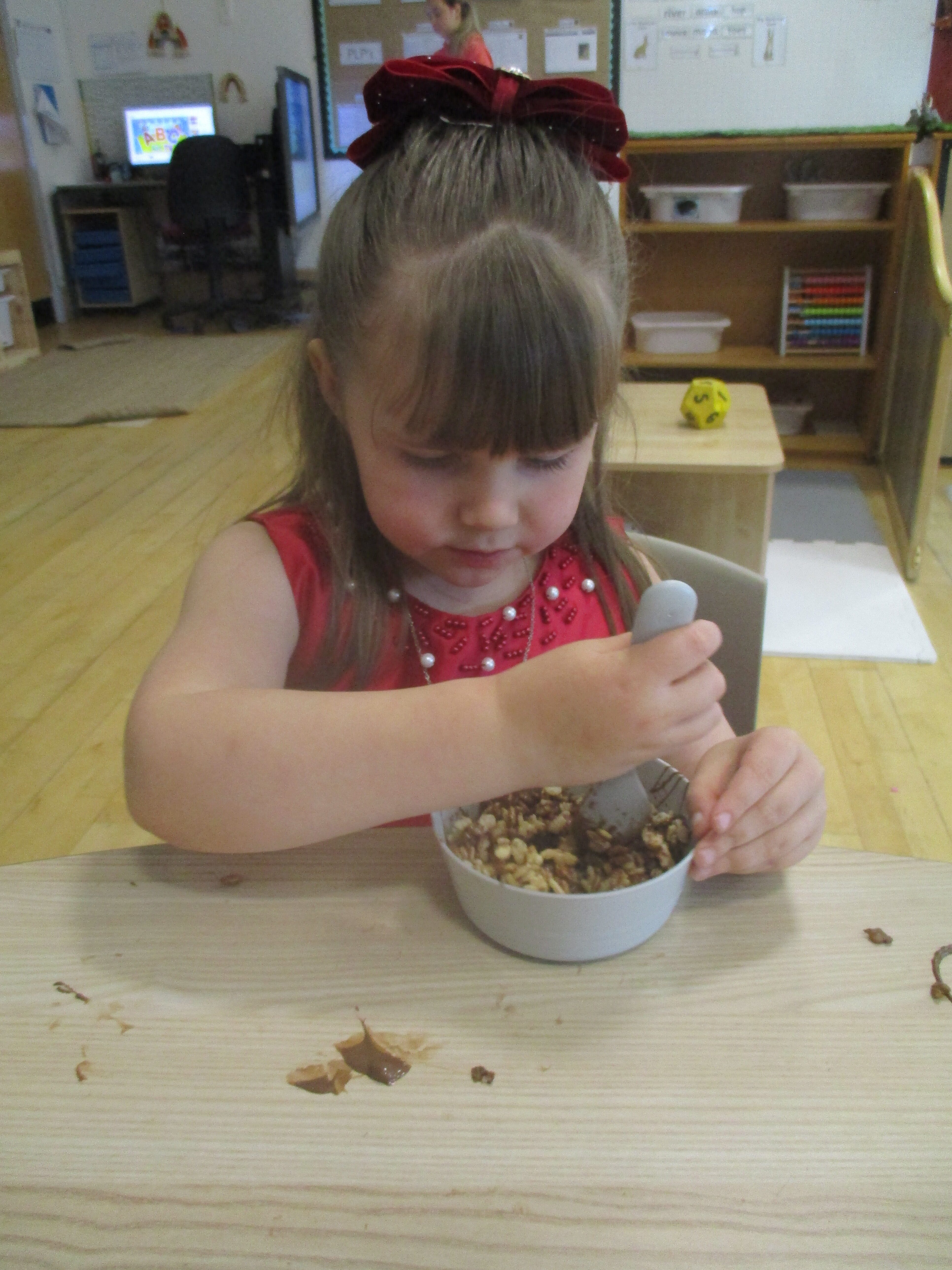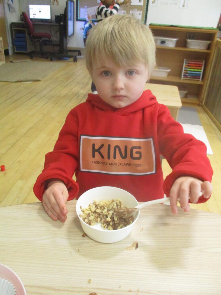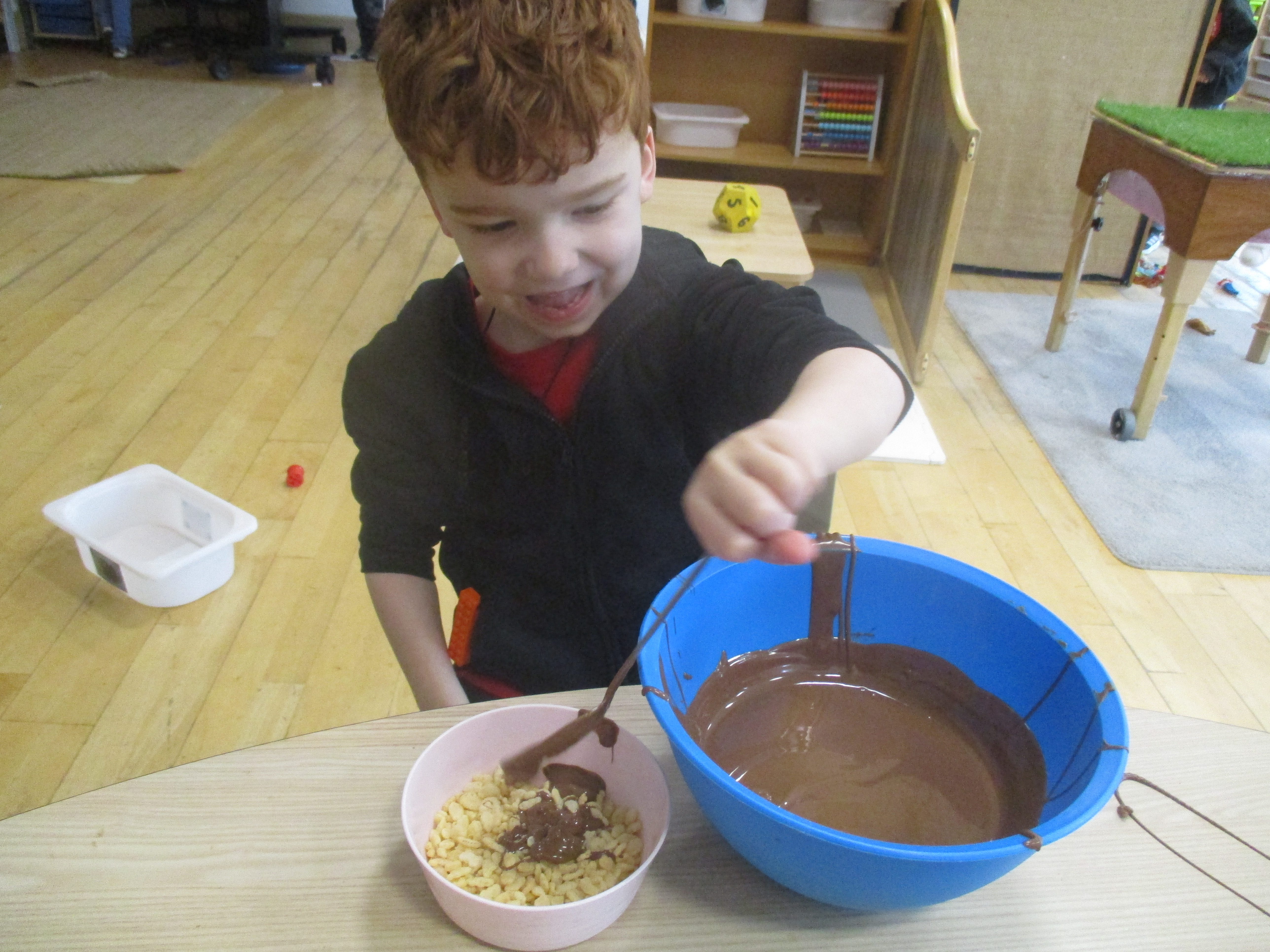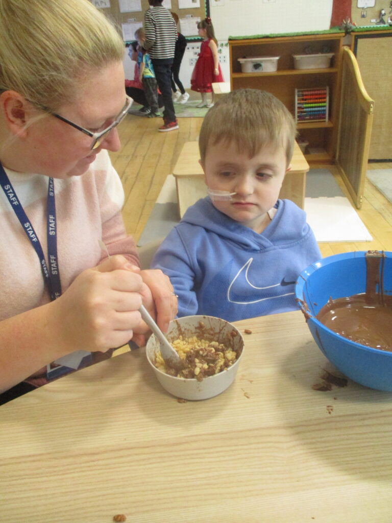 We had lots of fun celebrating Valentine’s Day today. We melted chocolate and made out own delicious crispy cakes to eat, before heading to the hall for a party. We danced, laughed and sang all afternoon, having so much fun!