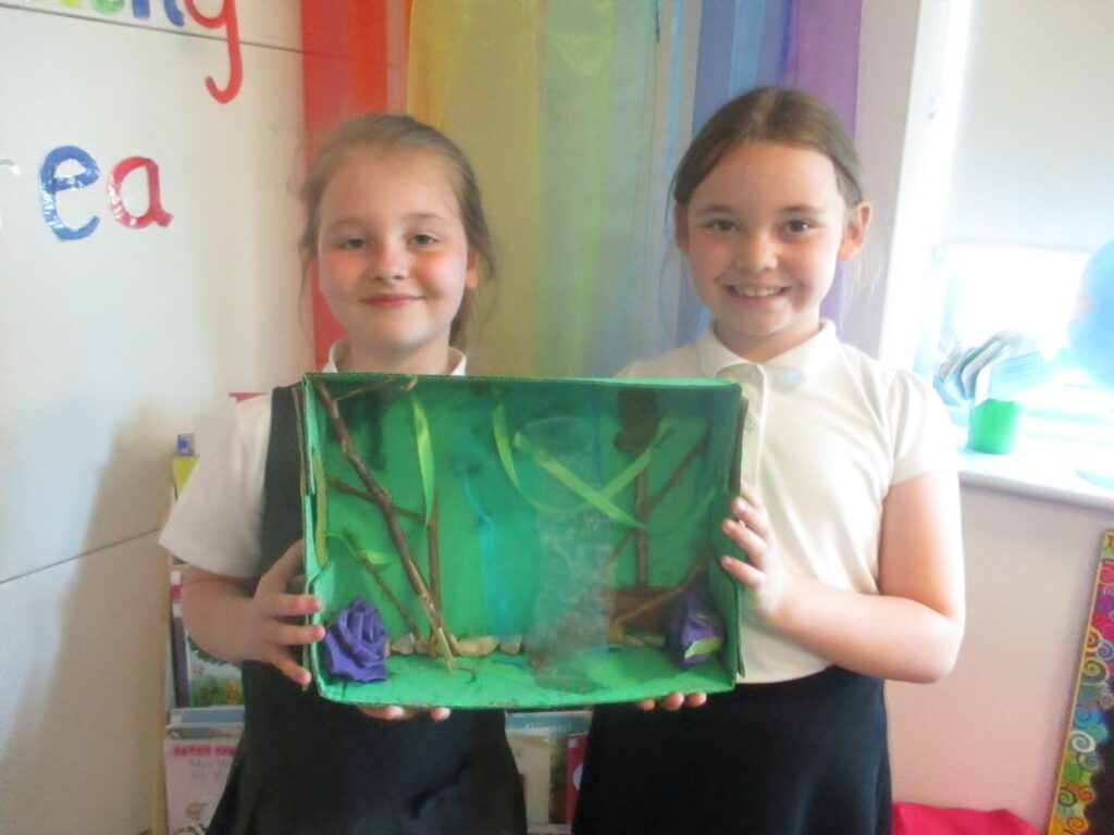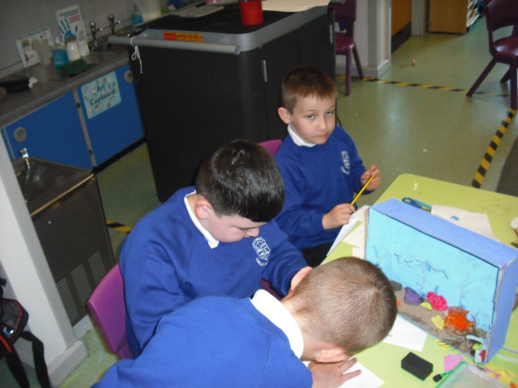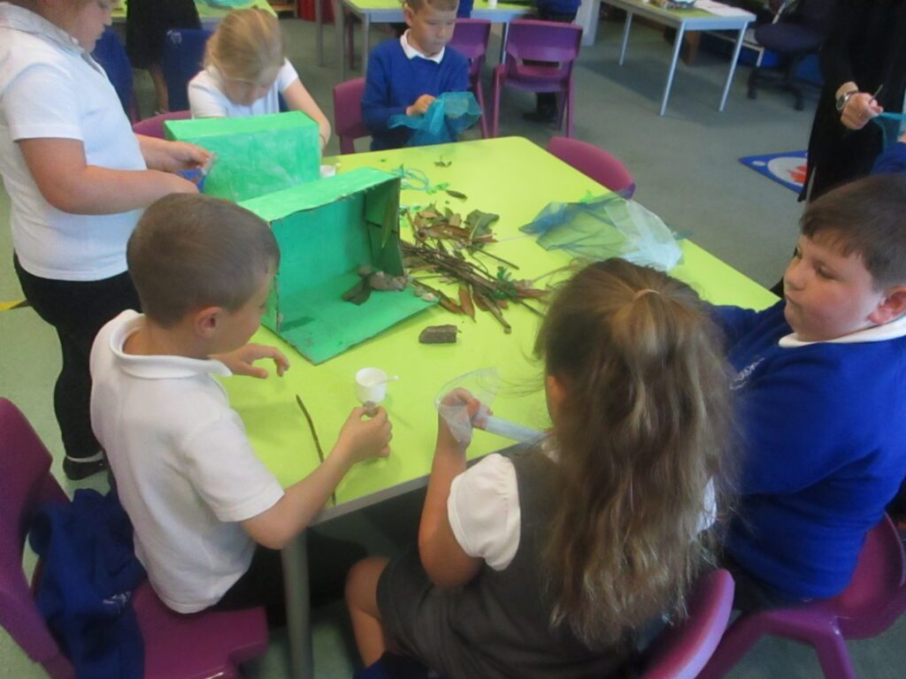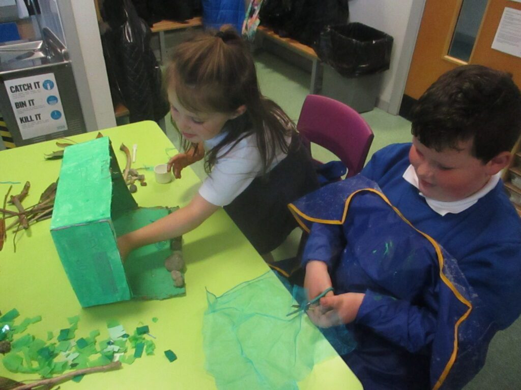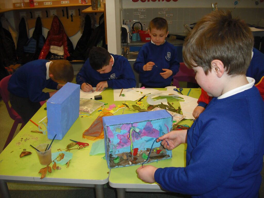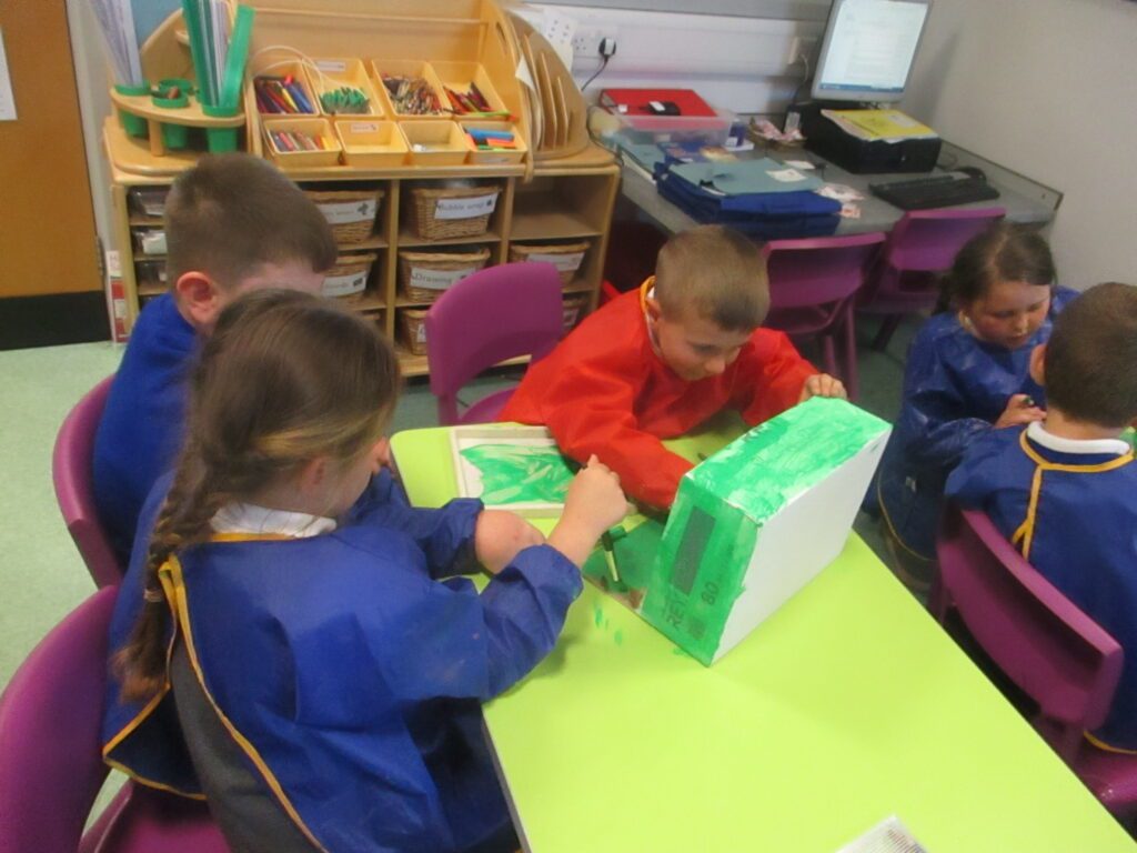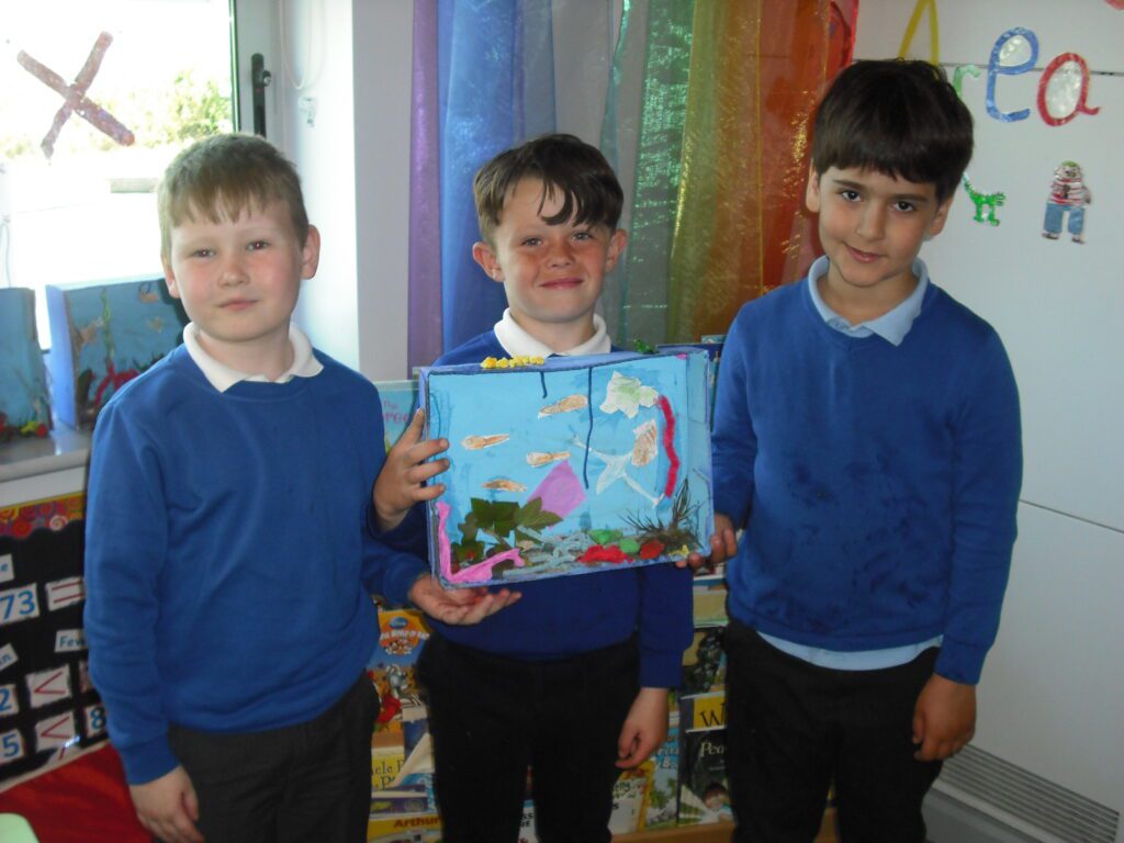 In Year 2 we have made a habitat box for our chosen animal group. In our topic sessions, we researched our habitat and looked closely at pictures to ensure we made detailed accurate representations. We painted our box to create a background colour, then we decorated our boxes to include the key features of the habitat. We used a wide range of resources to create trees, animals, vines, corals, rocks and seaweed. We are very proud of our final boxes and think they would make perfect ocean and rainforest habitats for our animals.
